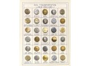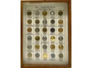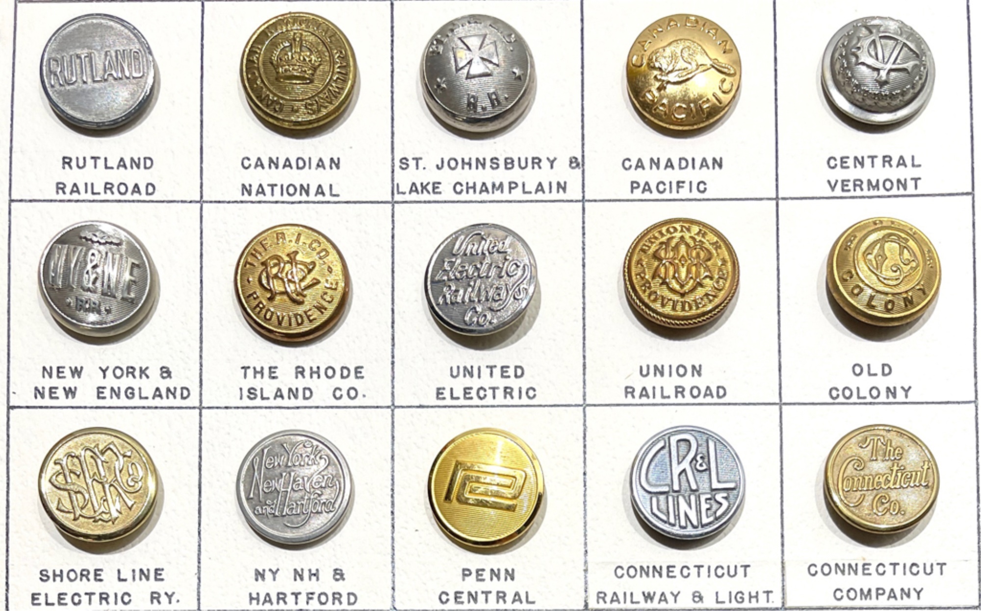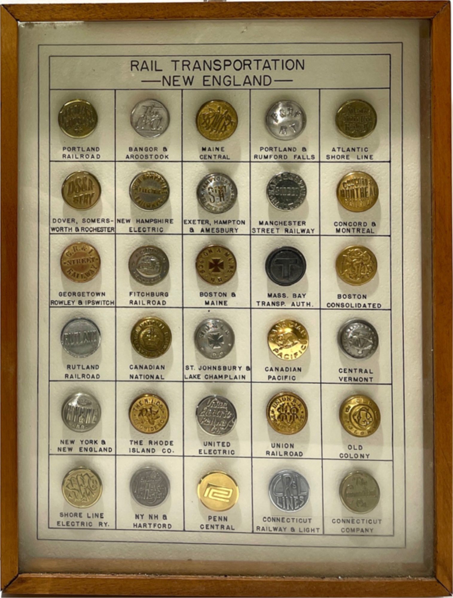Vintage metal uniform buttons housed in a carved shadow box frame. 12 1/2" x 9 1/2" x 1 1/4"