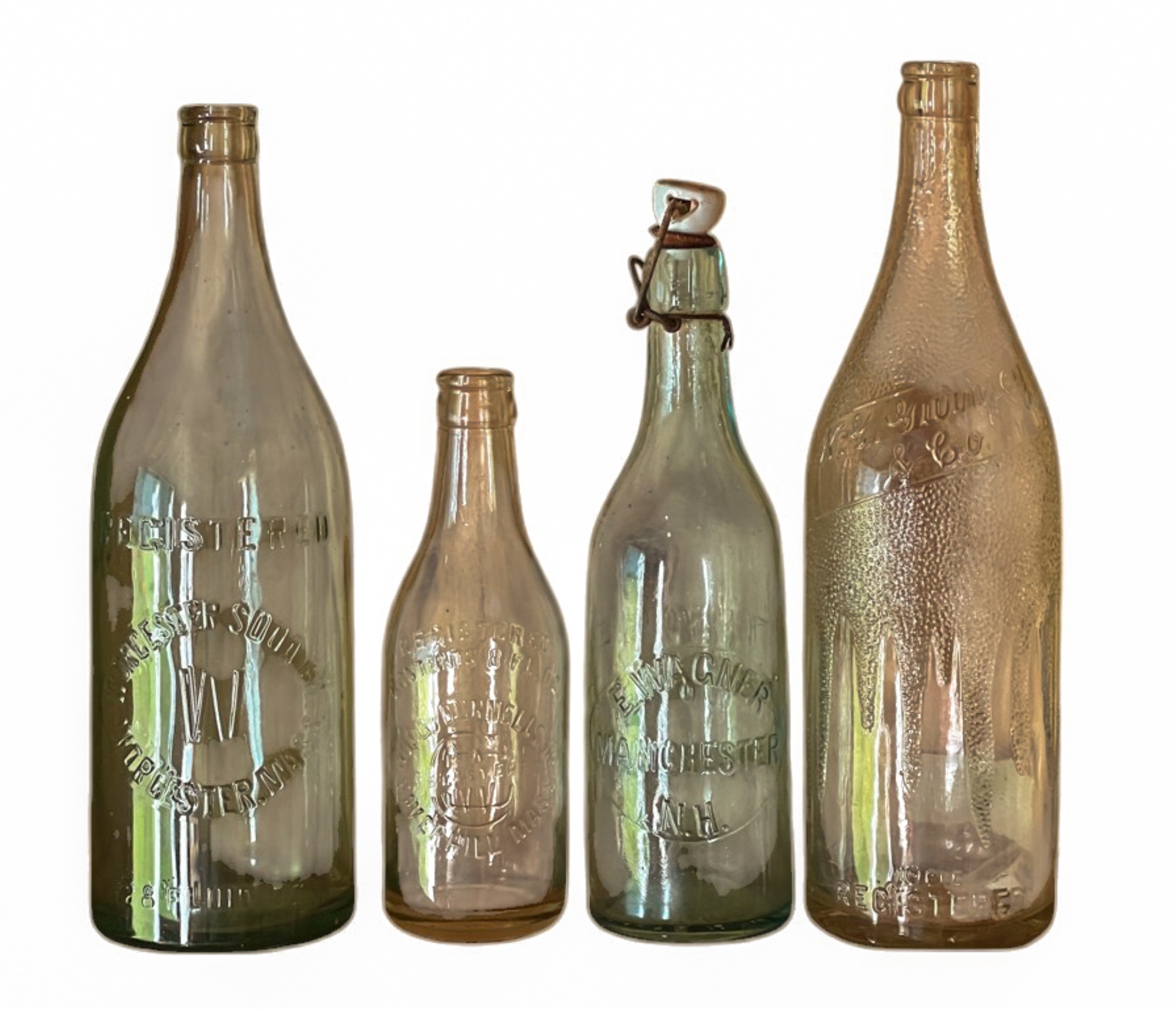 Worcester Soda Co., E. Wagner (Manchester, NH), Wood-Dunnells Co. (Haverhill, MA), & N.G. Gurnsey & Co. (Keene, NH). 11 1/2 inches. Condition: Good. Temp No 4185