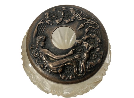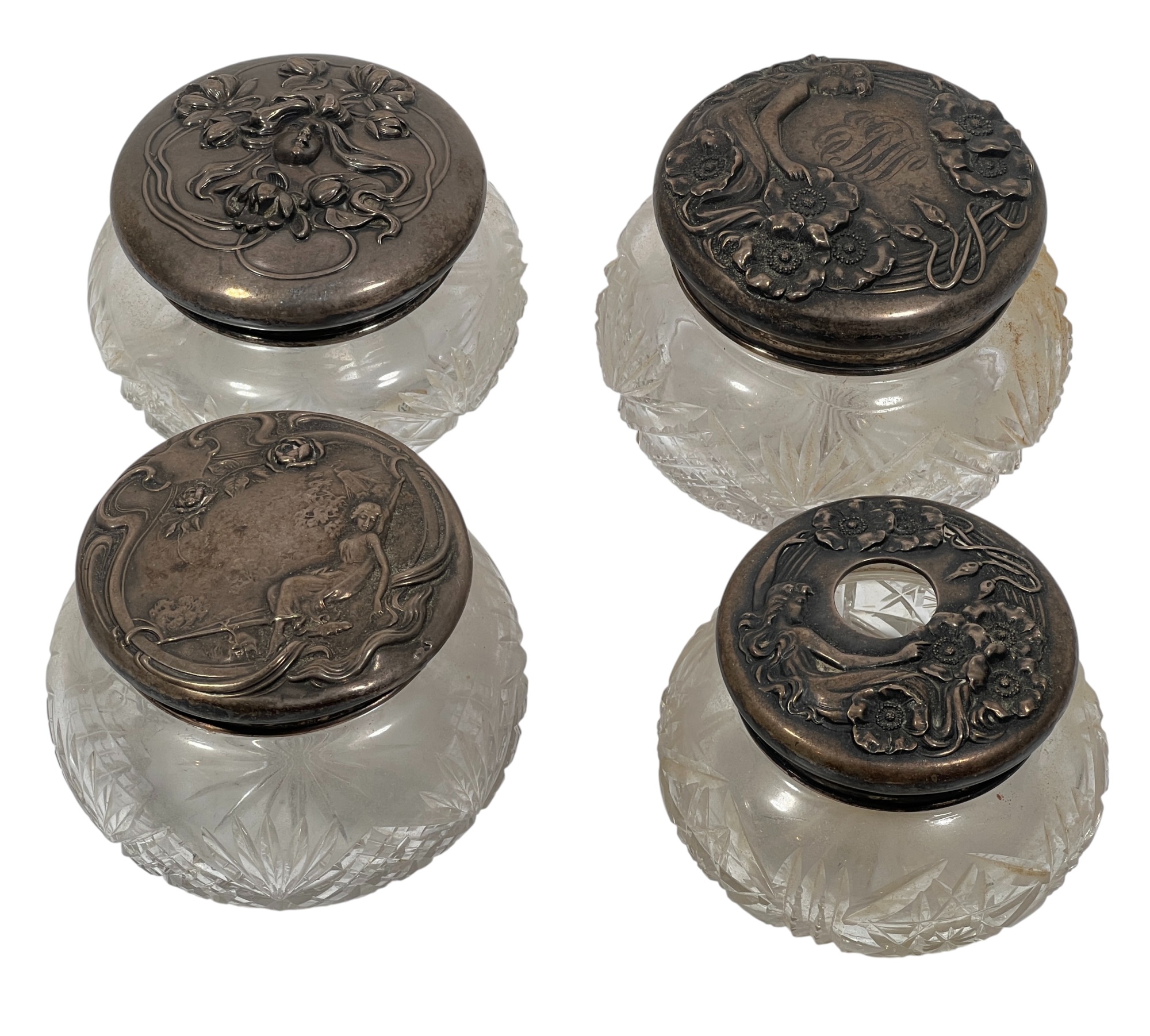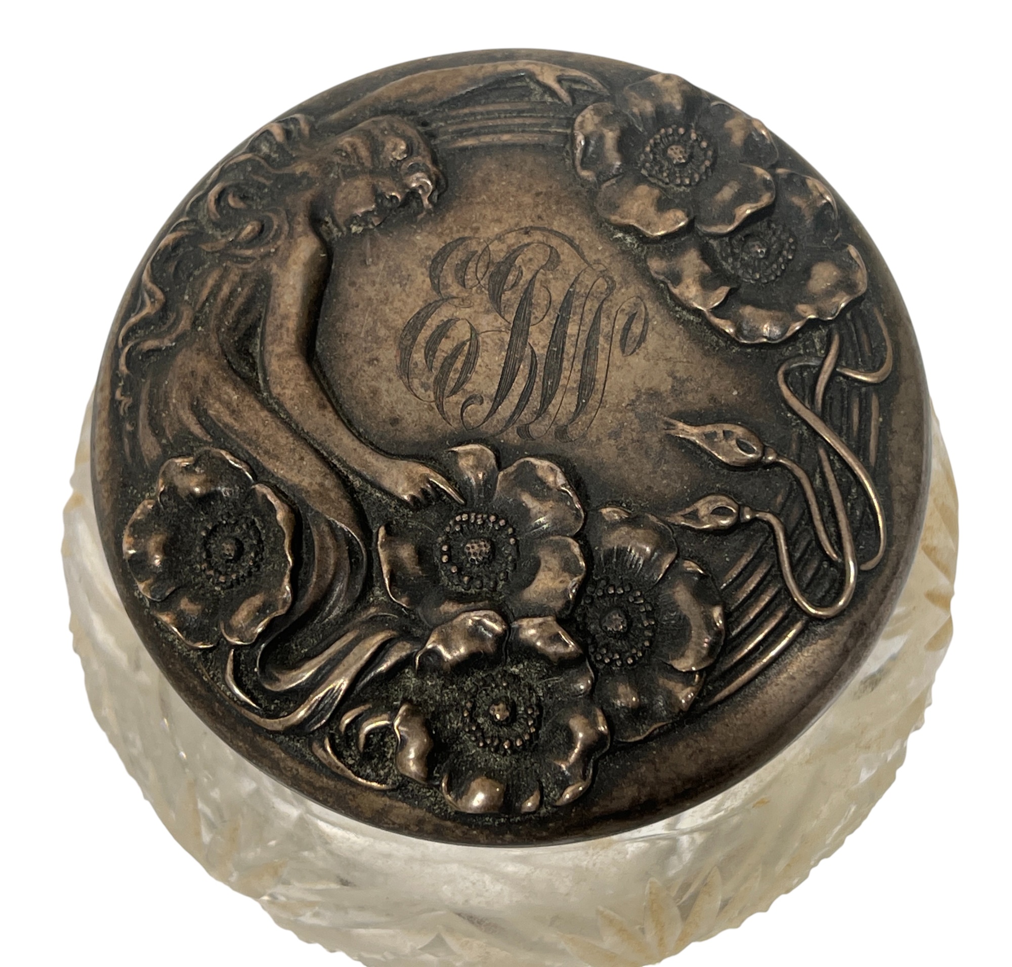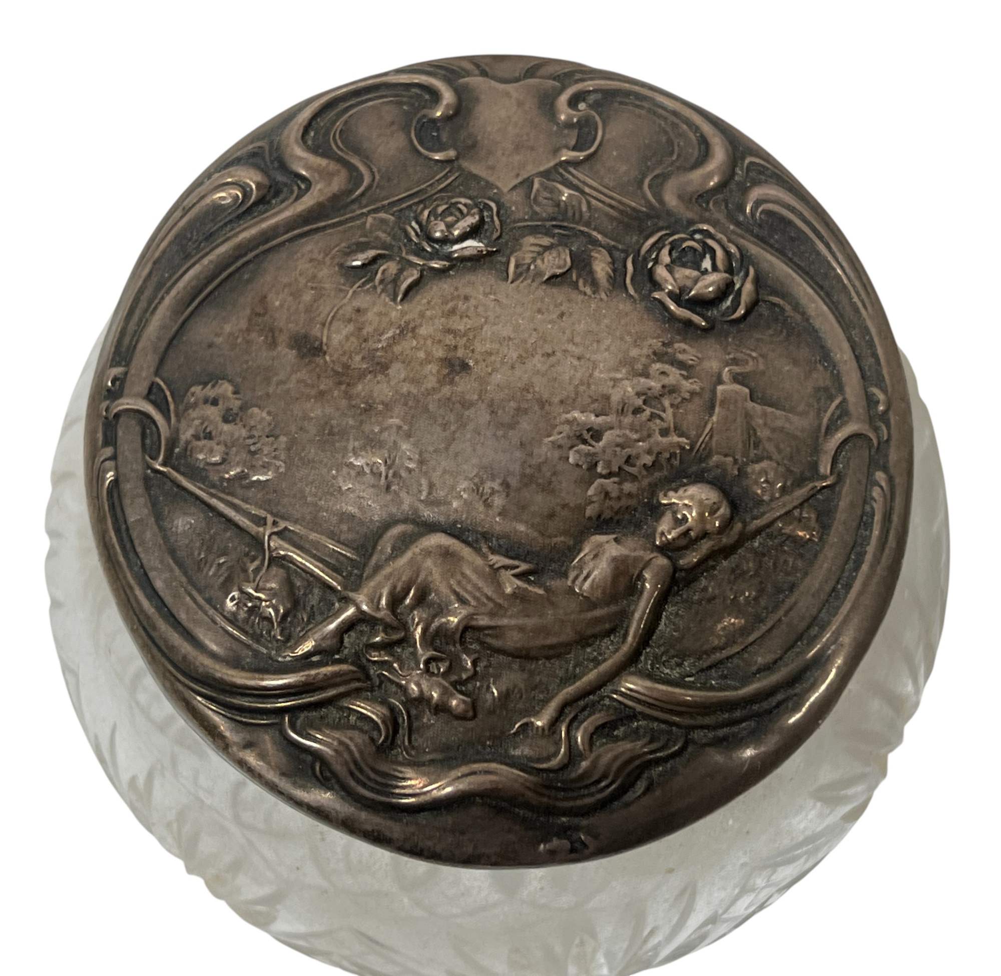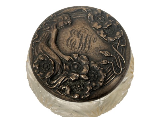 Sterling covers with fair maidens & Art Nouveau motifs. 3 1/2 x 4 inches. 5.86 ozt. Condition: Good. Temp No 8585