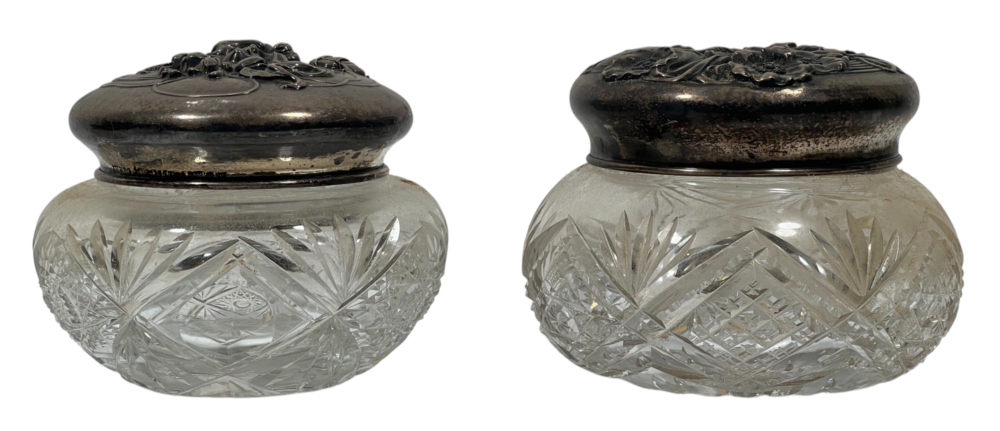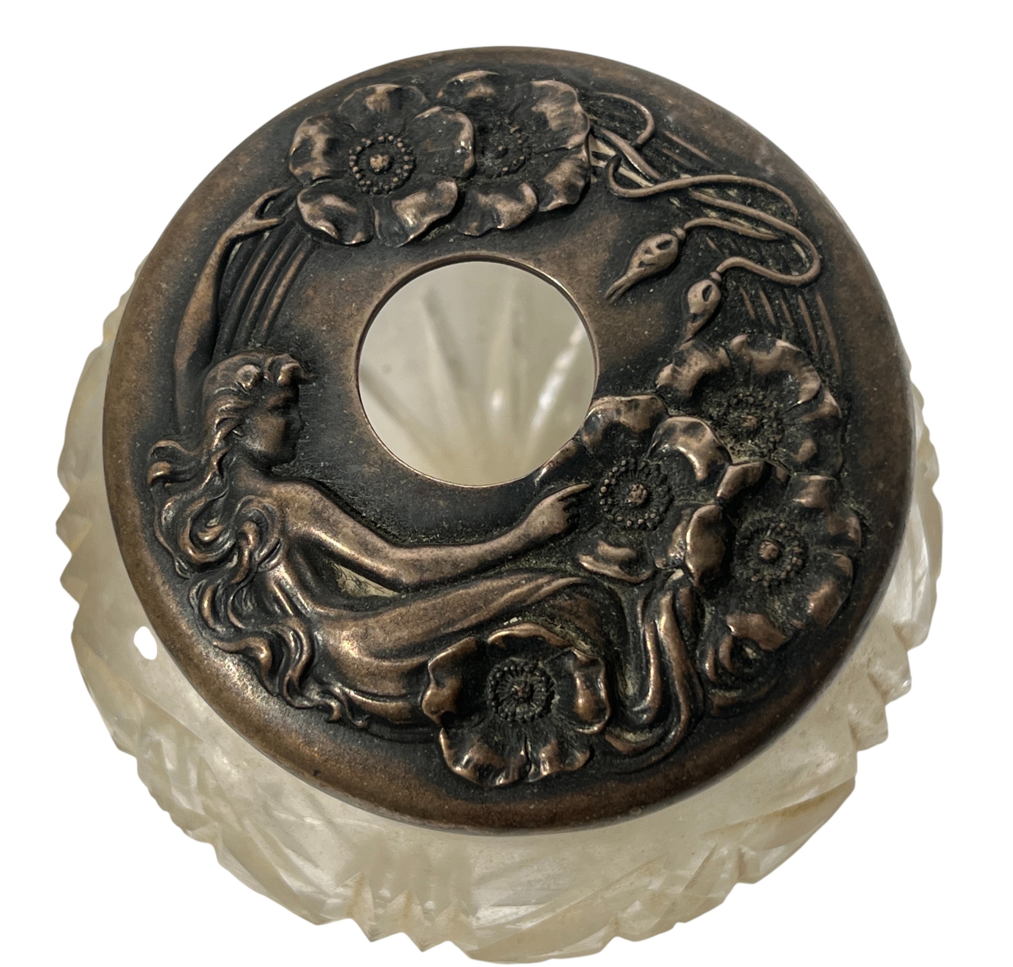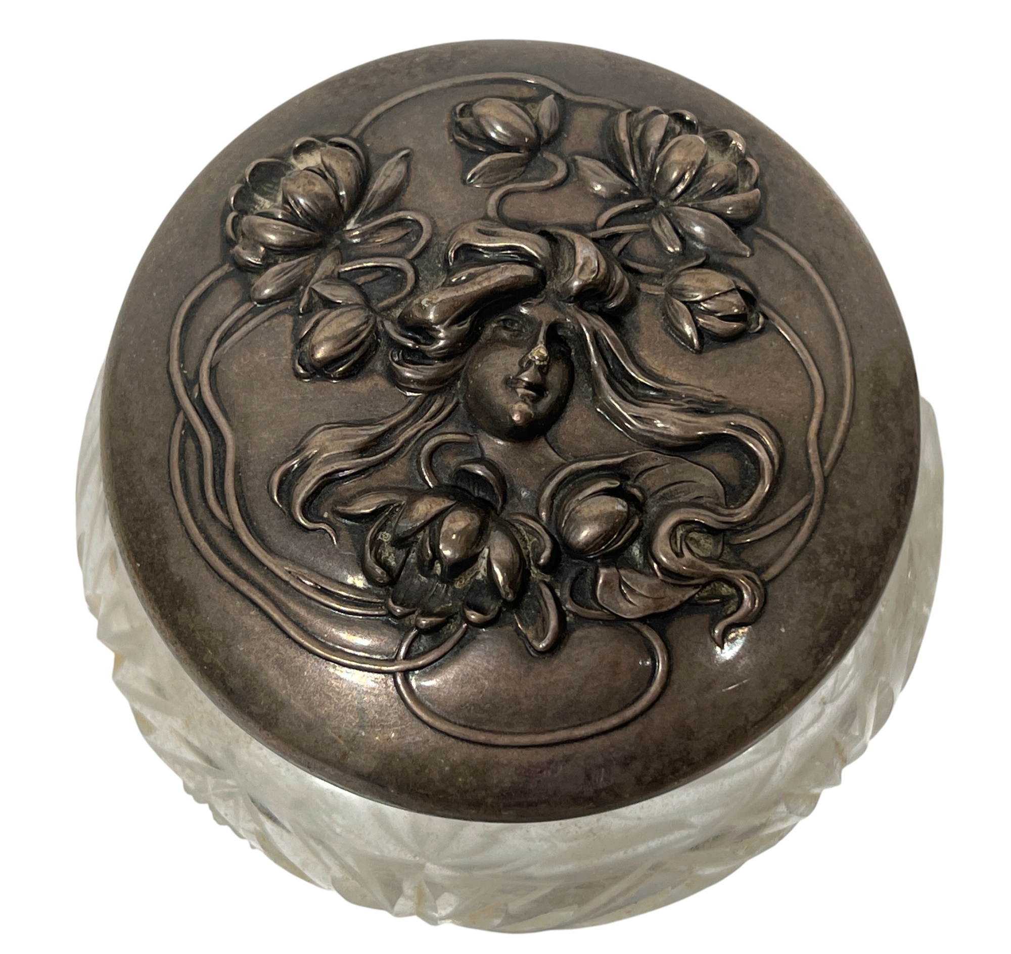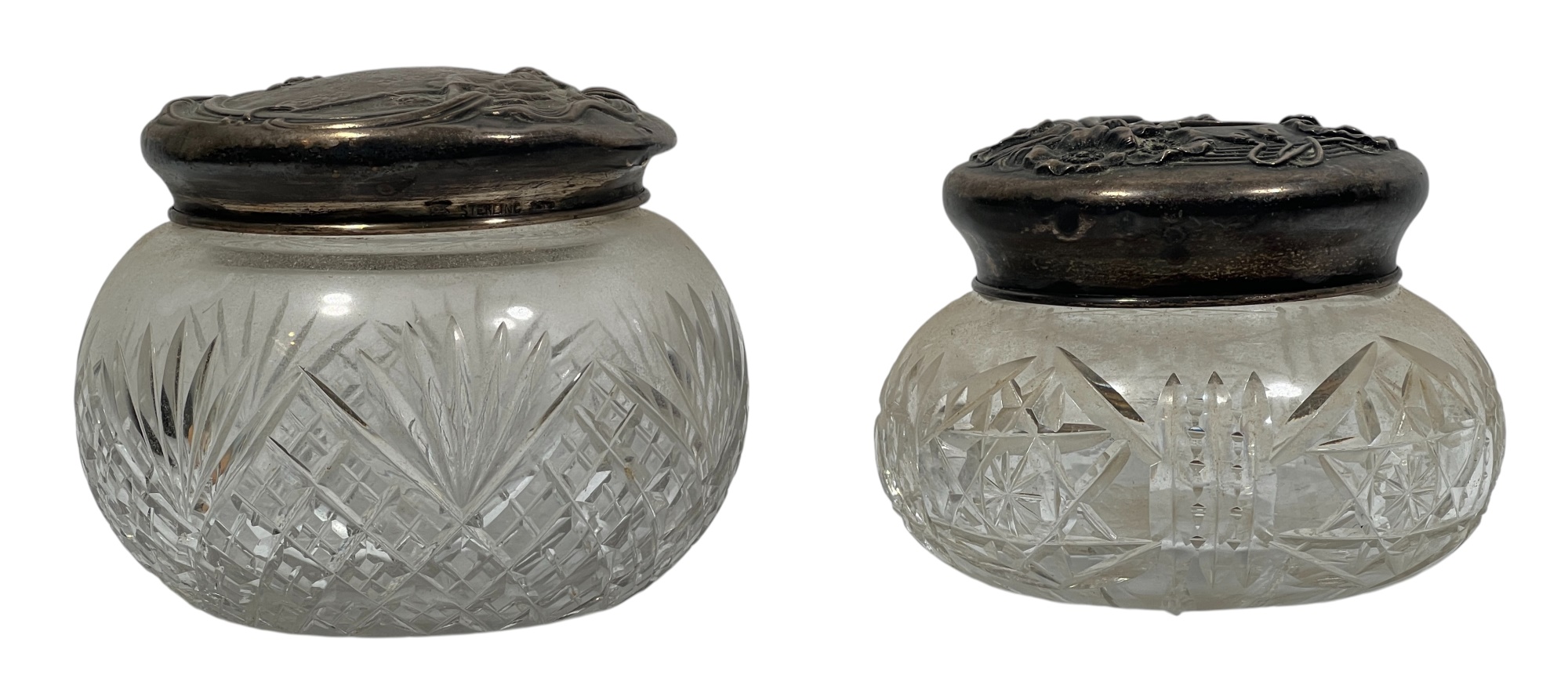 Sterling covers with fair maidens & Art Nouveau motifs. 3 1/2 x 4 inches. 5.86 ozt. Condition: Good. Temp No 8585