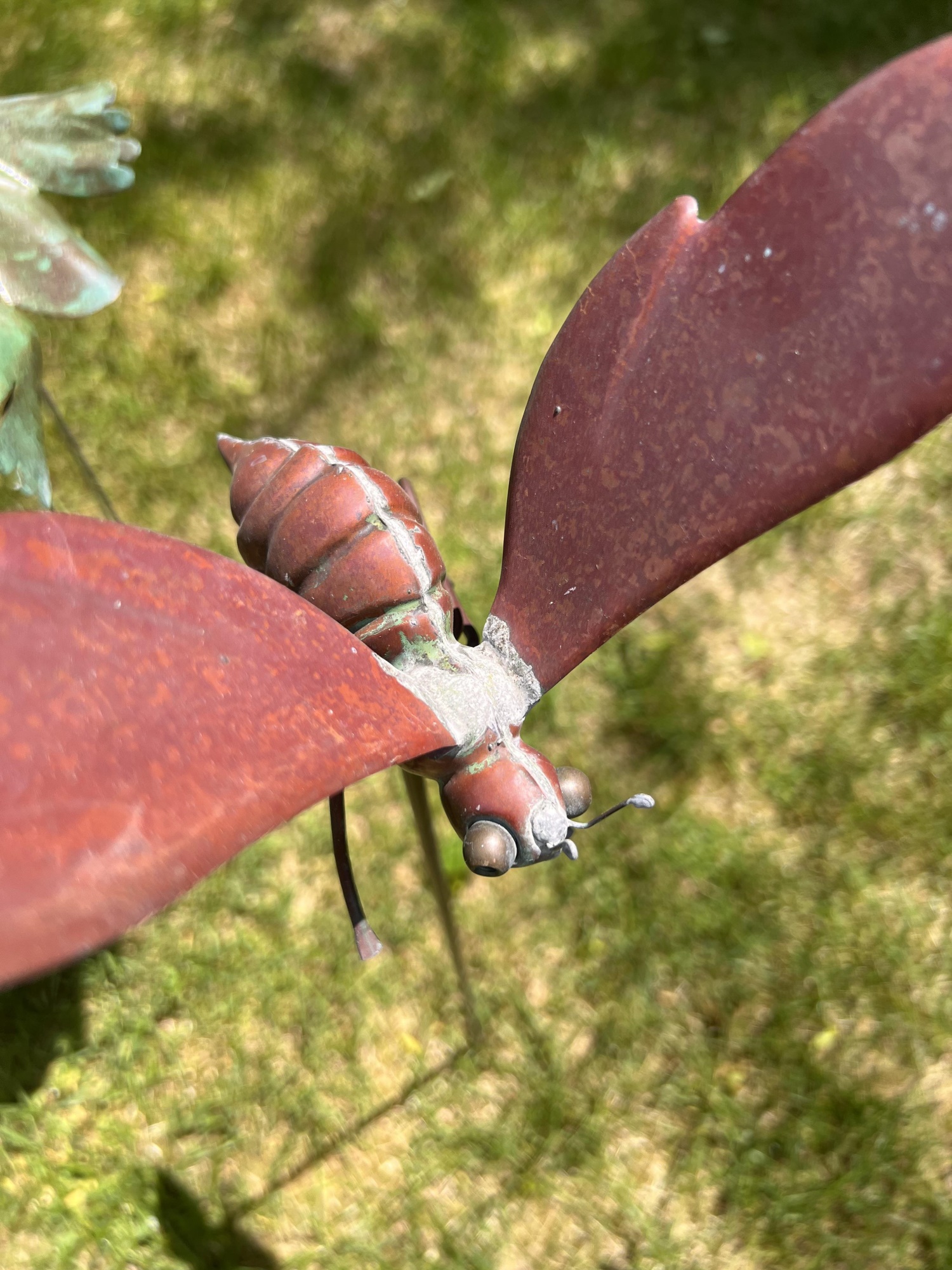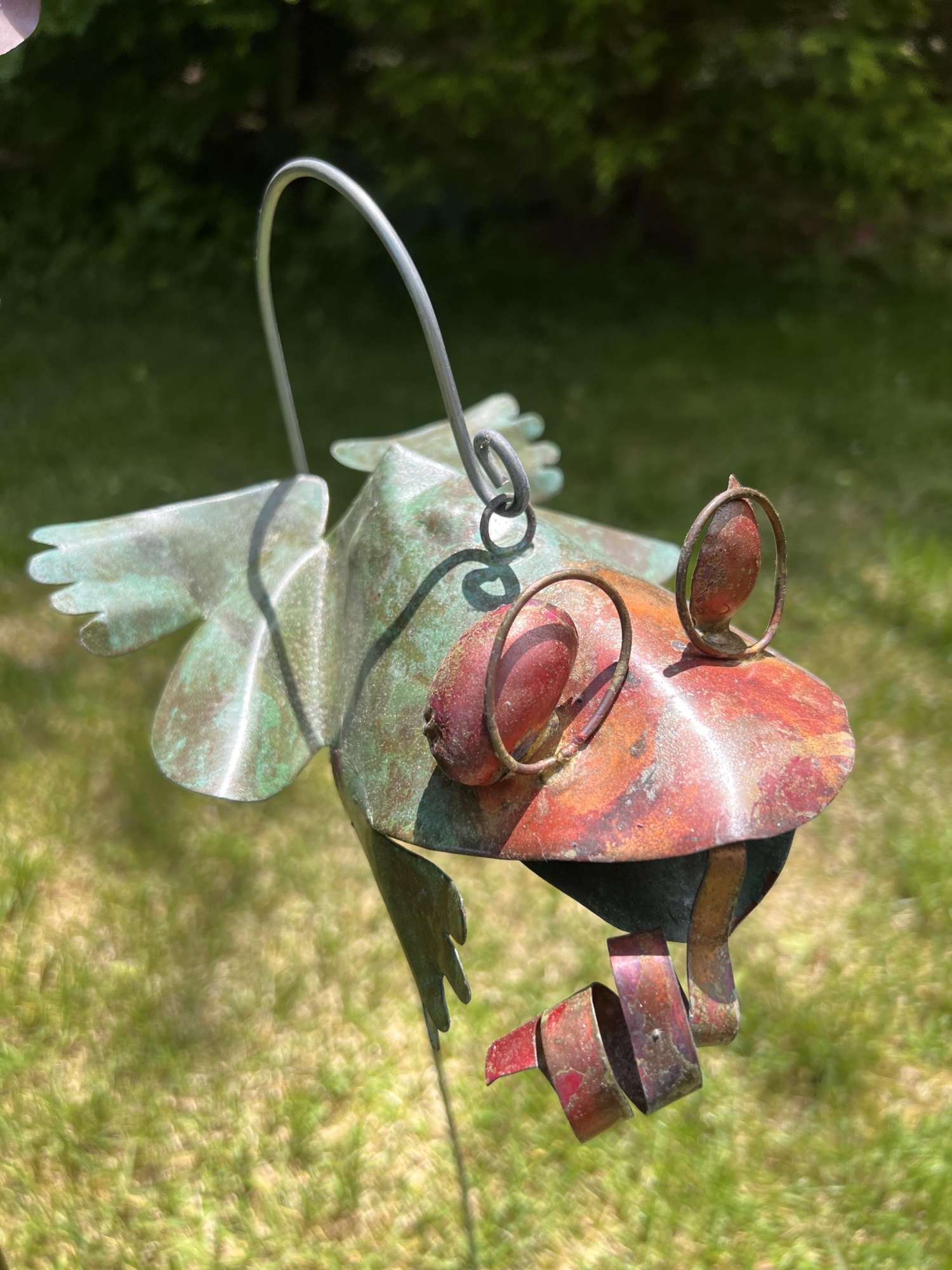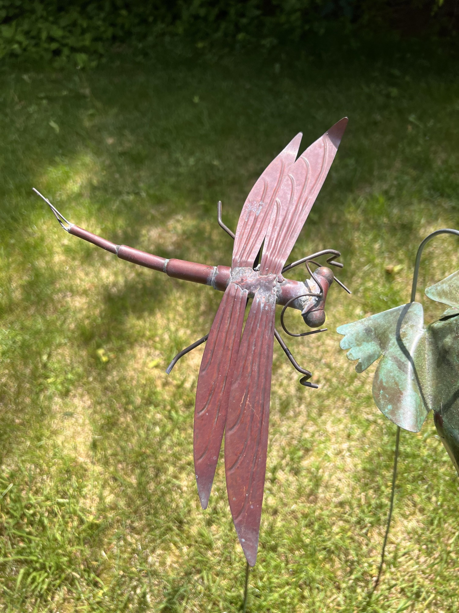 Frog, Bee, Dragonfly, Cricket. 6 to 8.5 inches on 30 inch stakes Condition: Good, weathering