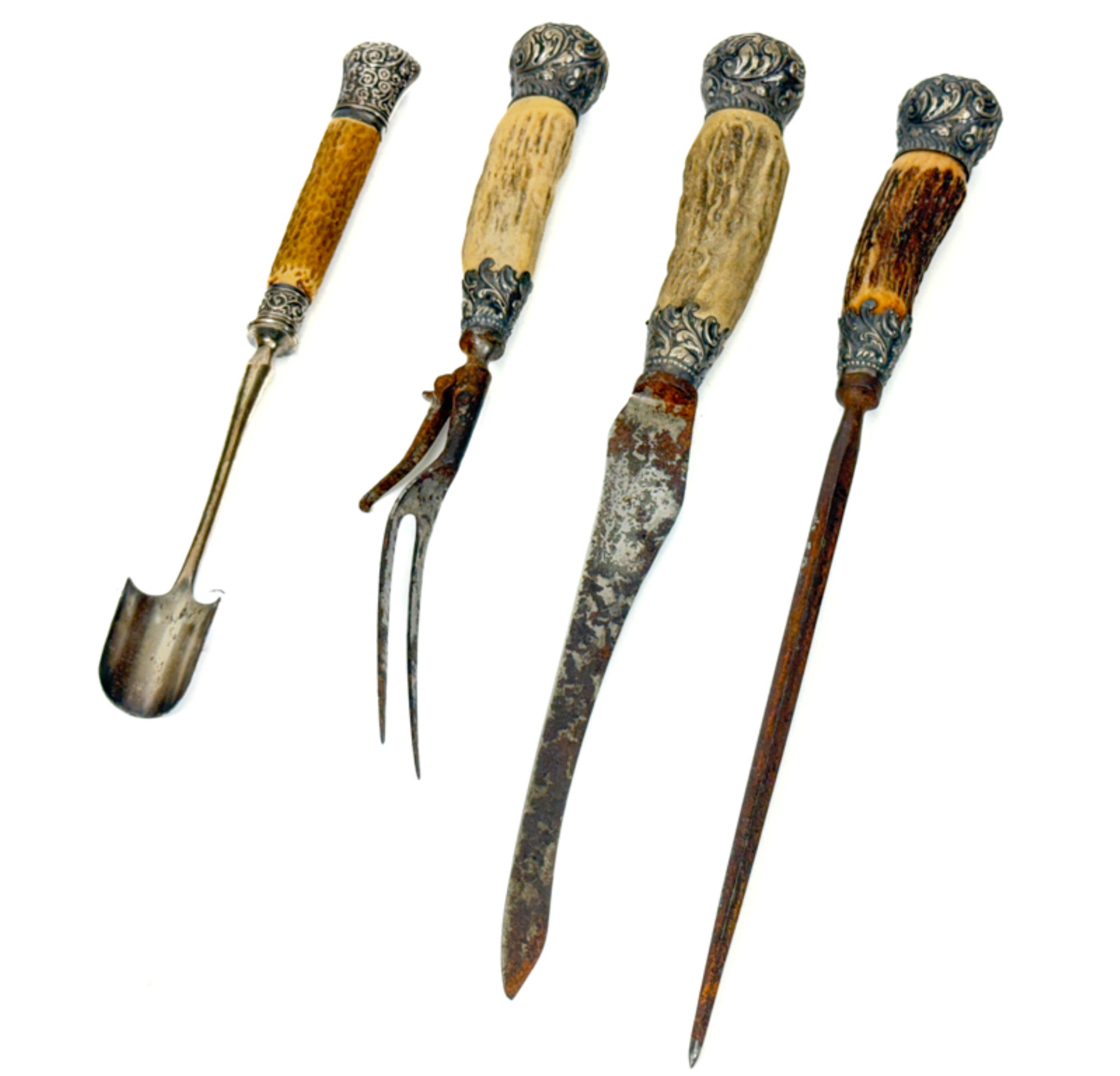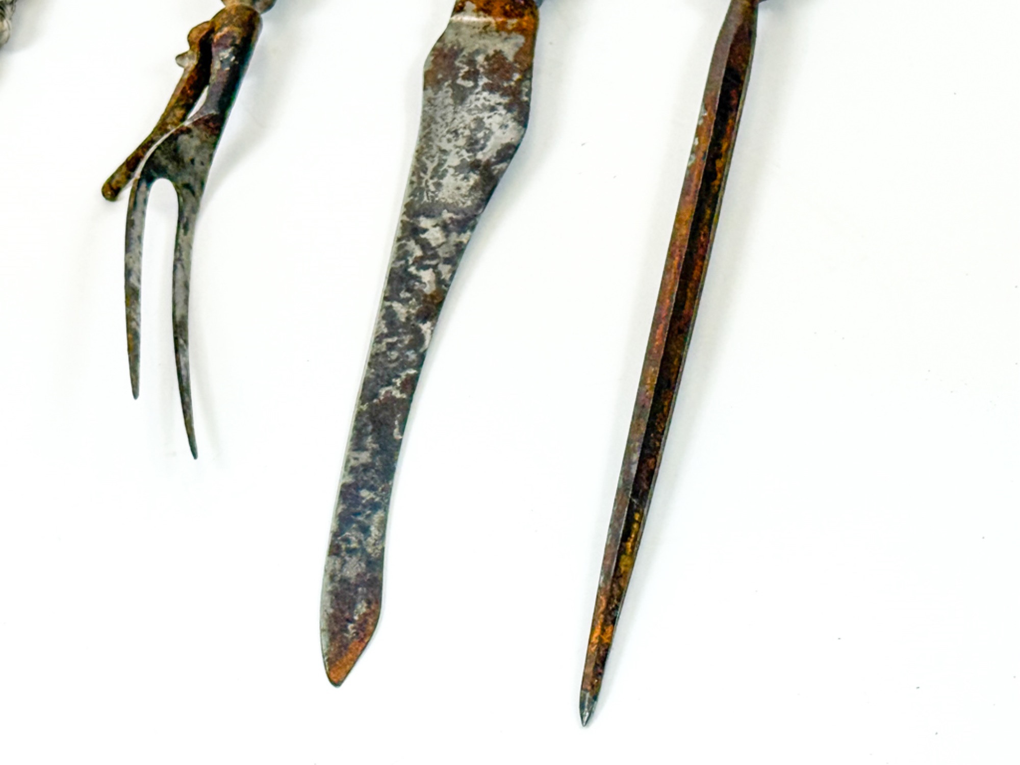 Longest measures 14 1/4 inches. Condition: Oxidation, age/use wear.
