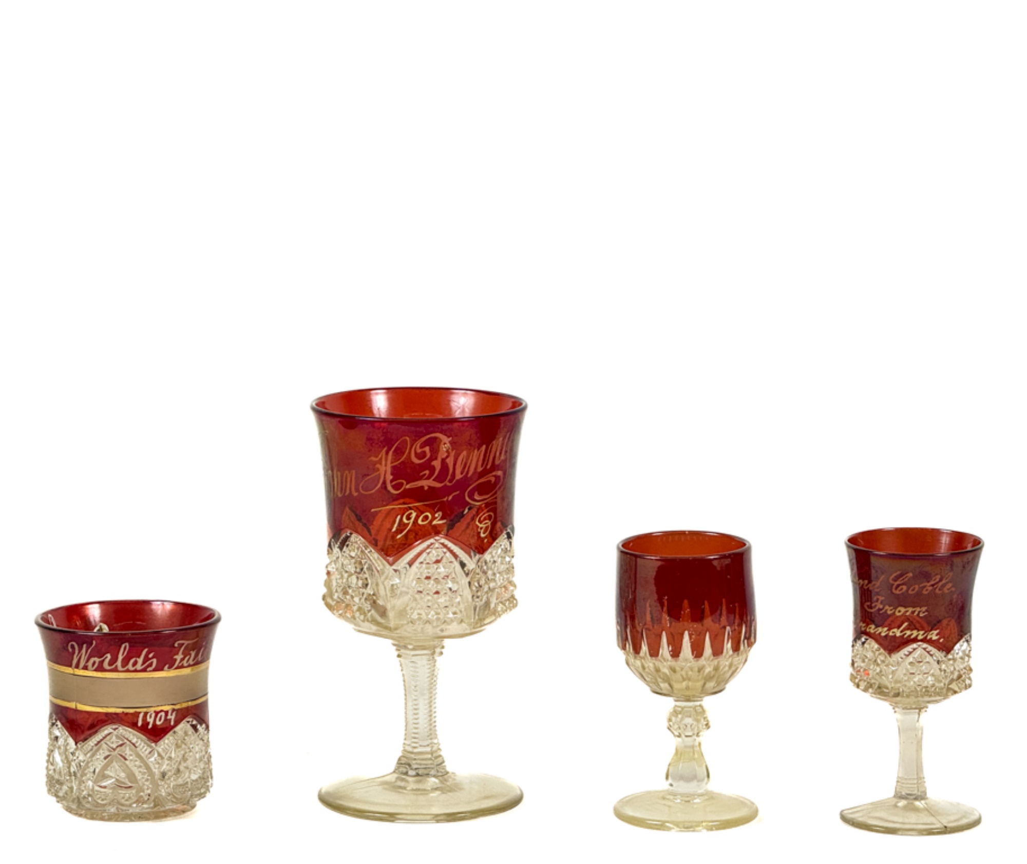 Worlds Fair 1904, etc. Tallest measures 6 inches. Condition: Good.