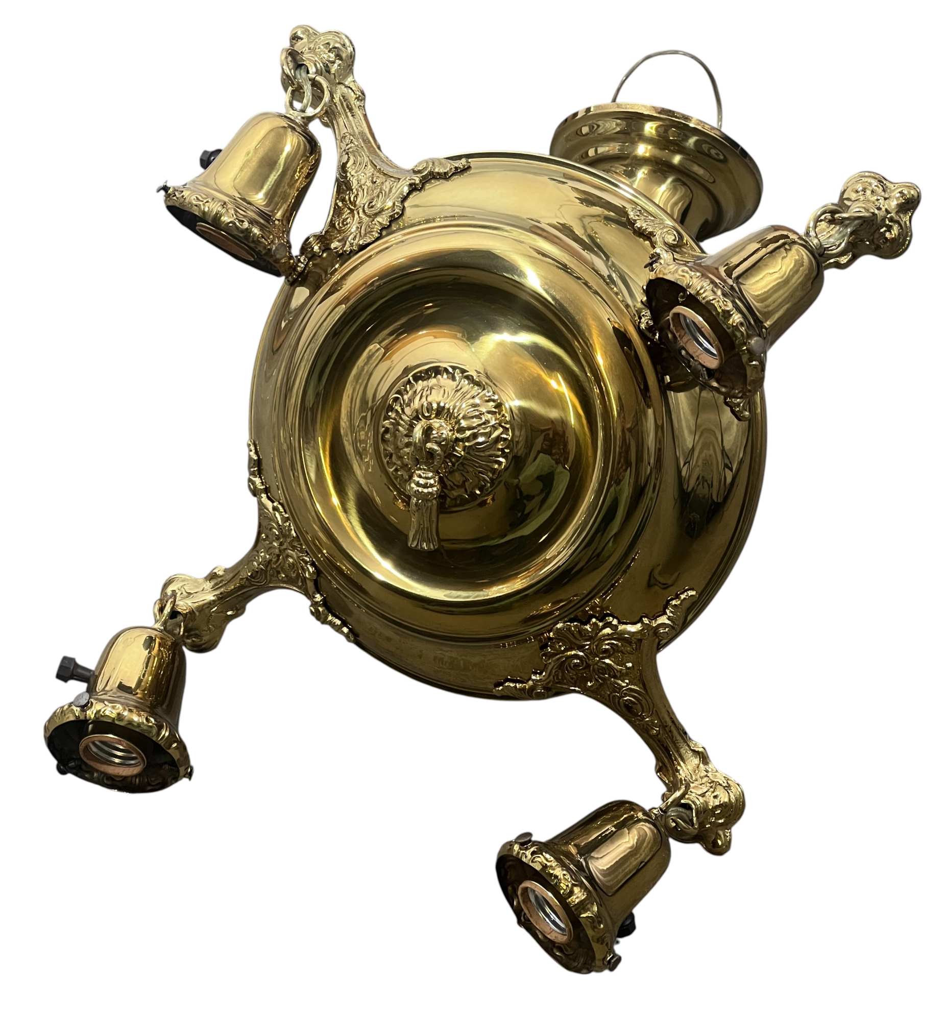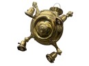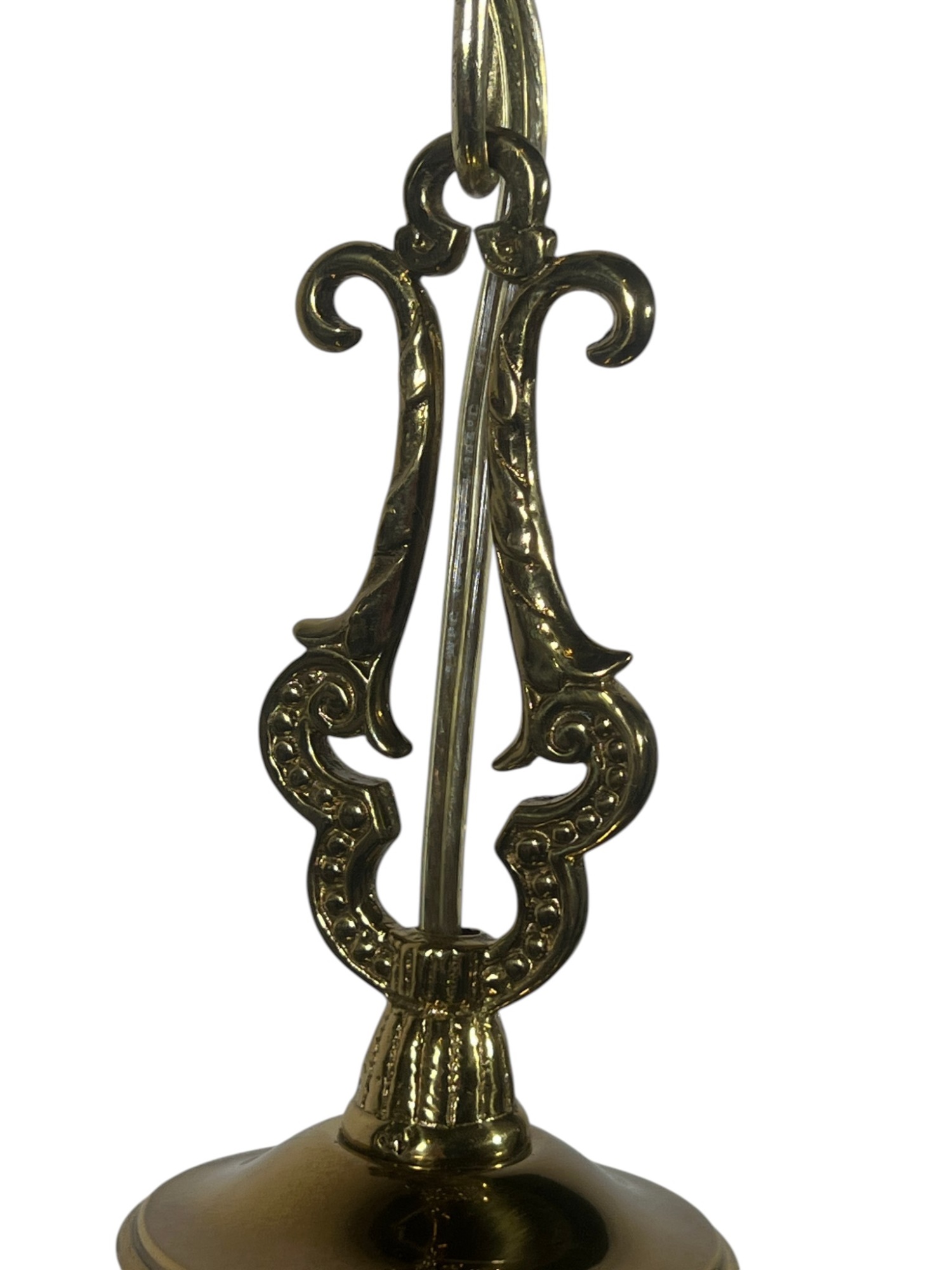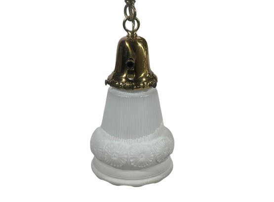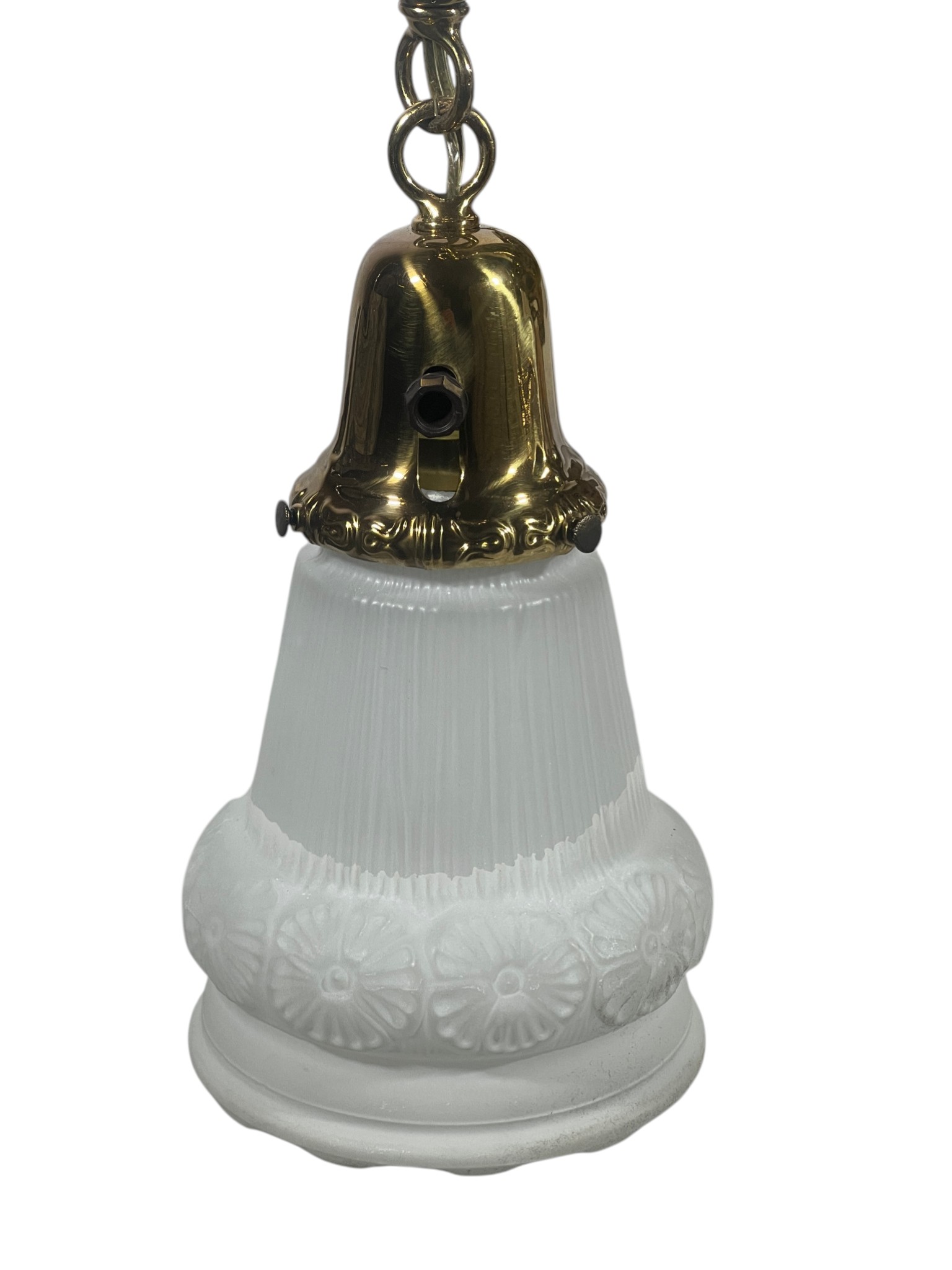 With nicely cast brass arms and frosted pressed glass floral shades. 41 x 17 inches. Condition: Untested, flaking to finish/paint on shades. Temp No 8735