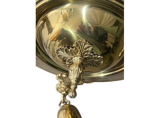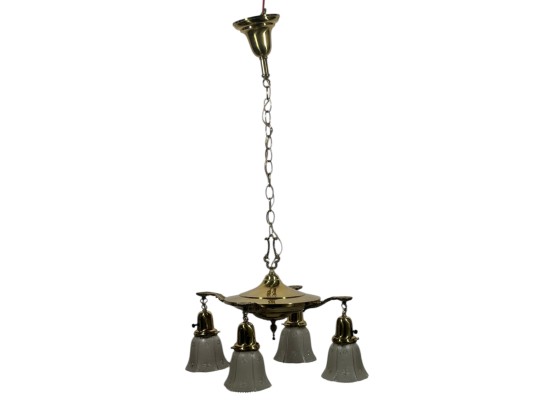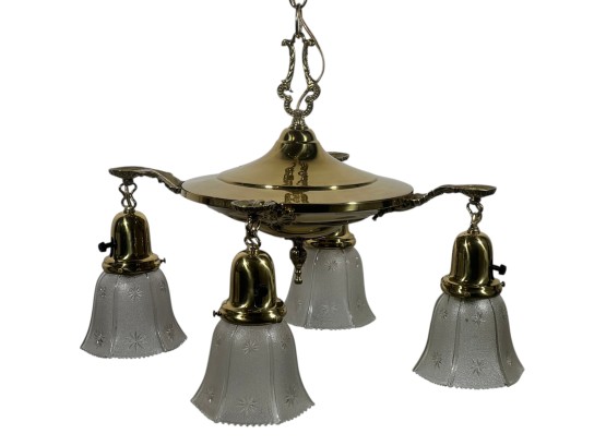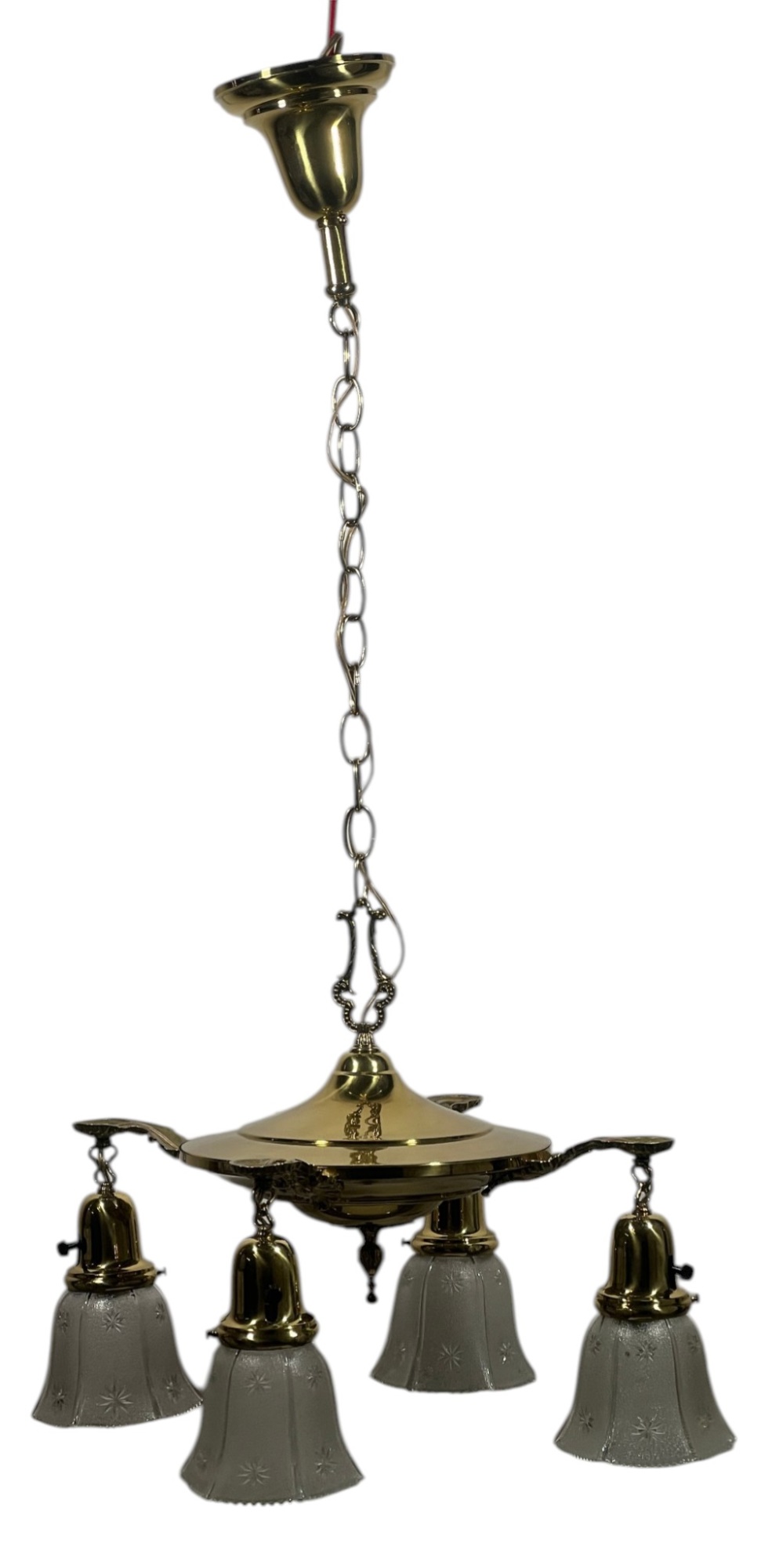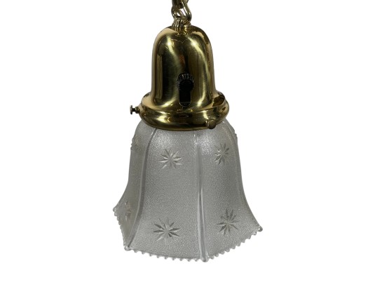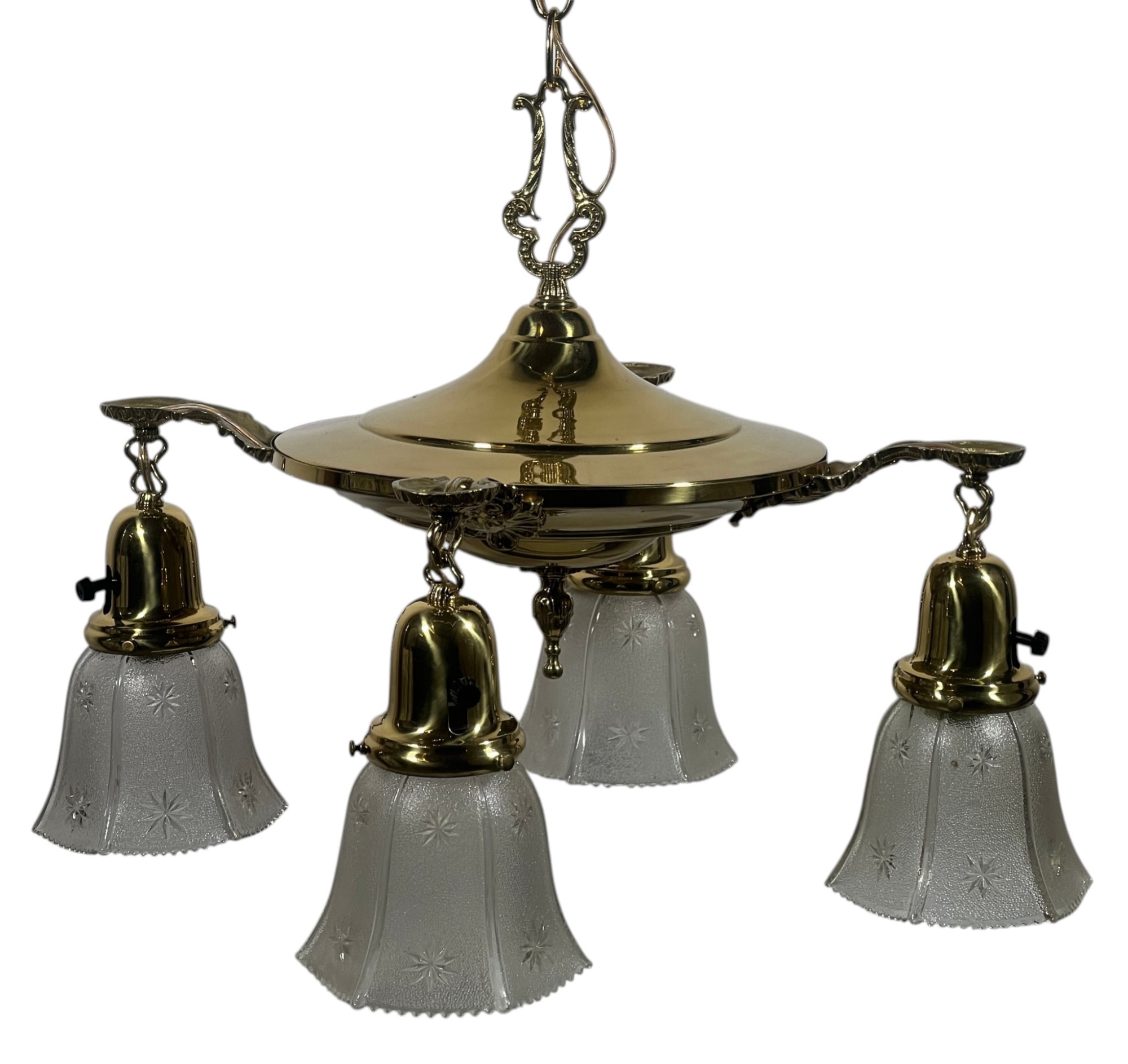 With nicely cast brass arms and pressed glass shades with cut stars. 36 x 17 inches. Condition: Untested.
