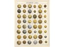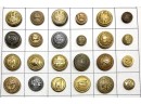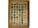 Metal buttons housed in a carved shadow box frame. 12 1/2" x 9 1/2" x 1 1/4"