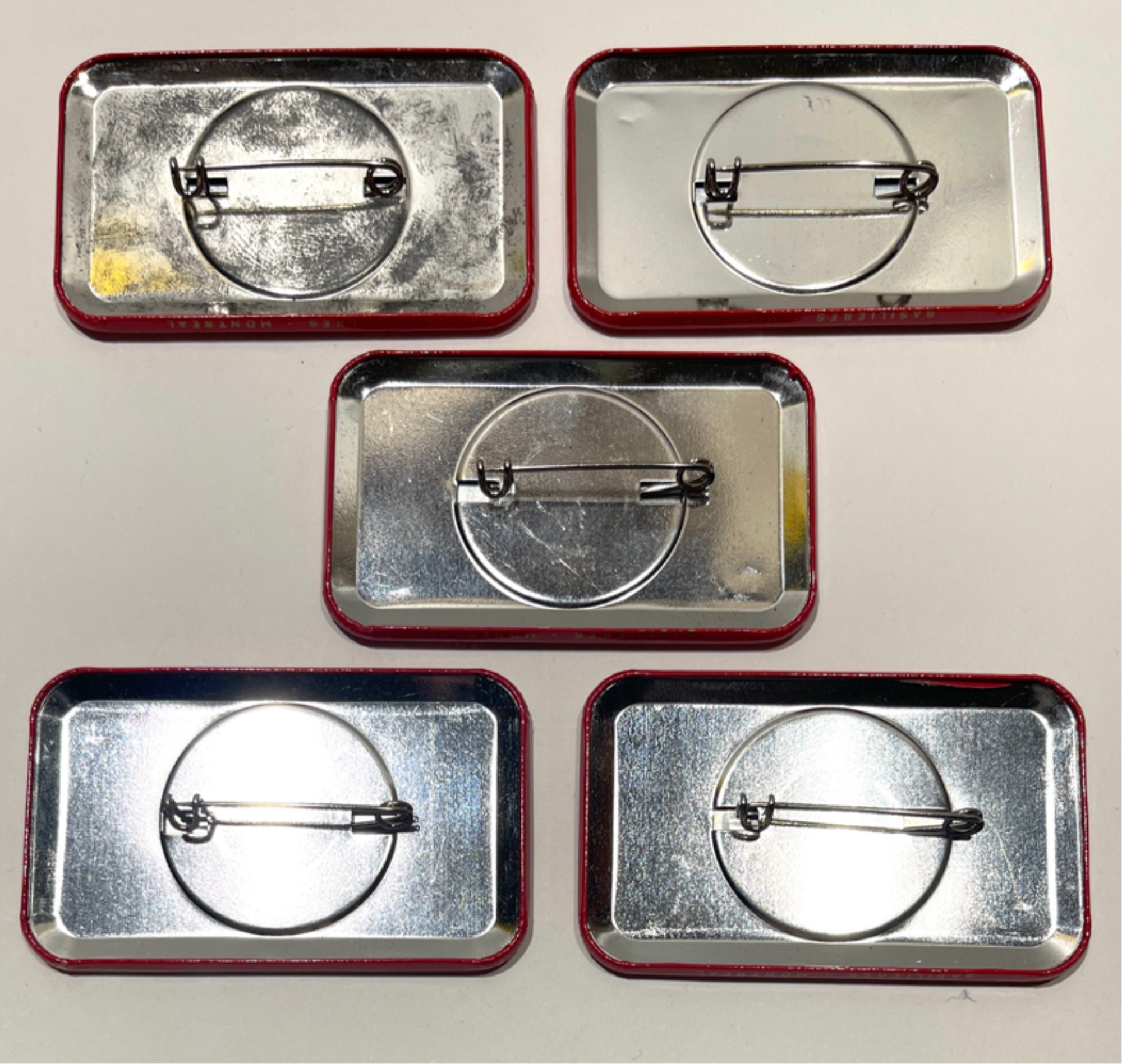 With metal hardware. 1 3/4 x 2 3/4 inches