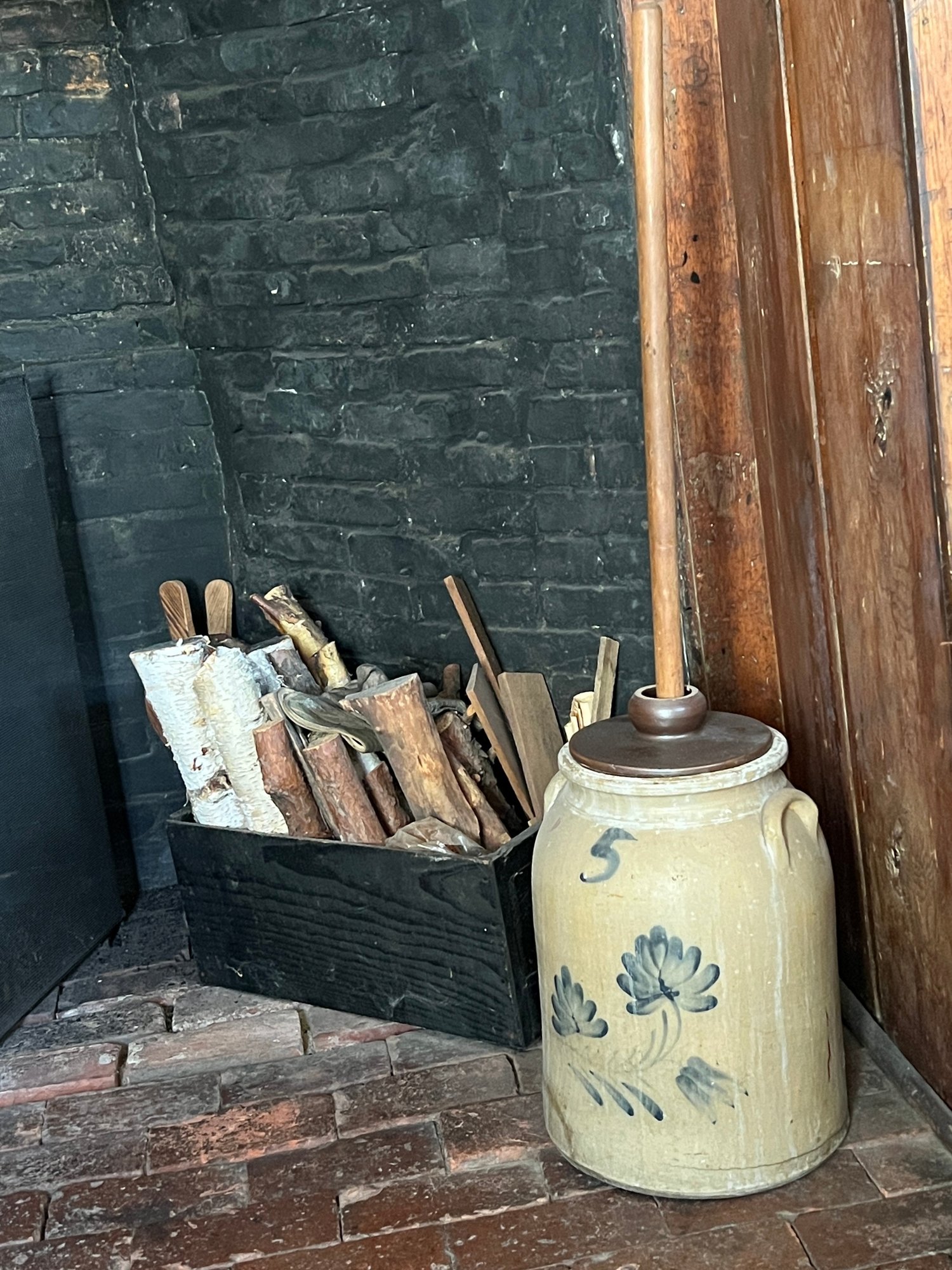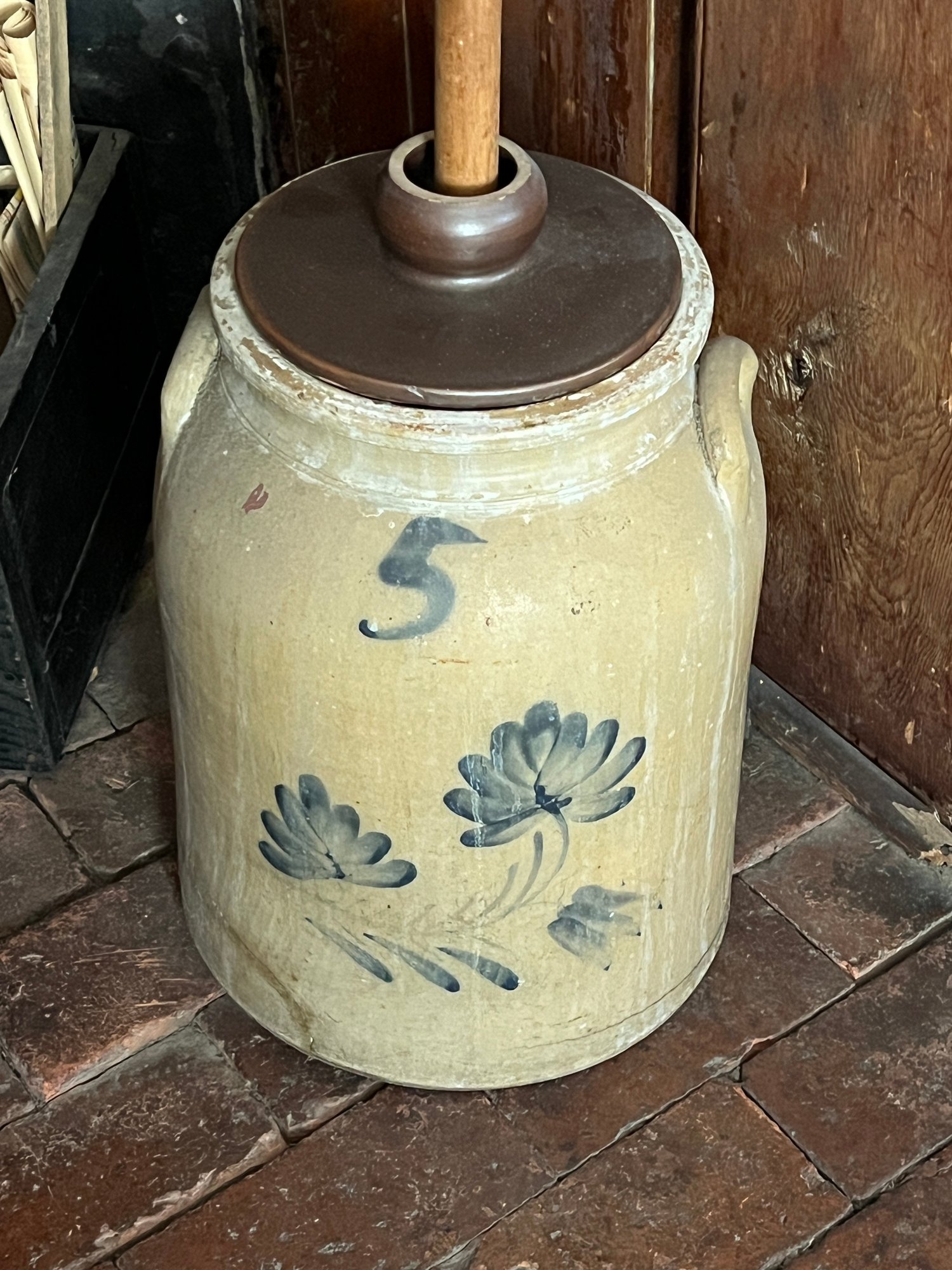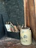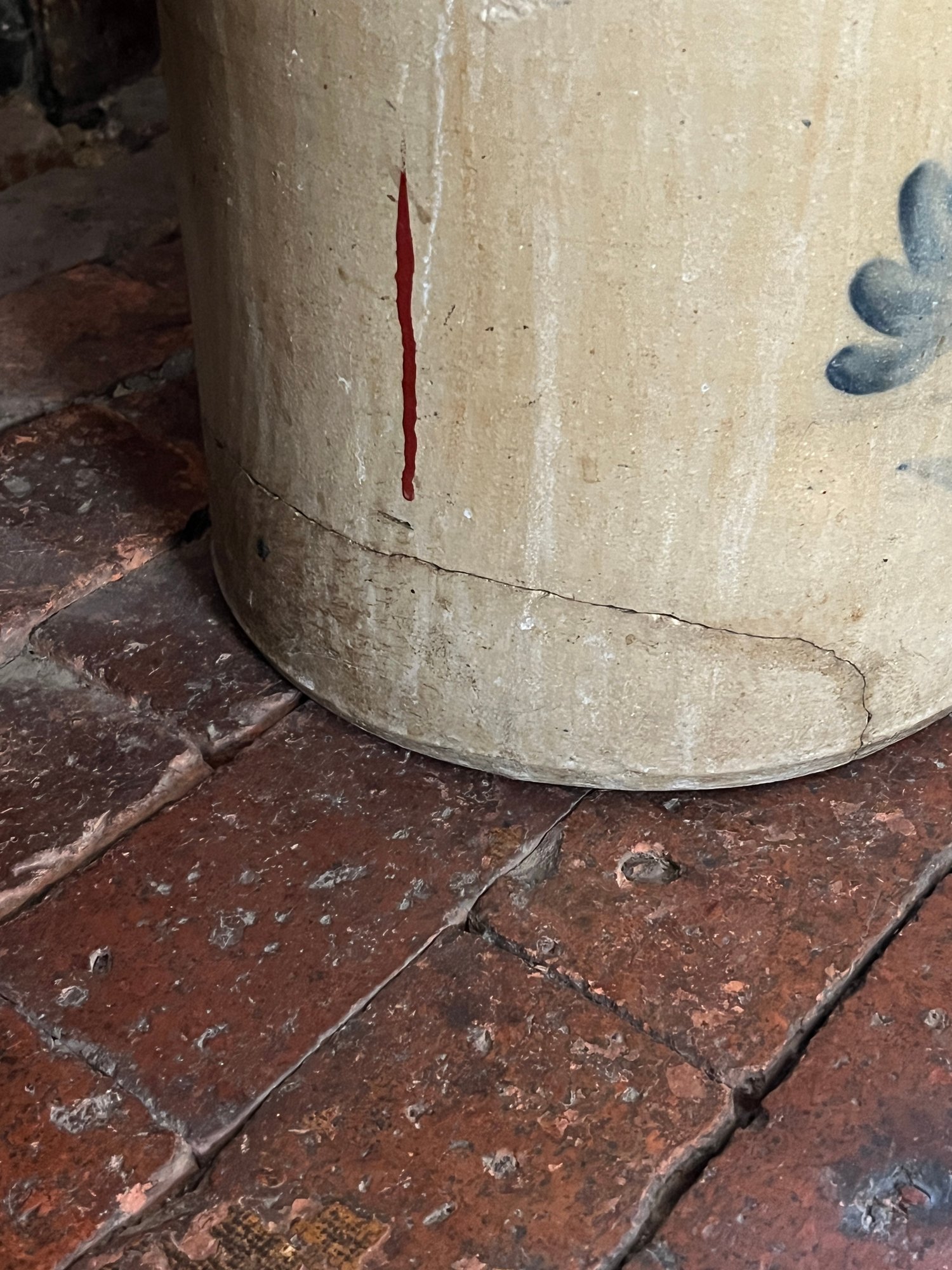 Cobalt decorated salt glazed stoneware 15.25 inches pole 40.5 inches. 42 inches (overall)