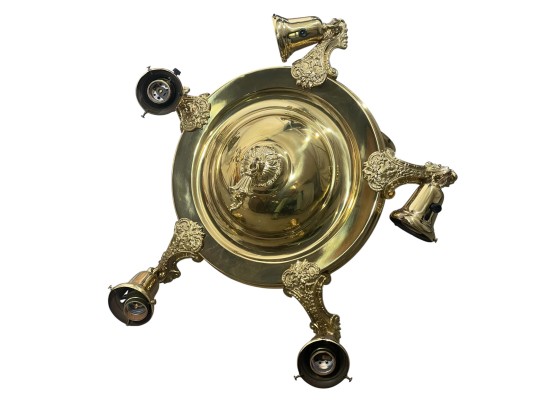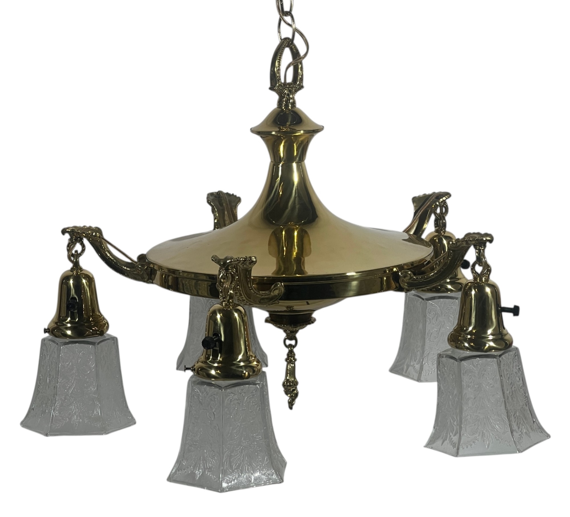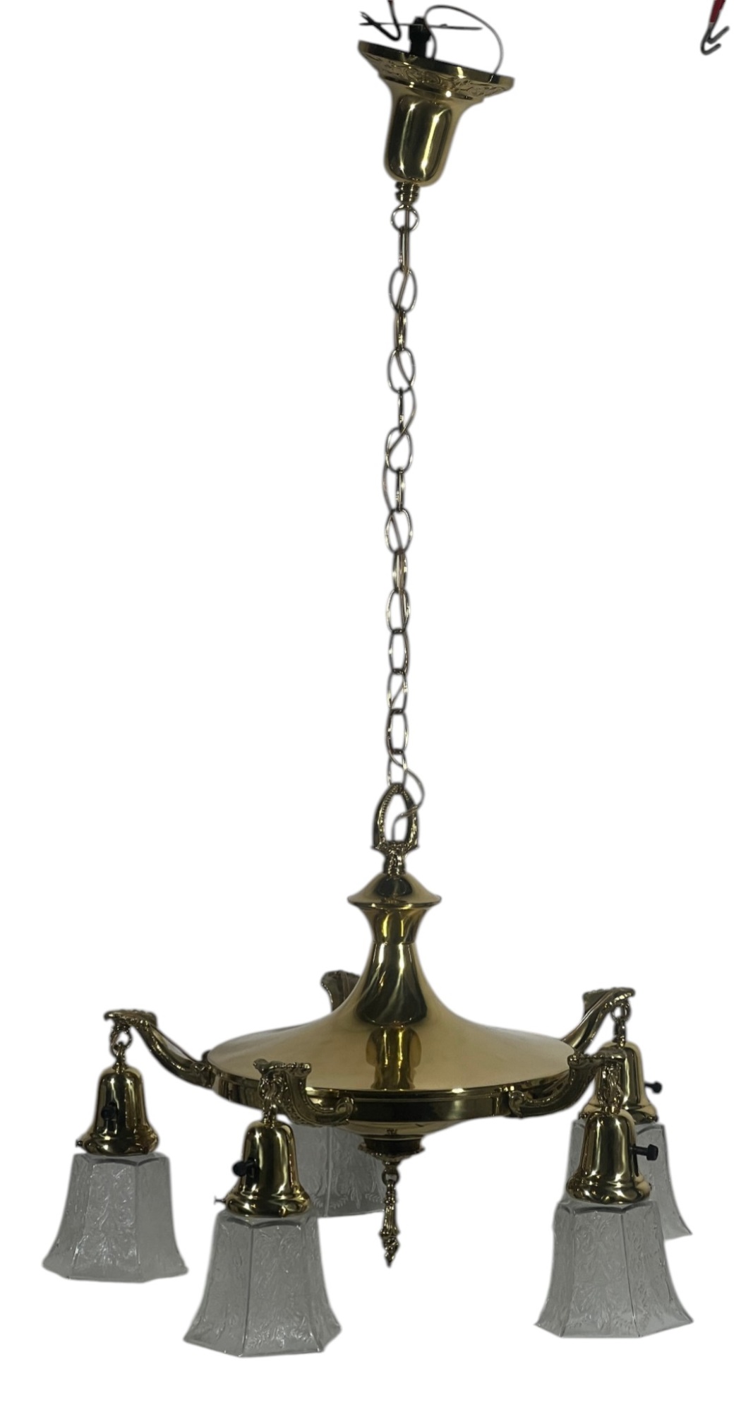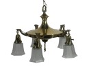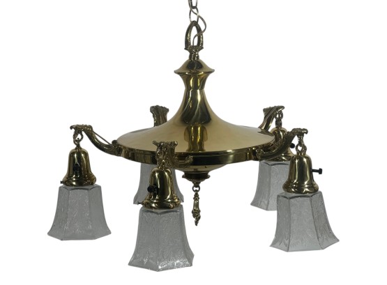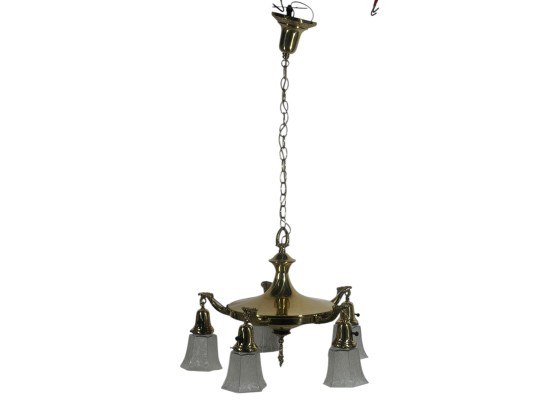 With nicely cast brass arms and pressed glass shades with Classical motifs. 40 x 17 inches. Condition: Untested. Temp No 8736