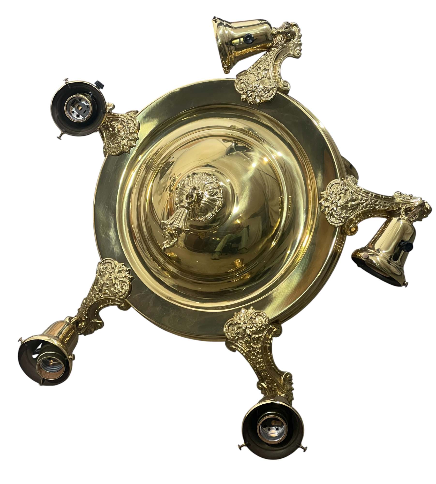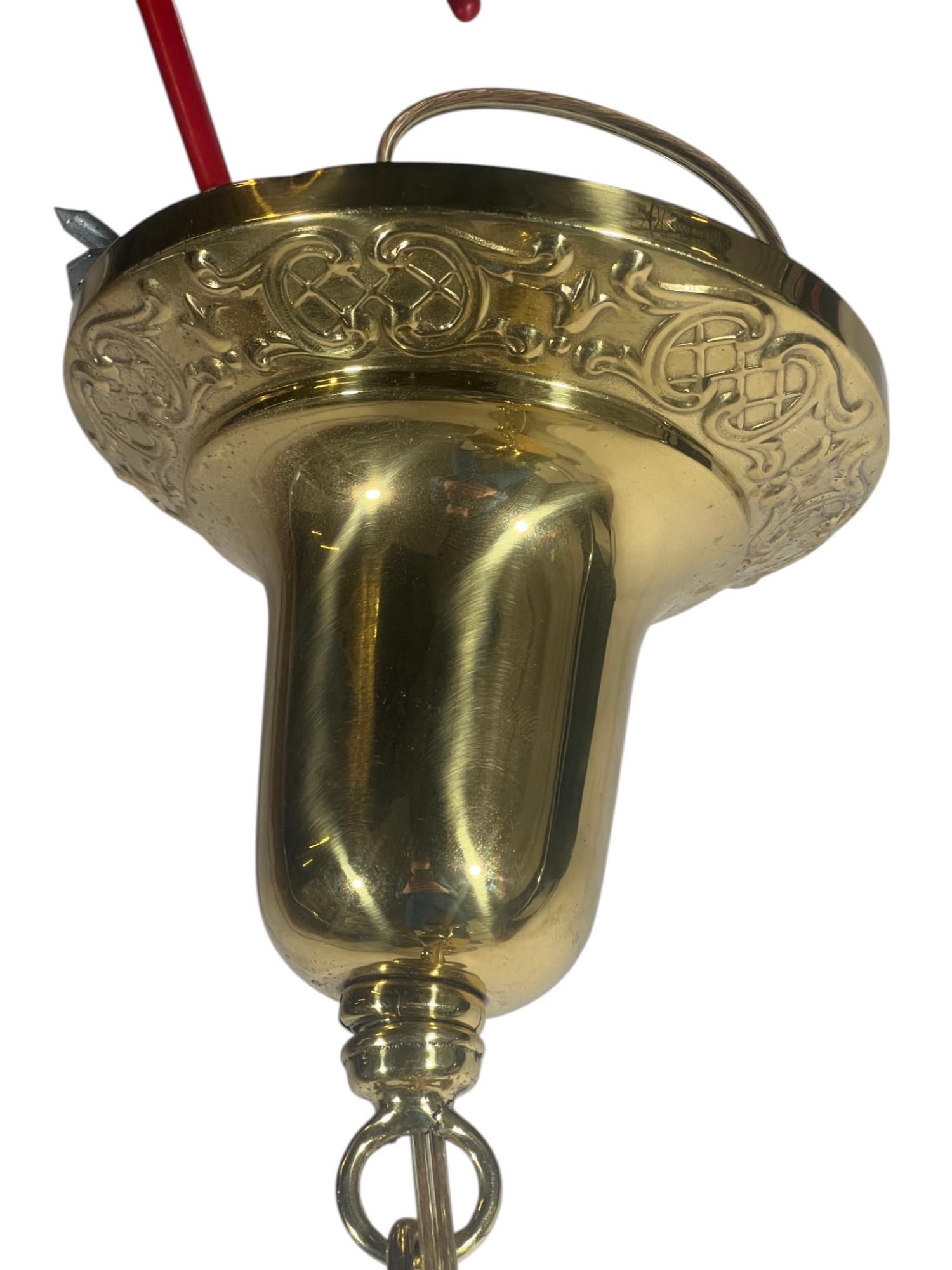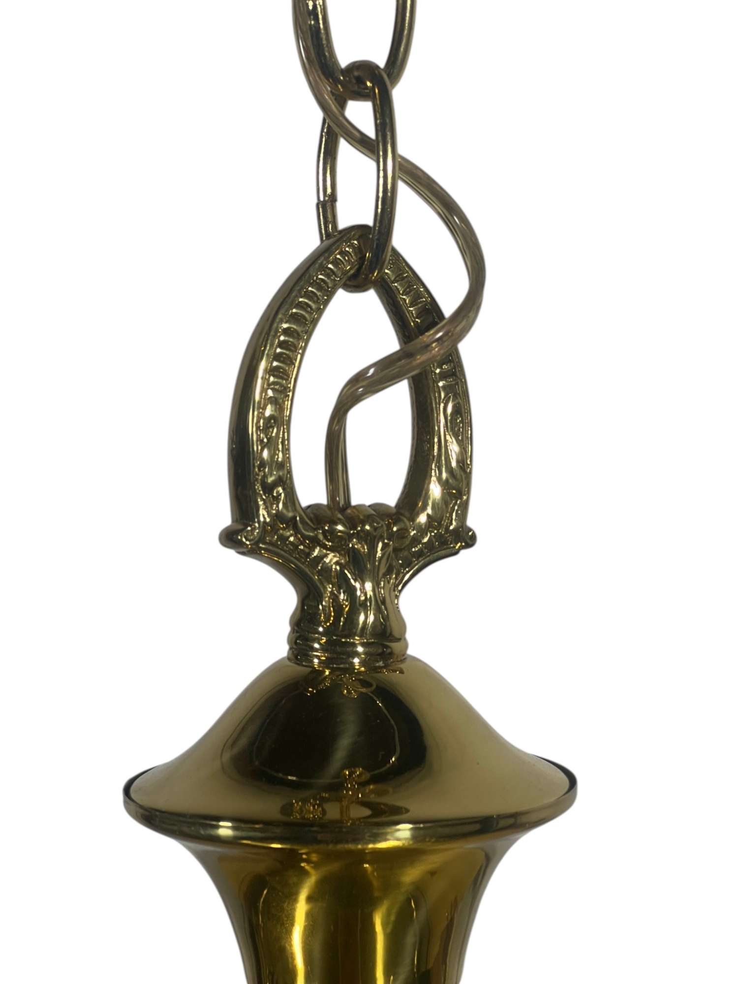 With nicely cast brass arms and pressed glass shades with Classical motifs. 40 x 17 inches. Condition: Untested. Temp No 8736