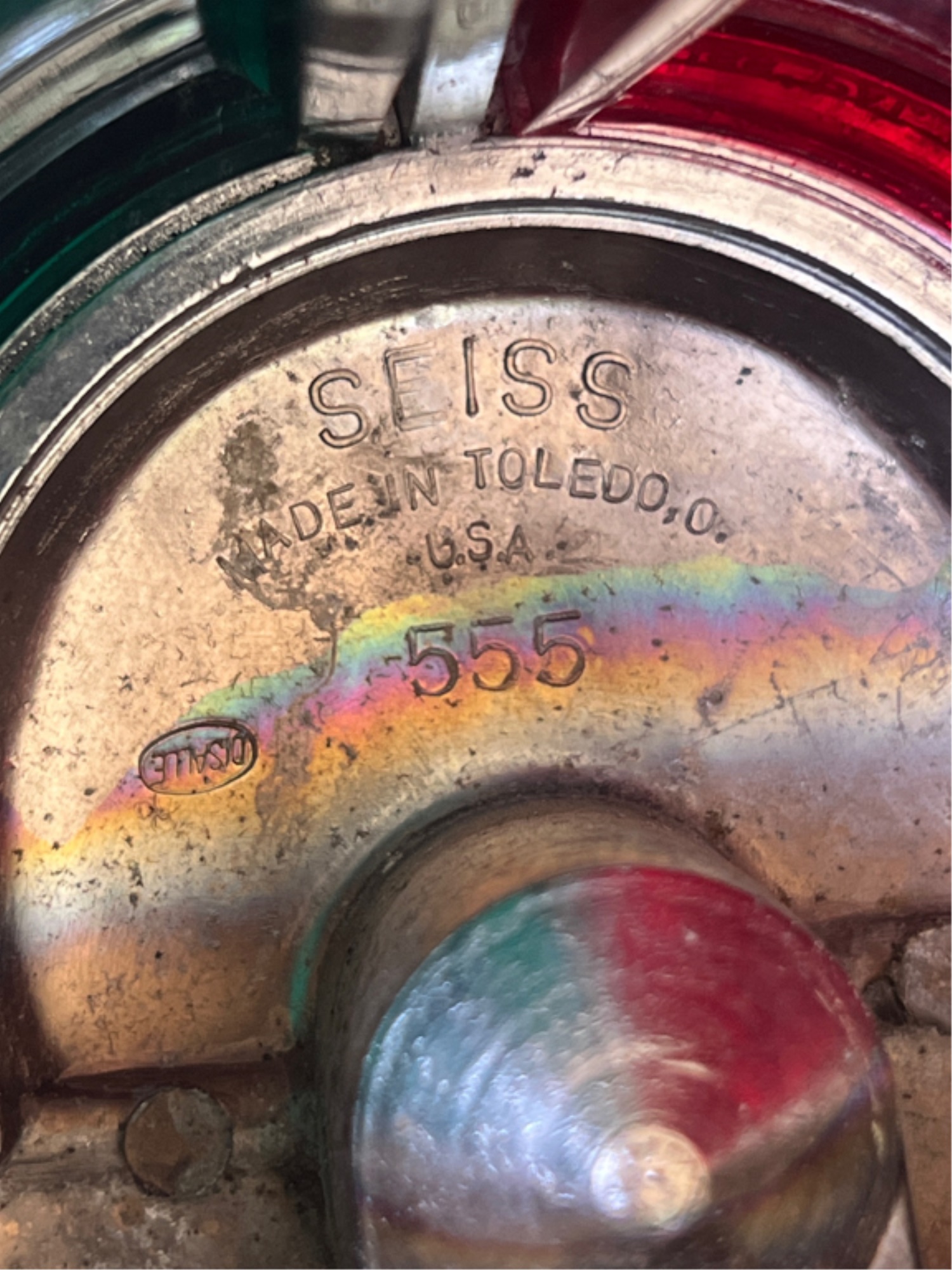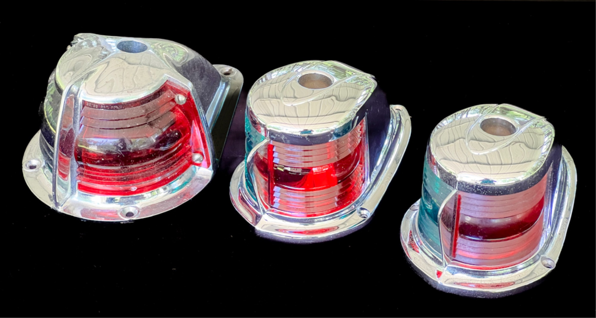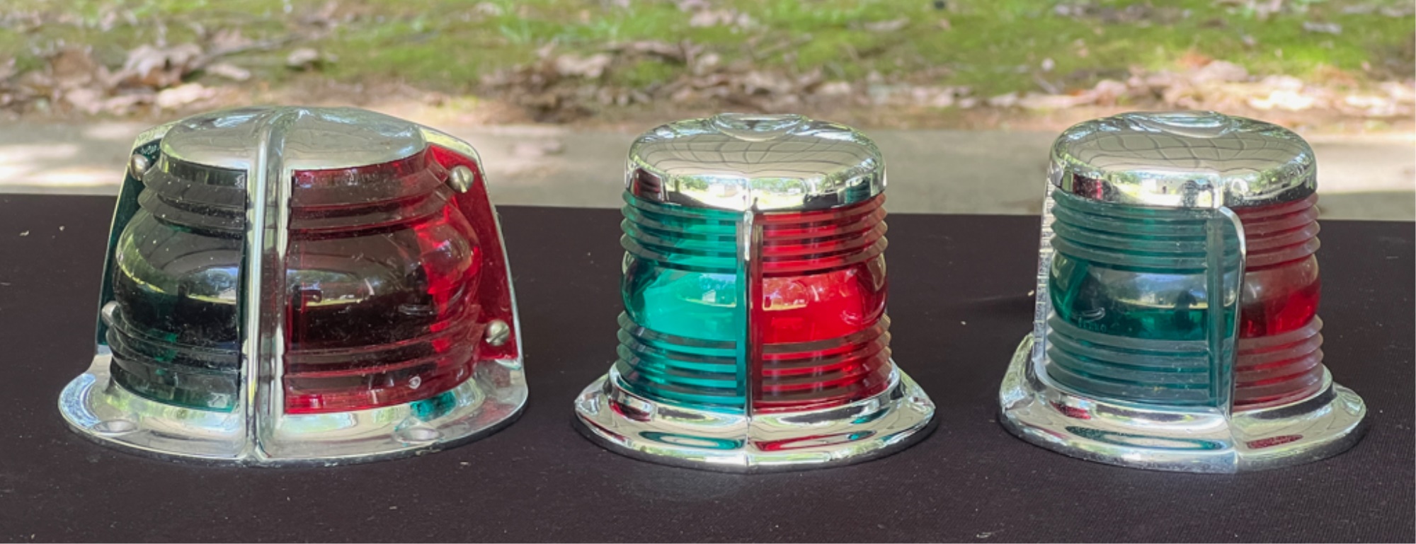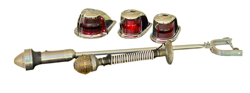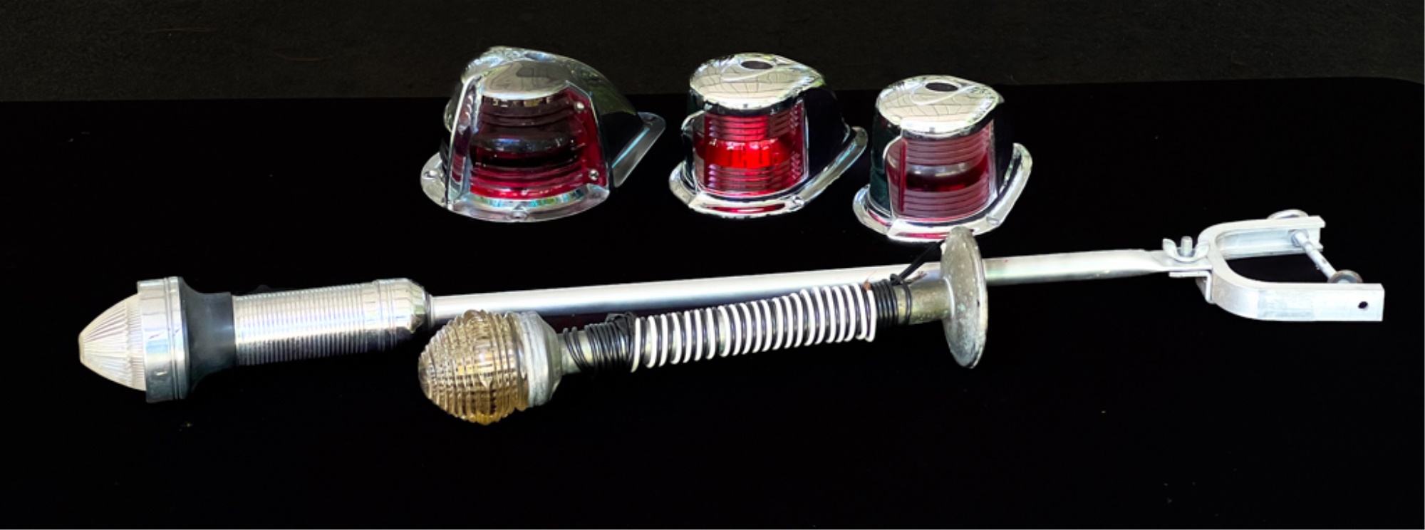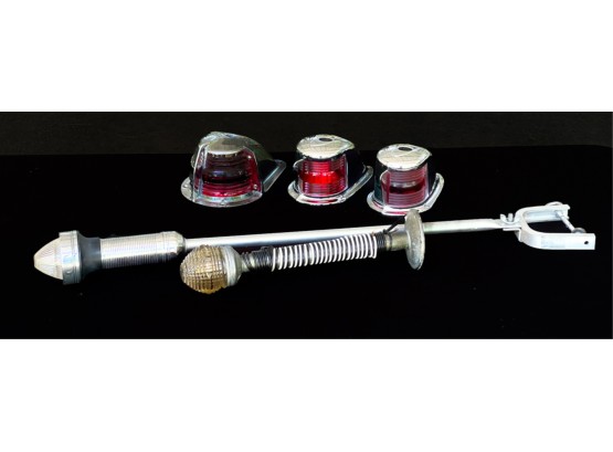 (3) navigational bow lights & (2) stick lights. 29 inches. Condition: Untested. Temp No 4170