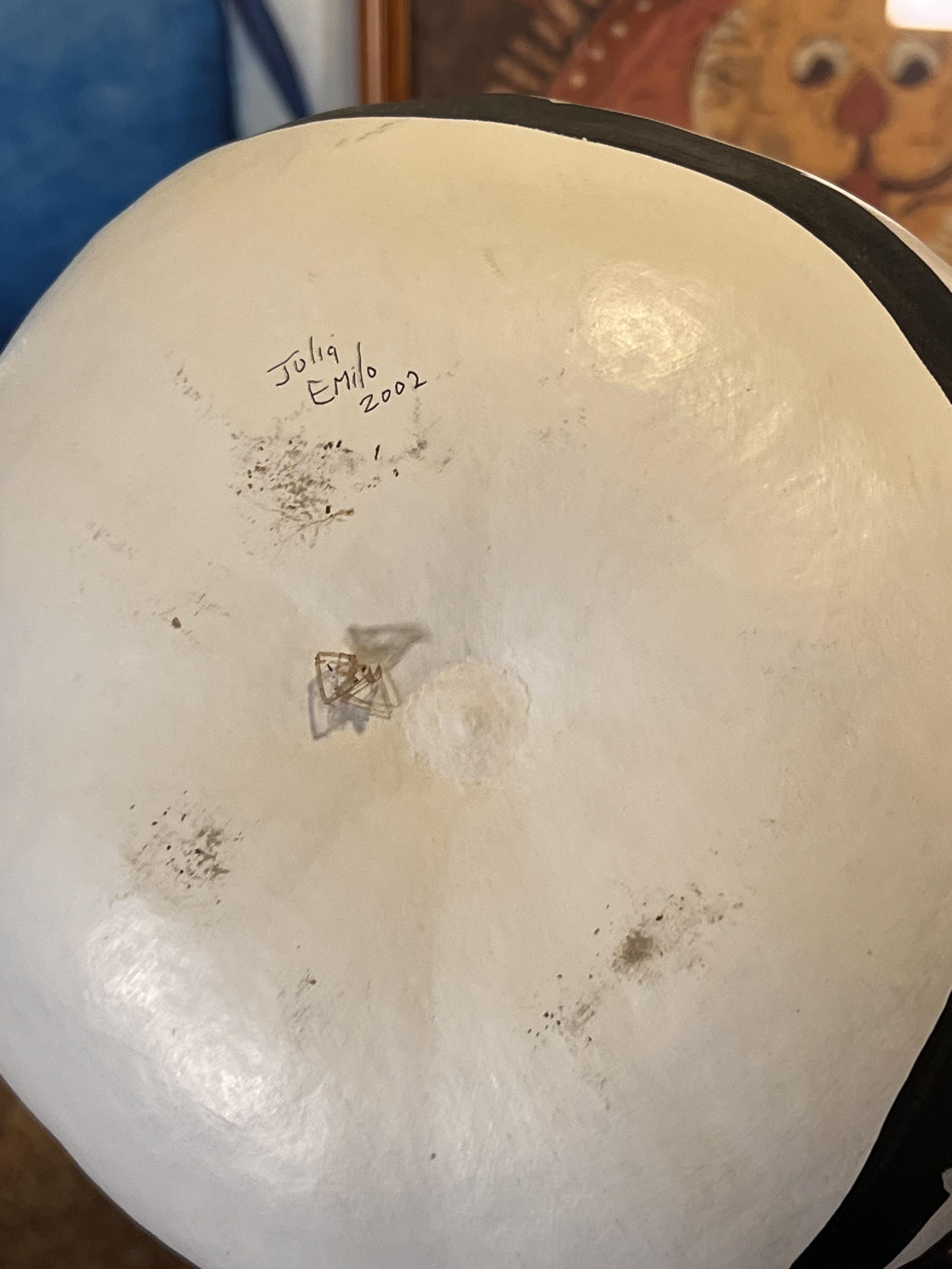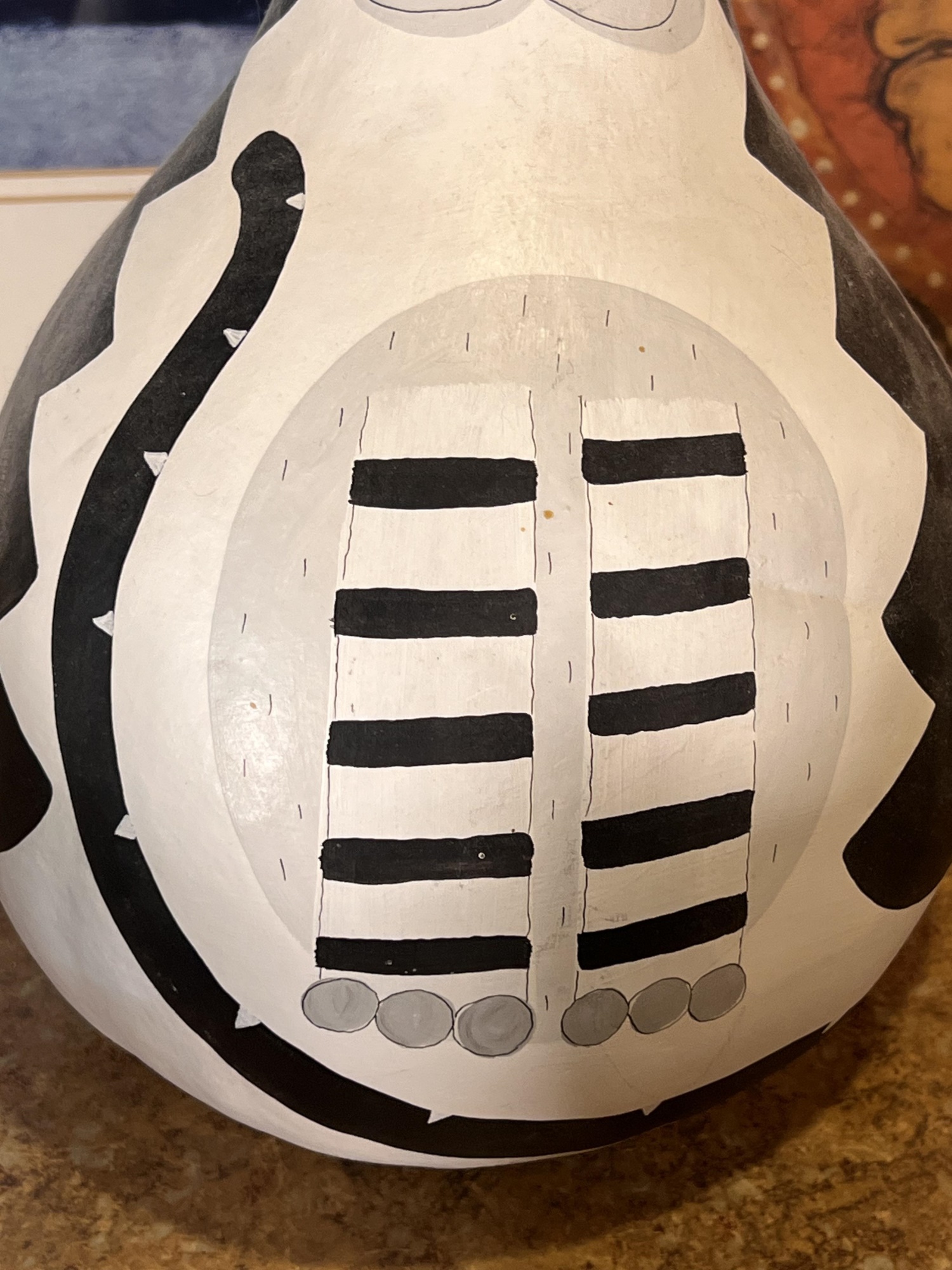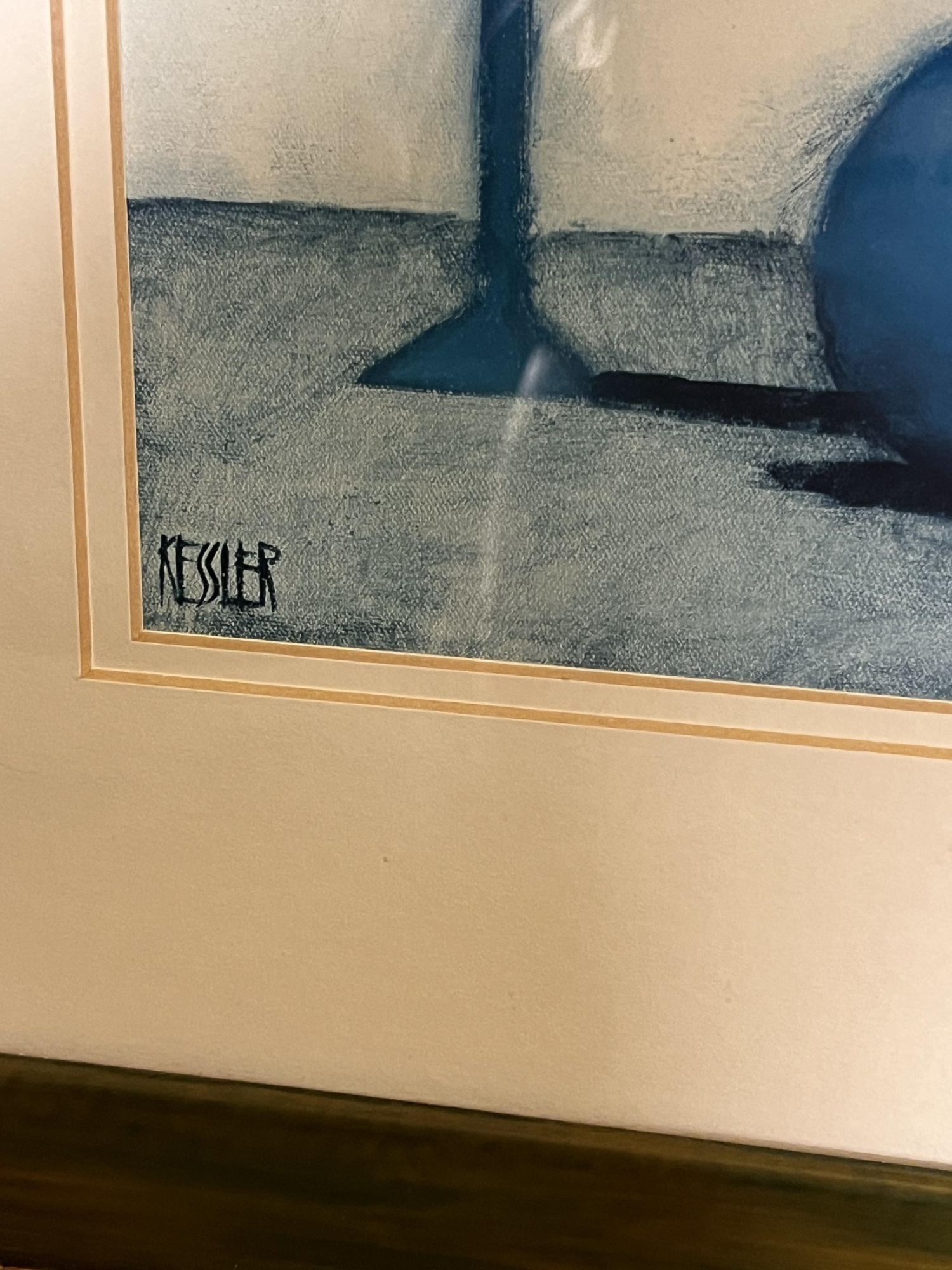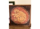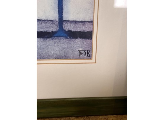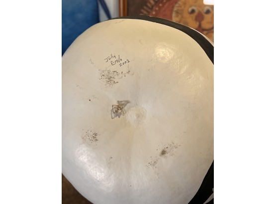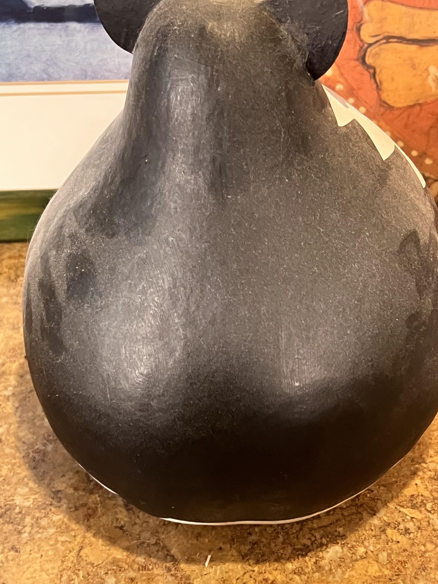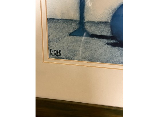 (2) Carved wood matching cats, painted gourd cat, signed and (2) framed prints. Largest print 21 x 23 1/2 inches Condition: Good used condition