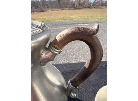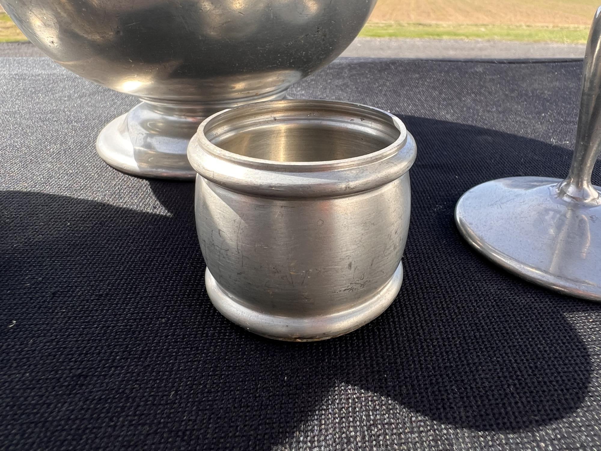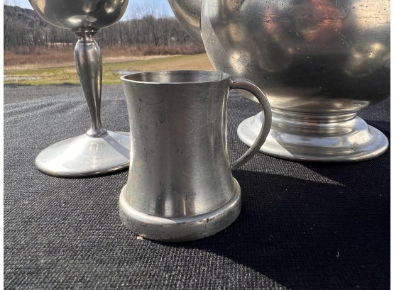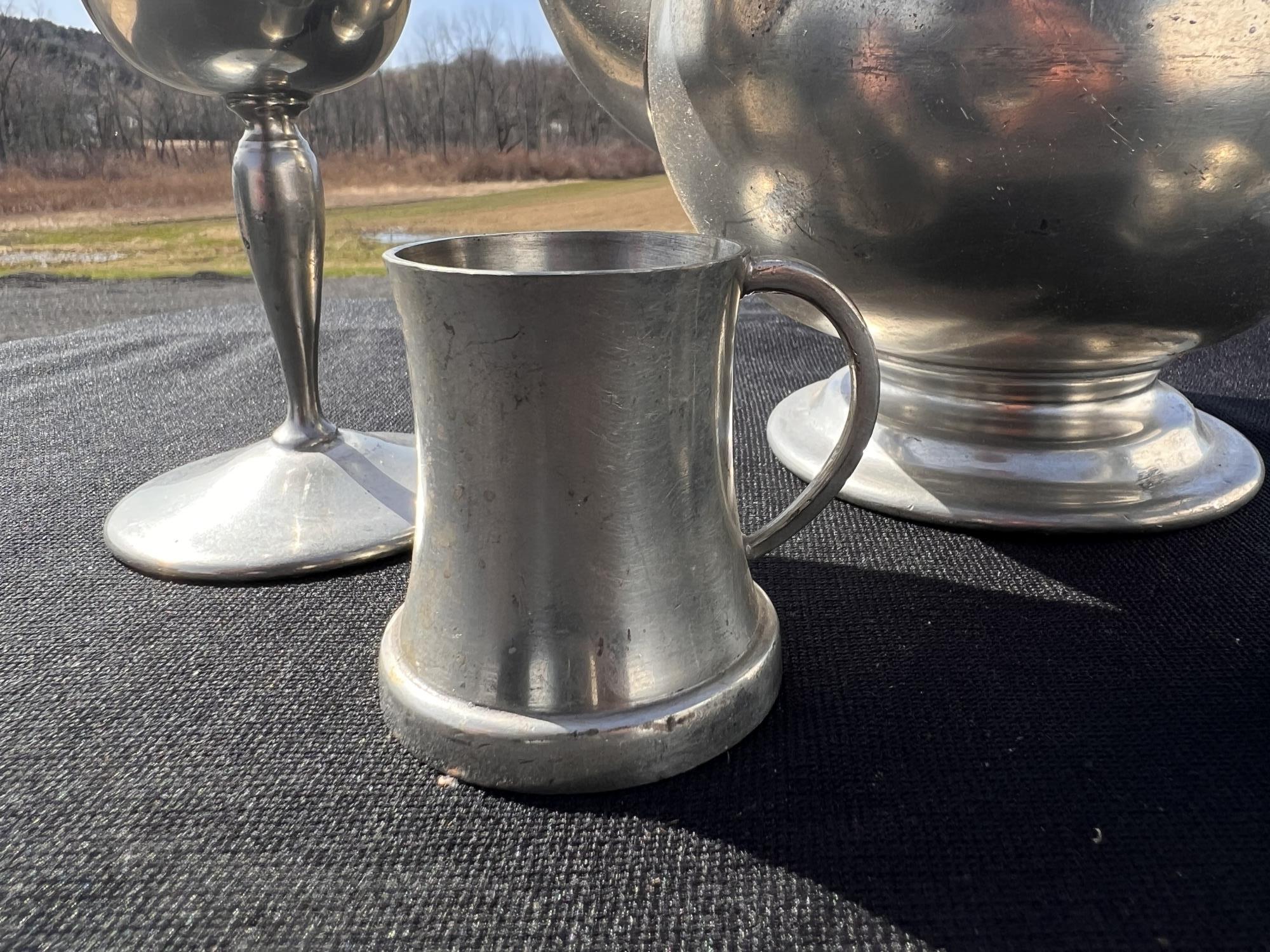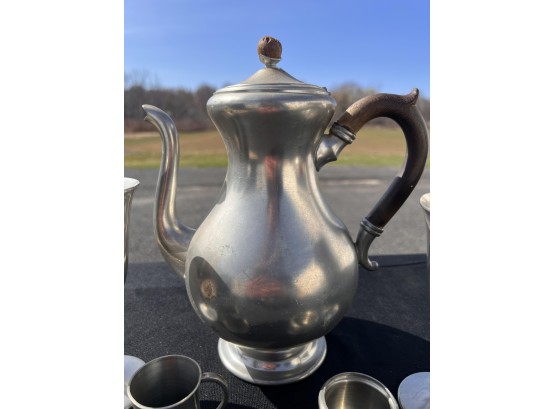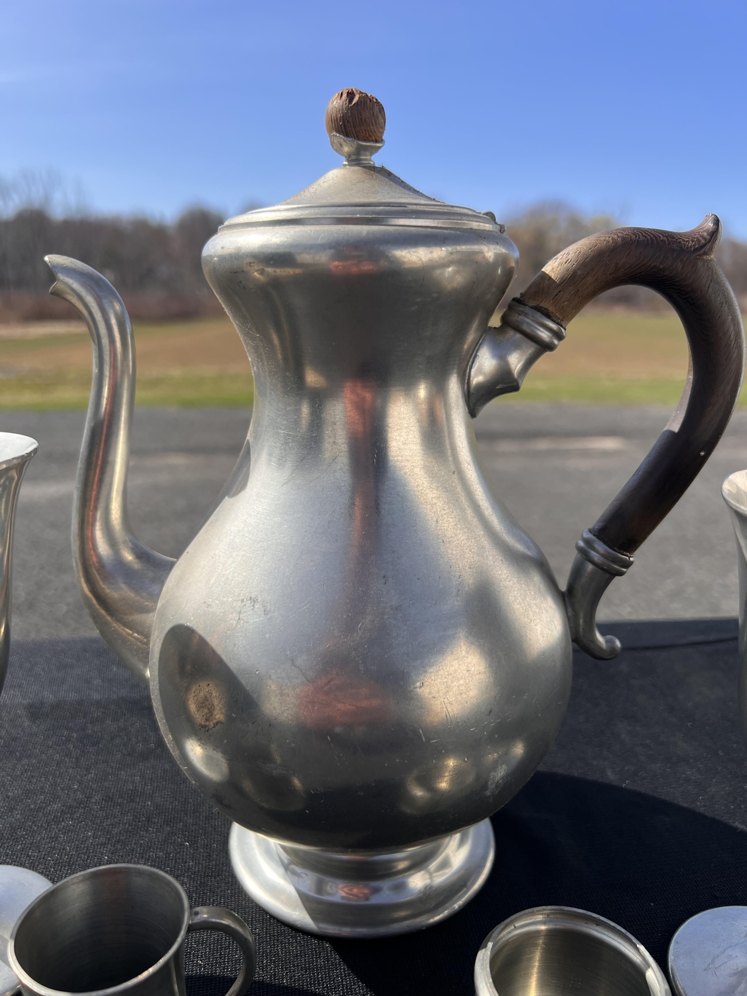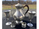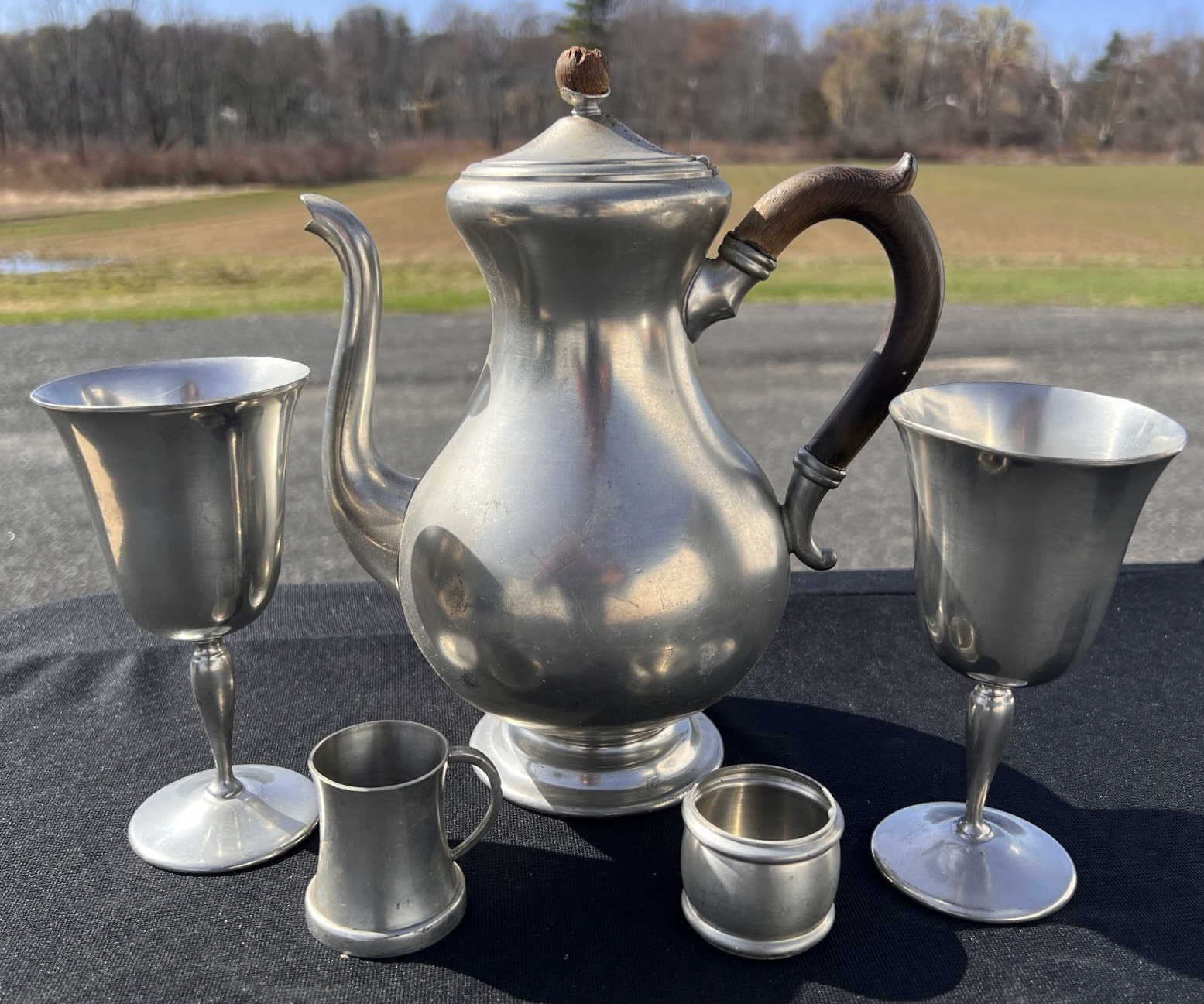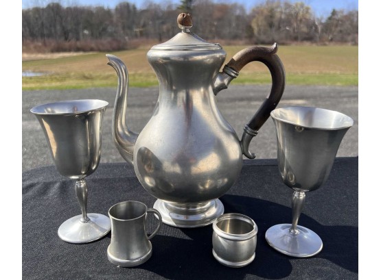 Including (2) John Starvish pewter goblets. Coffee pot 10" tall Condition: Good, wear consistent with age Temp No 6691
