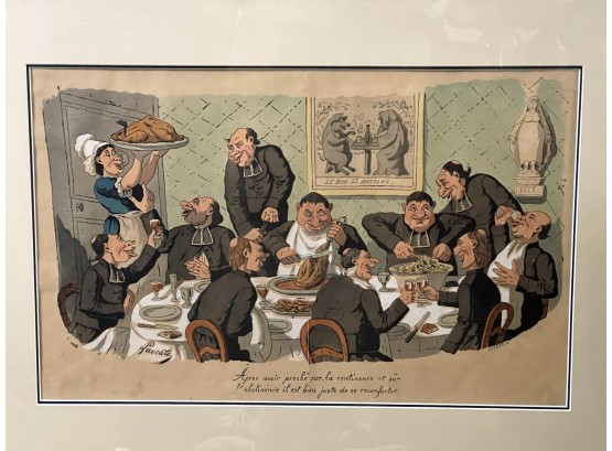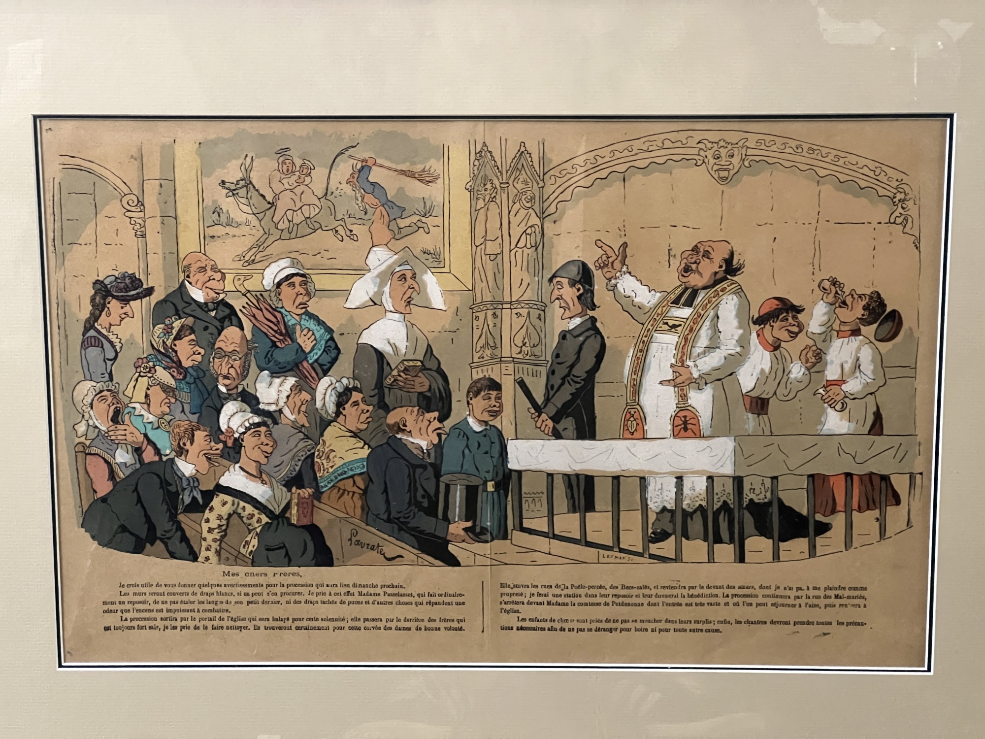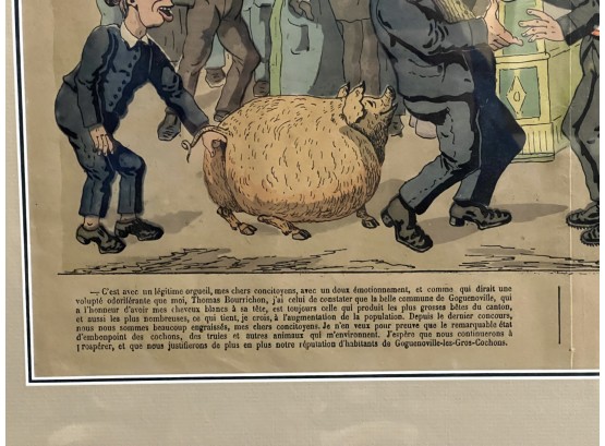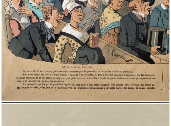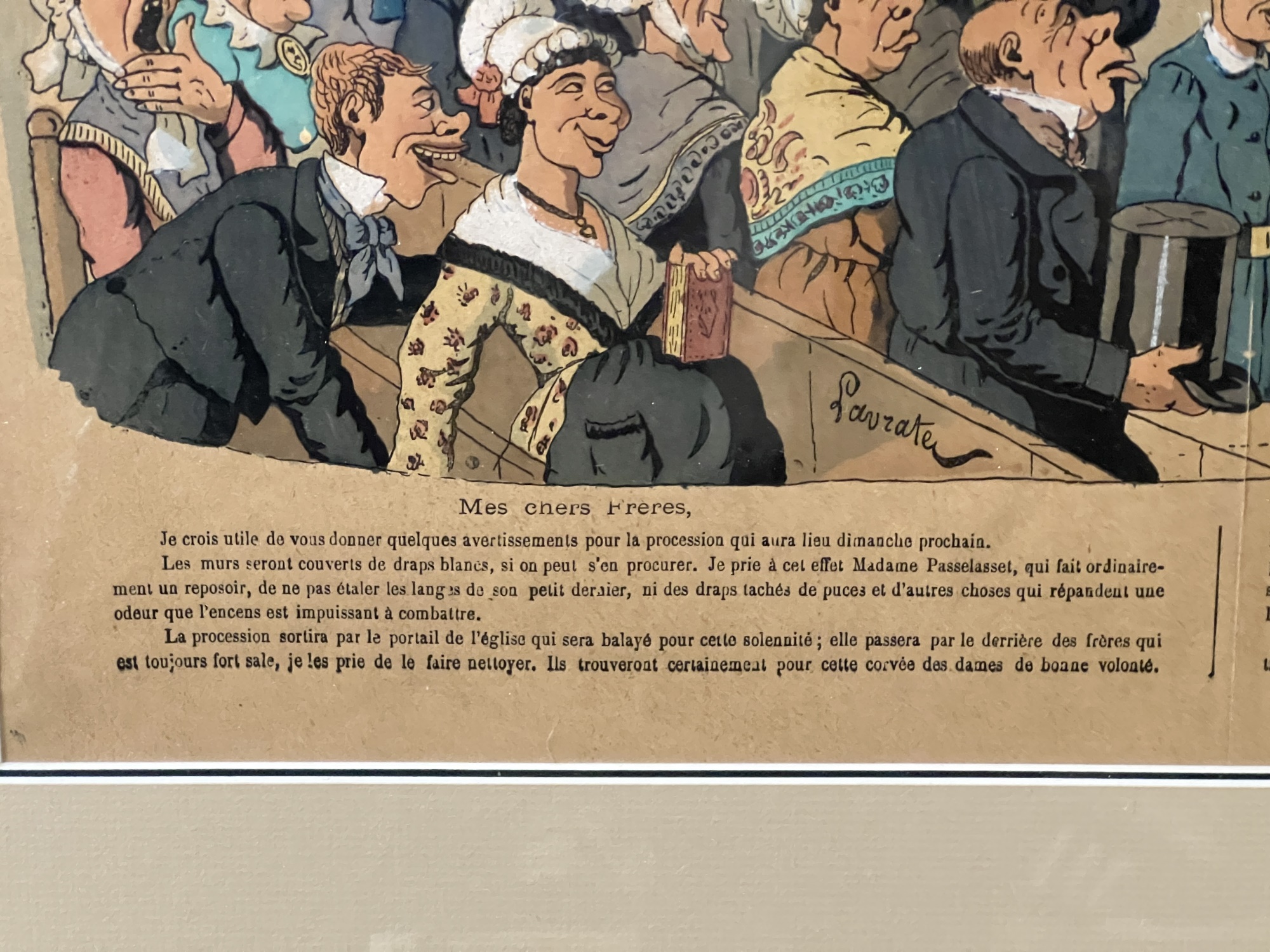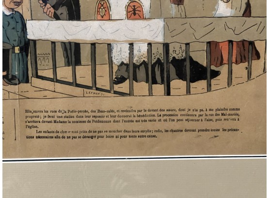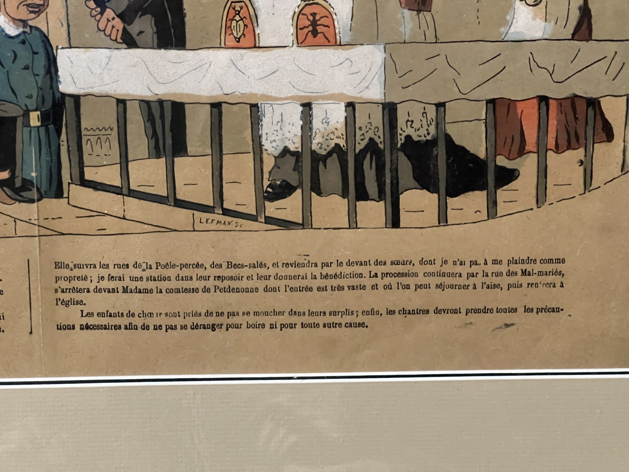 Framed colored prints. Including "Une Station D'omnibus", "Unjour De Faire", etc. In contemporary frames. 19" x 26" framed