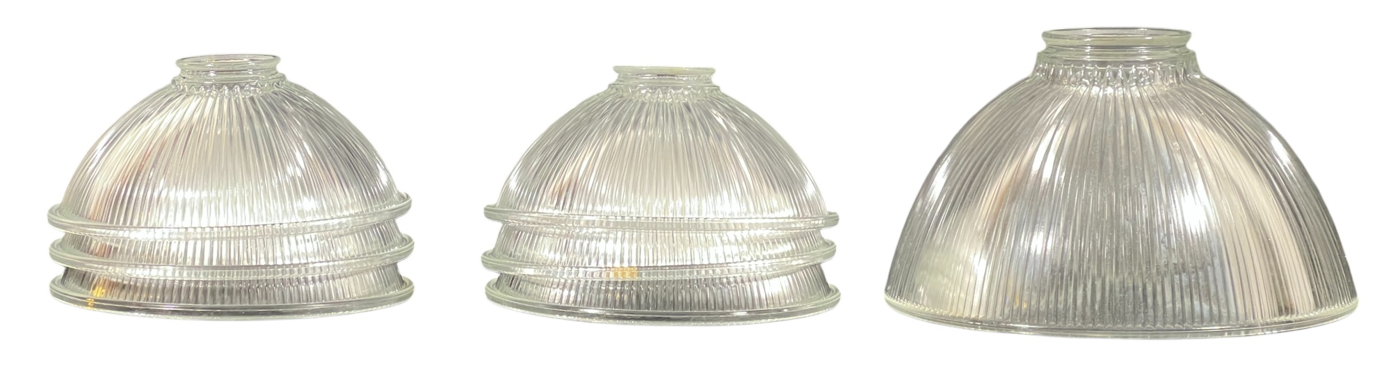 3 1/2 x 7 1/2 inches and (1) 5 3/4 x 9 3/4 inches. Smaller examples marked Holophane. Condition: Good. Temp No 8714