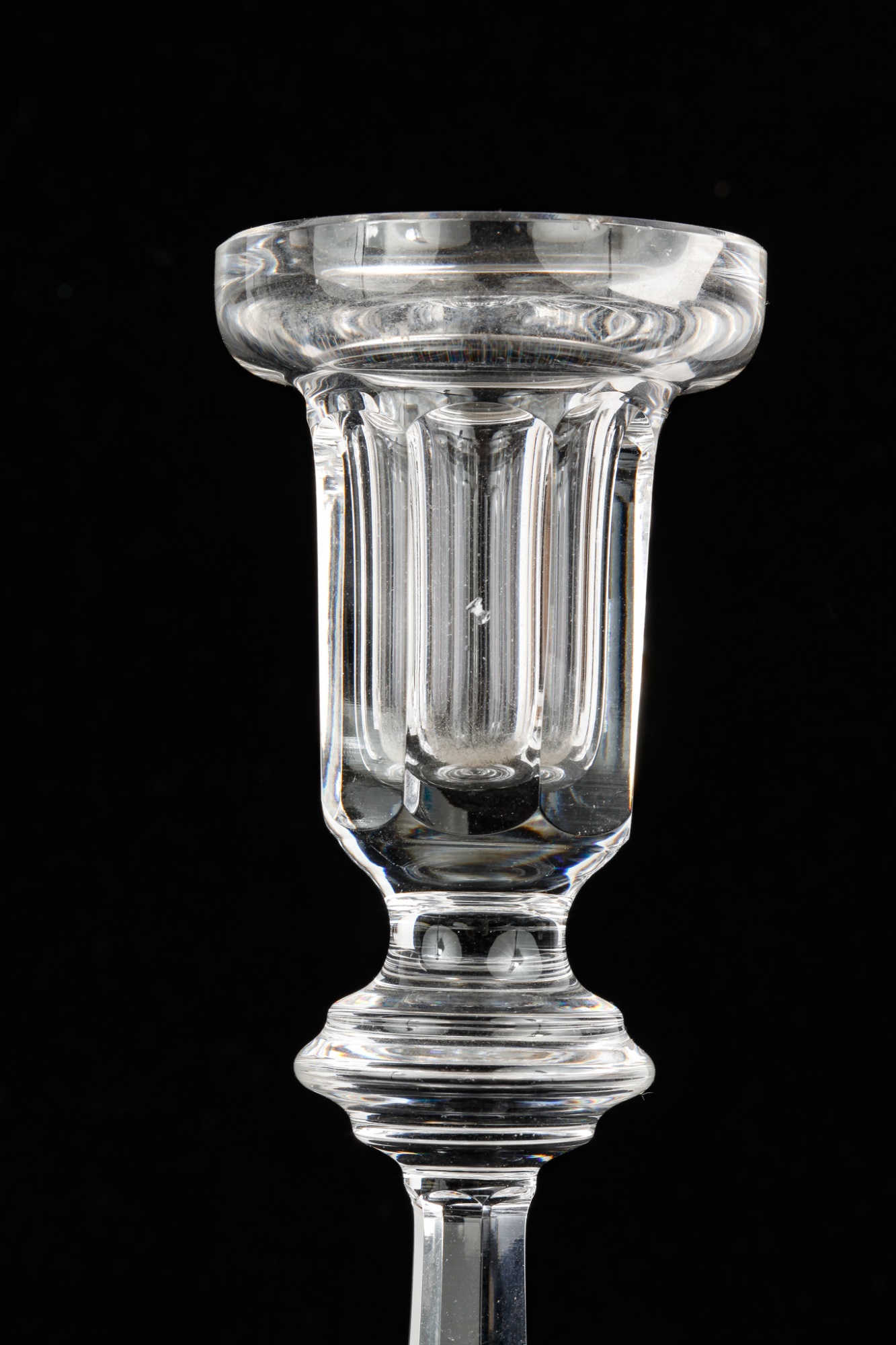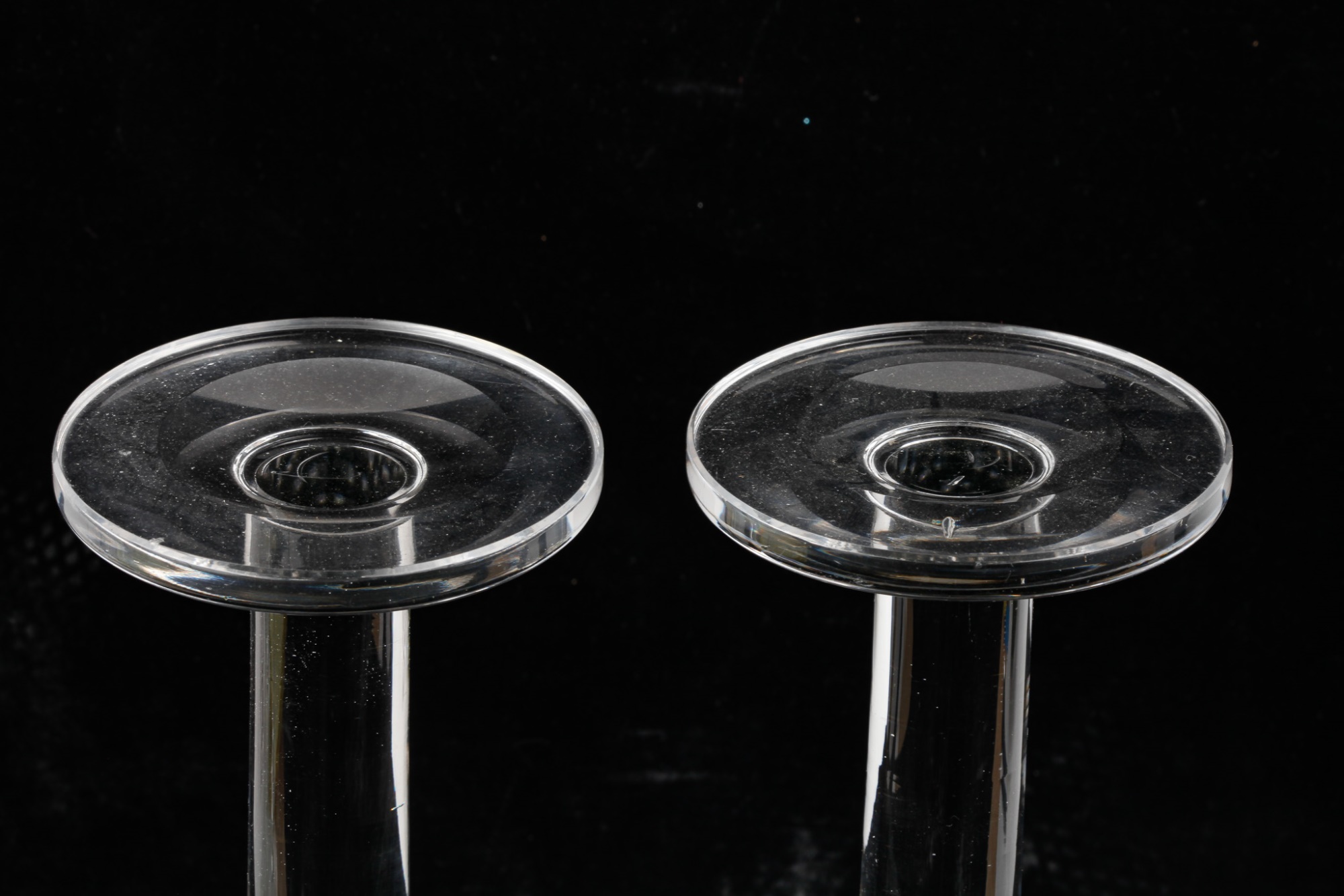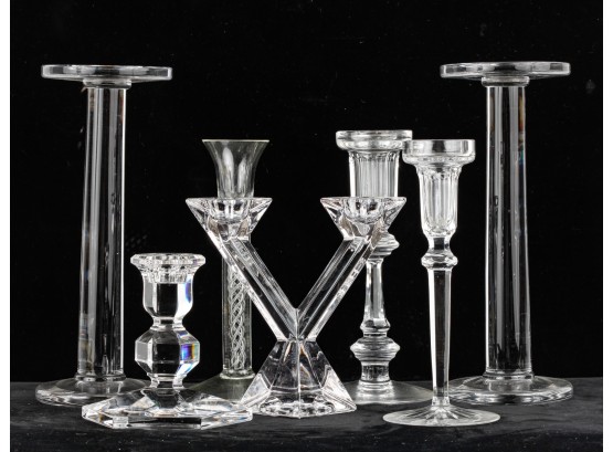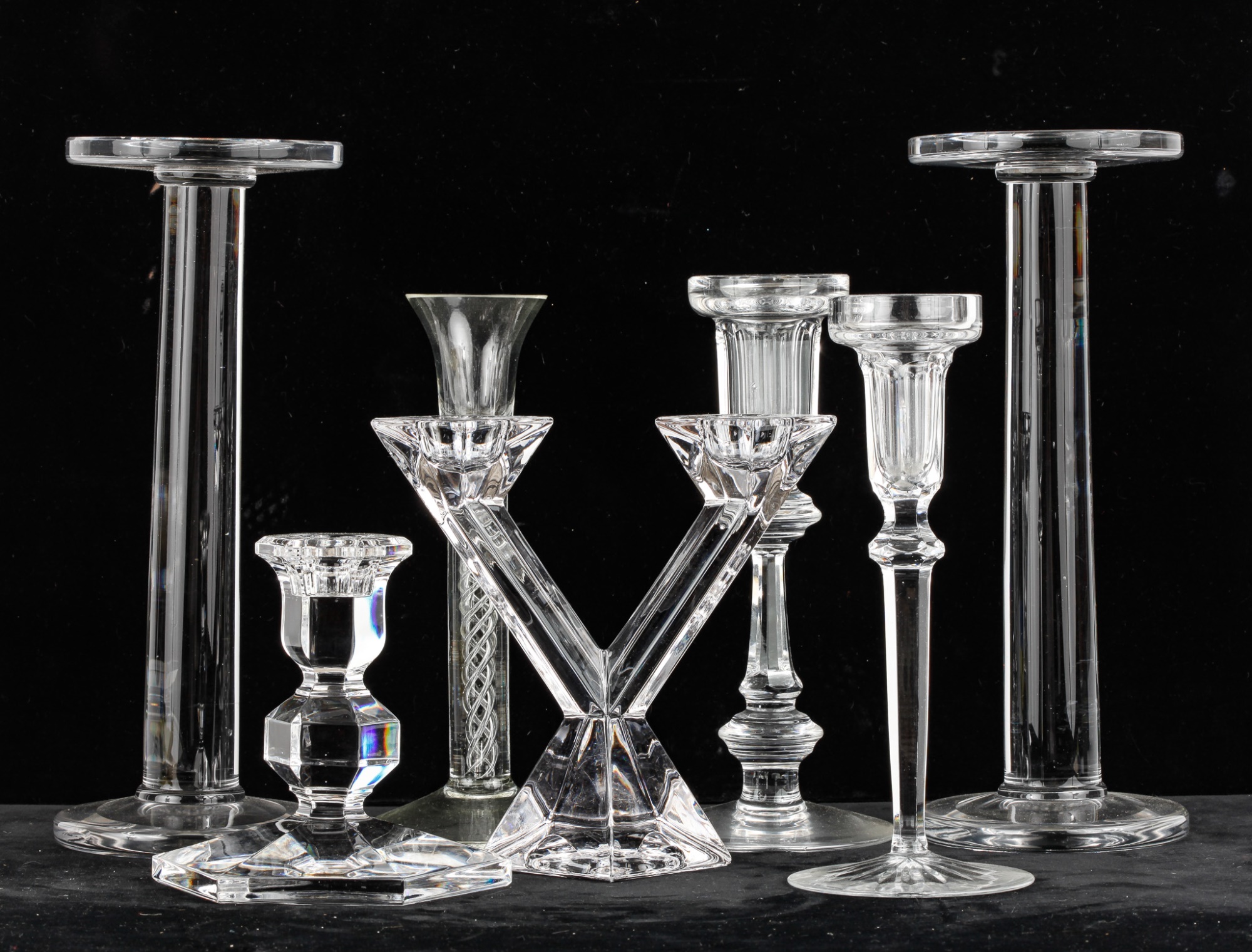 Including five candlesticks, one Waterford, one Val St Lambert, one Villeroy & Boch, and a pair of spools. Spools 10 1/4"