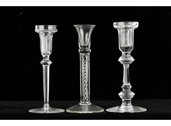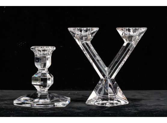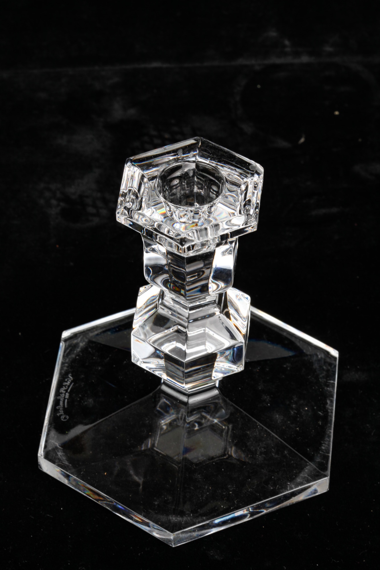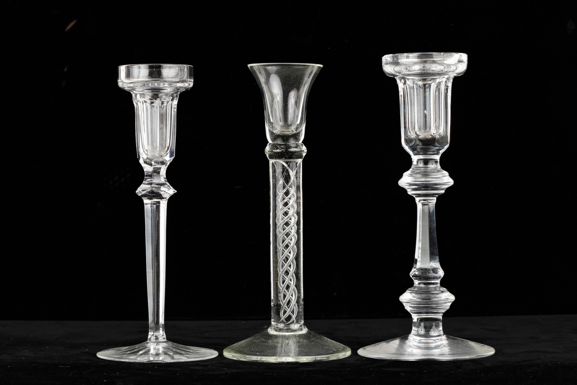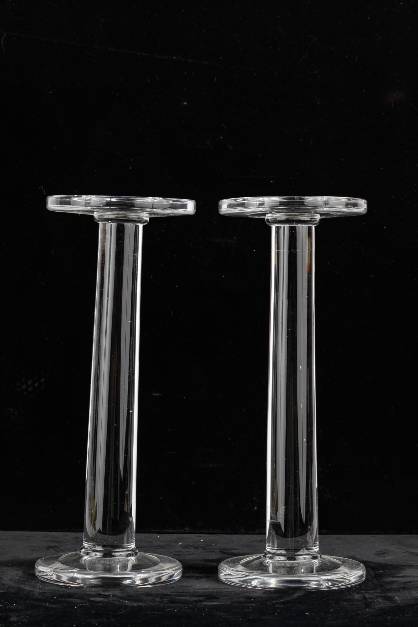 Including five candlesticks, one Waterford, one Val St Lambert, one Villeroy & Boch, and a pair of spools. Spools 10 1/4"