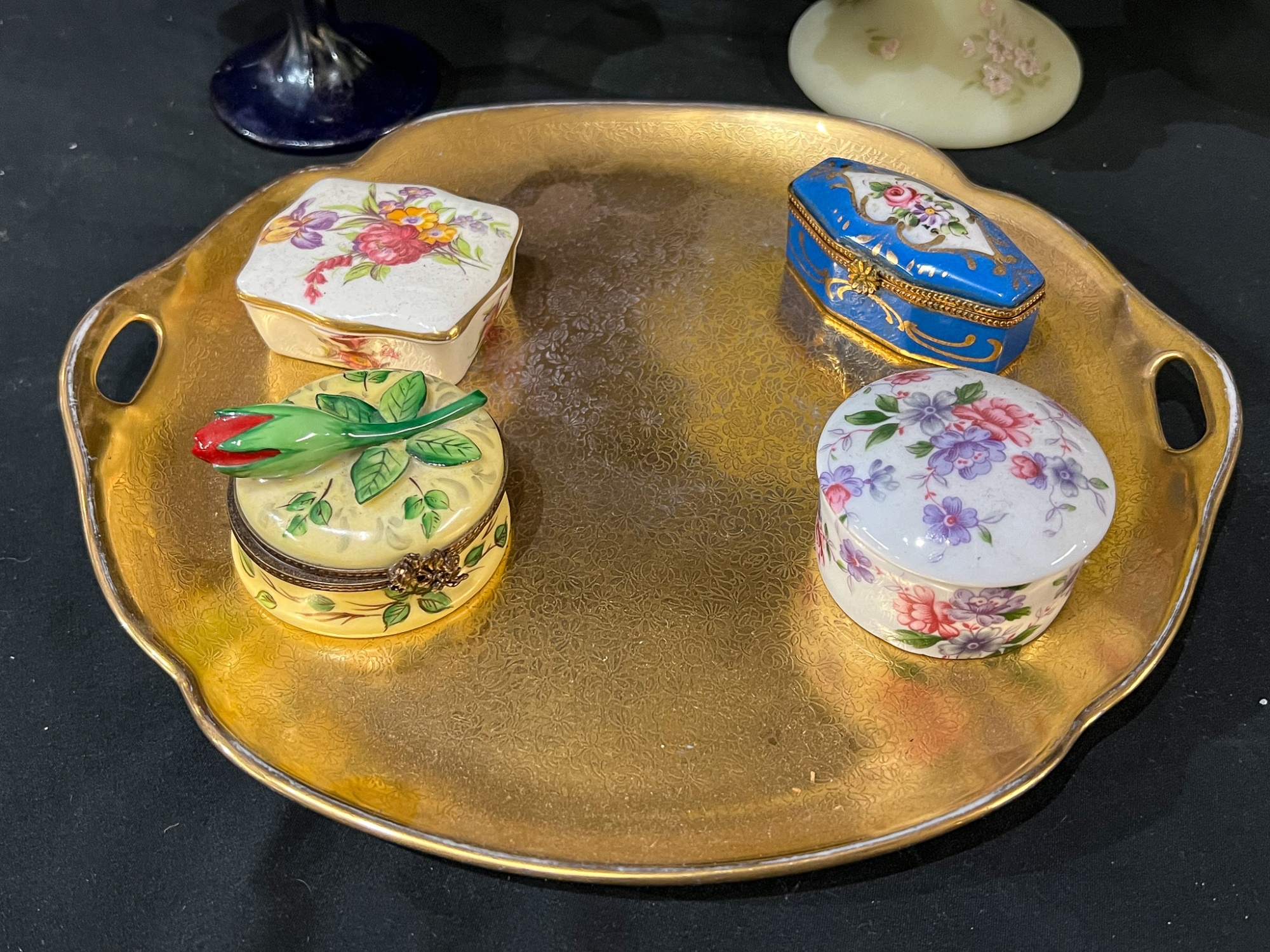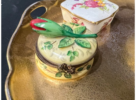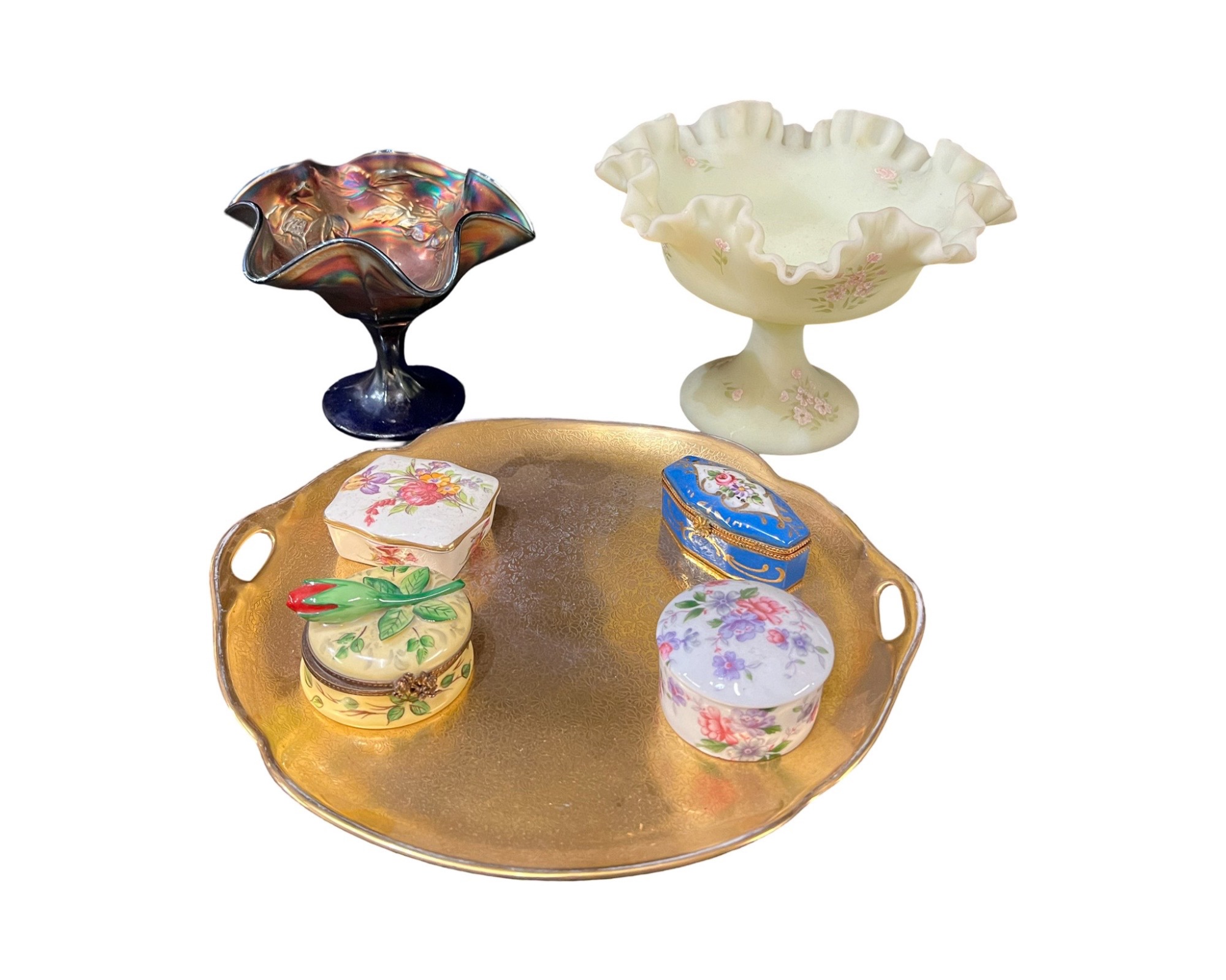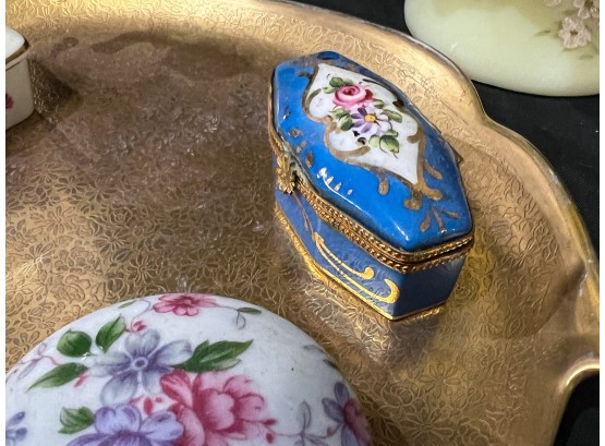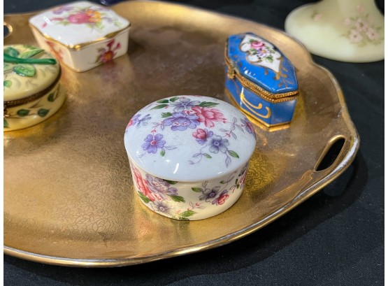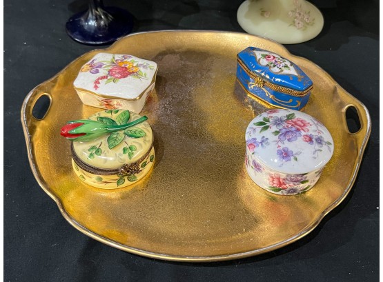 Compotes, boxes and Pickard gilt handles server