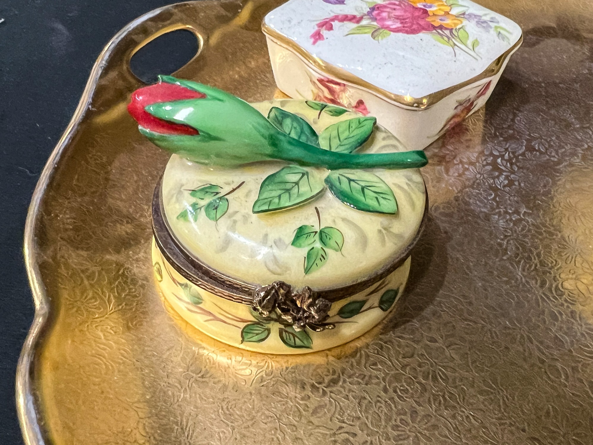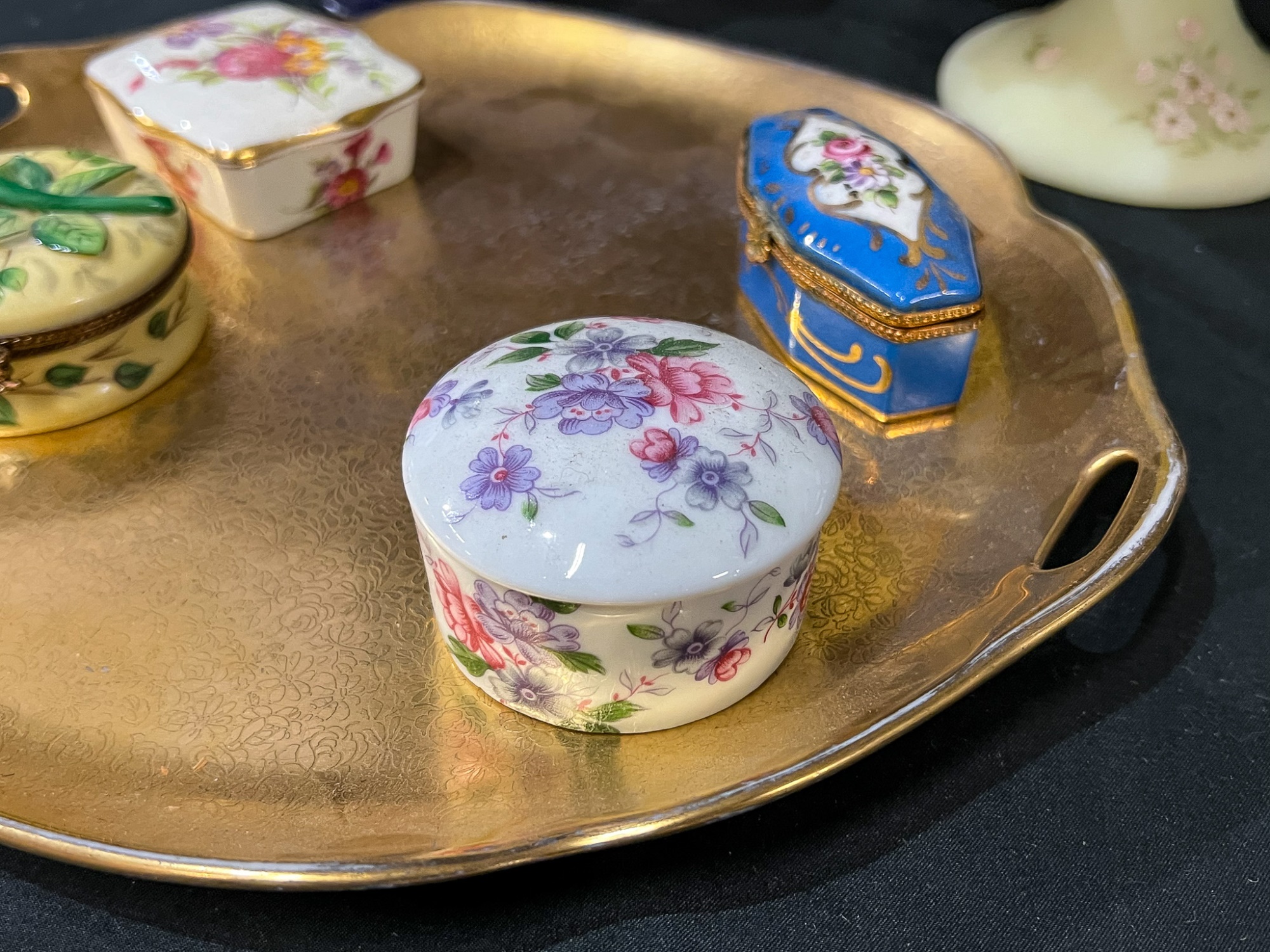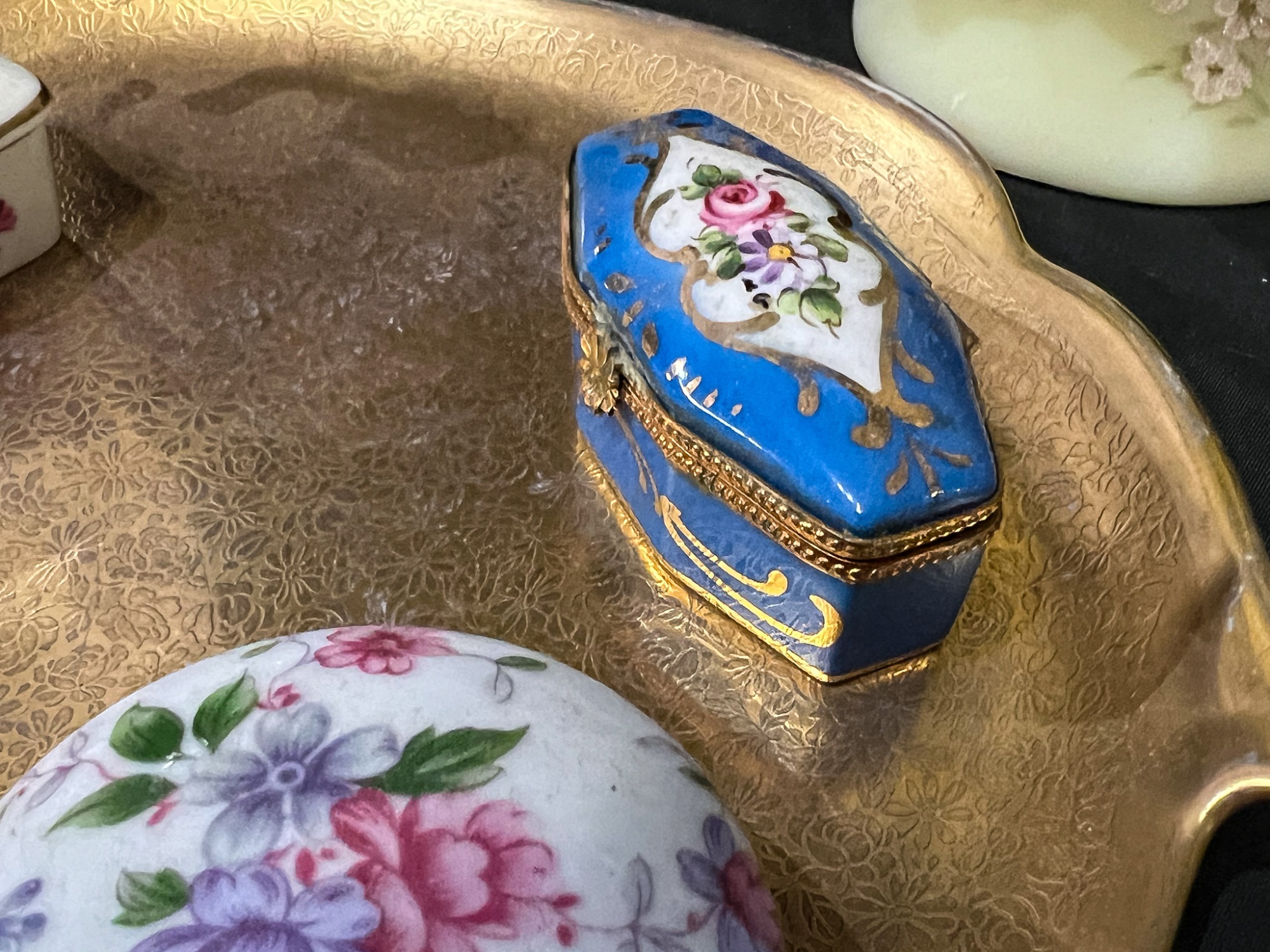 Compotes, boxes and Pickard gilt handles server