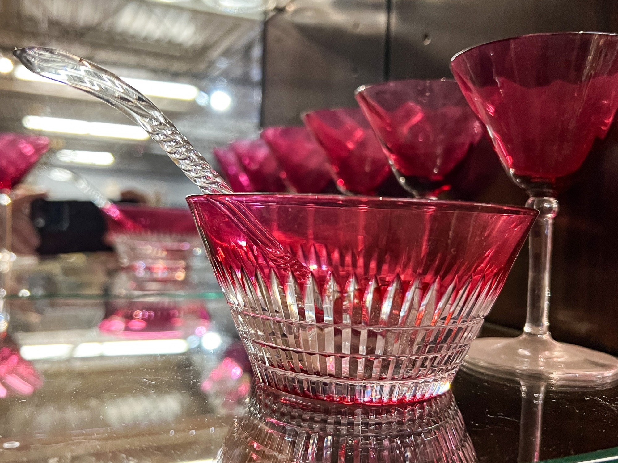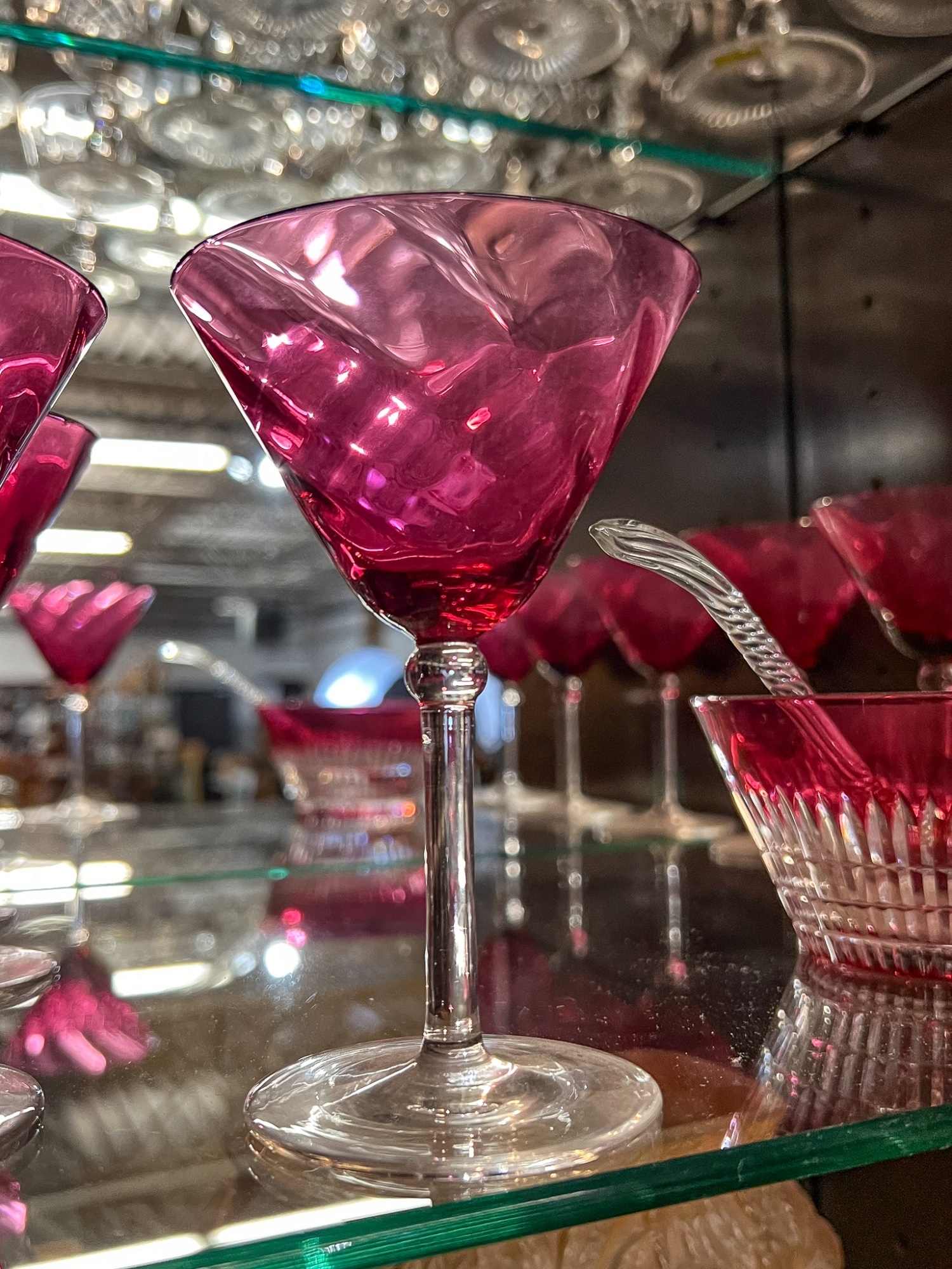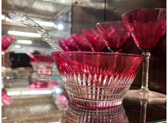 Along with cut to clear bowl with ladle. Stems 5" x 3 1/4" dia. Bowl 2 1/2" x 4 3/4" dia