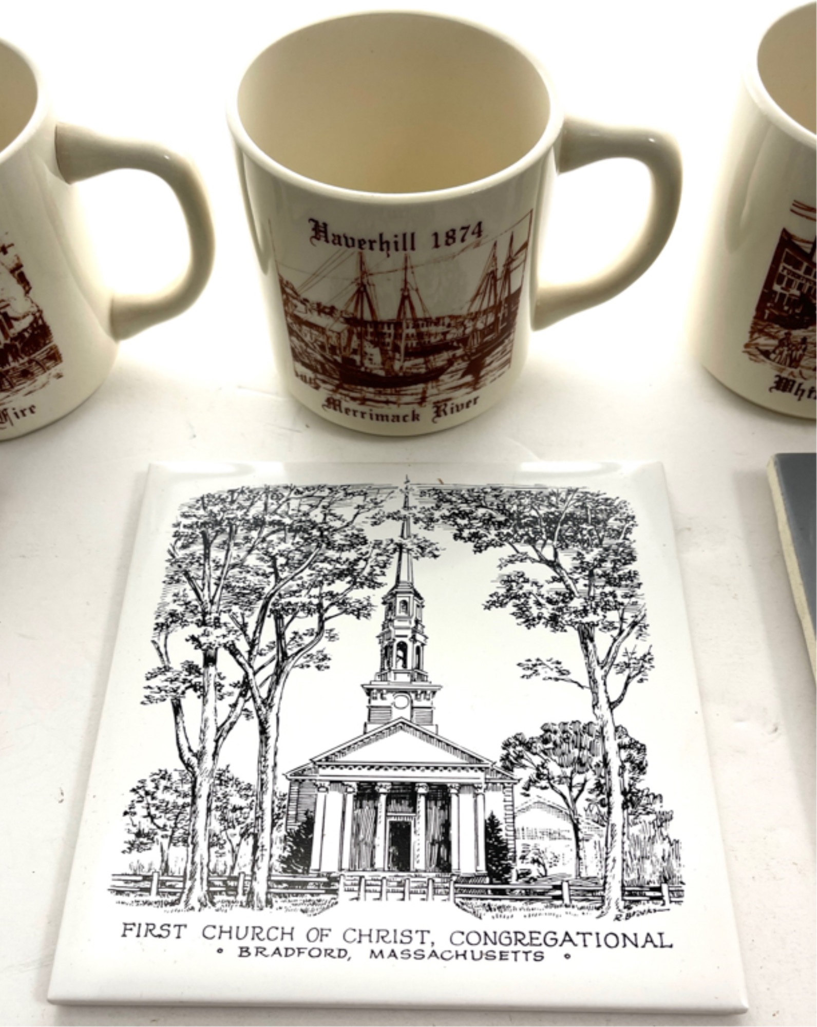 Including (3) tiles and (5) mugs. Tiles 6" square