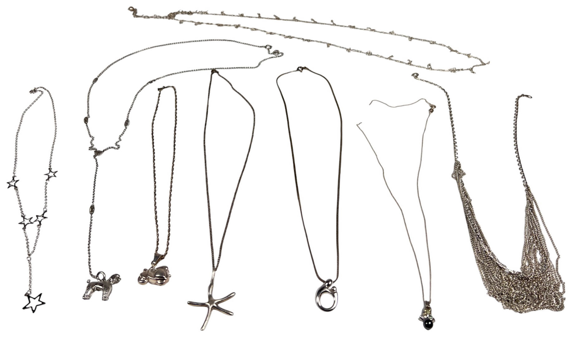 All marked 925/sterling. Longest chain 28". 2.15 OZT overall Condition: One chain broken