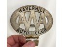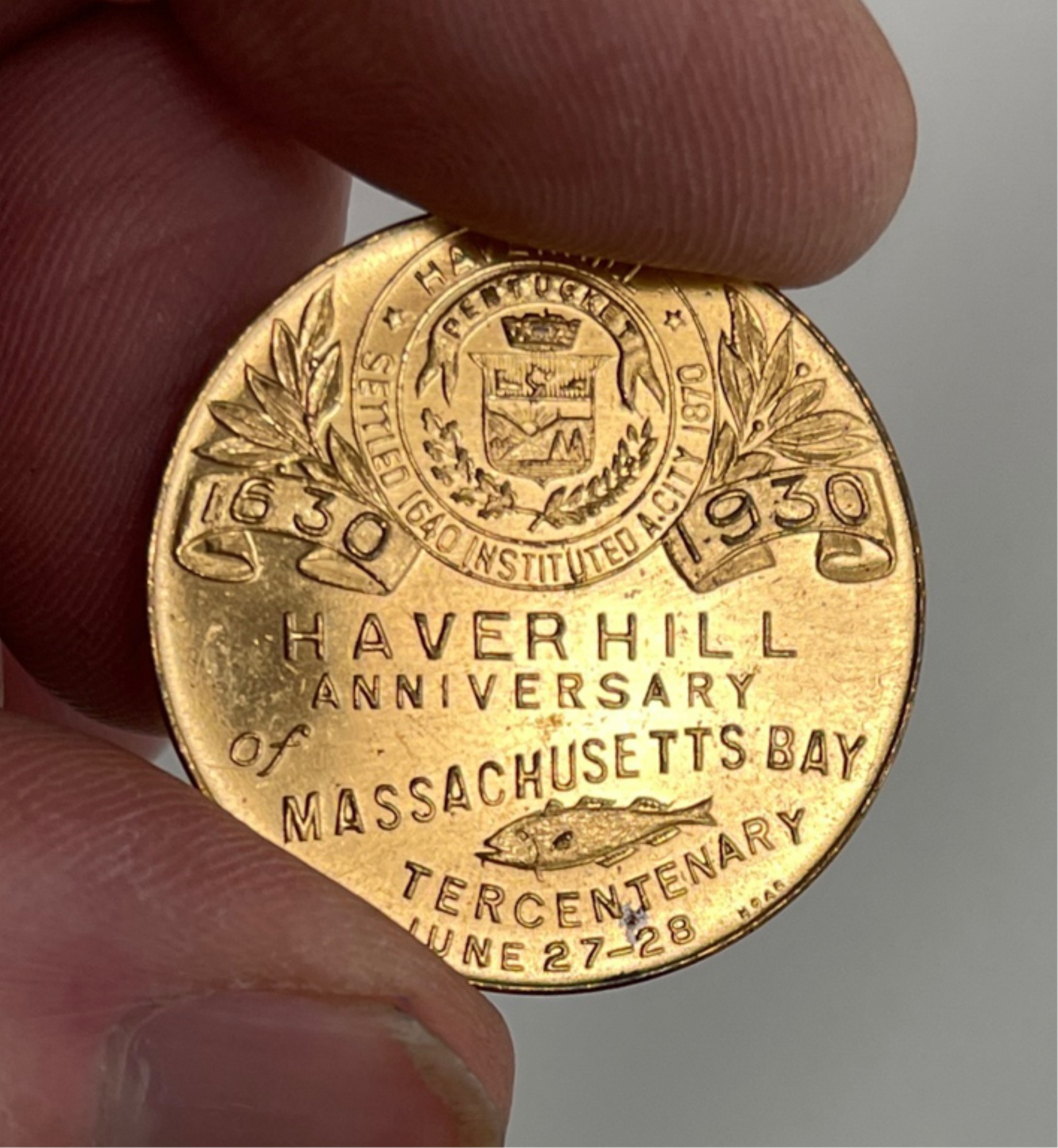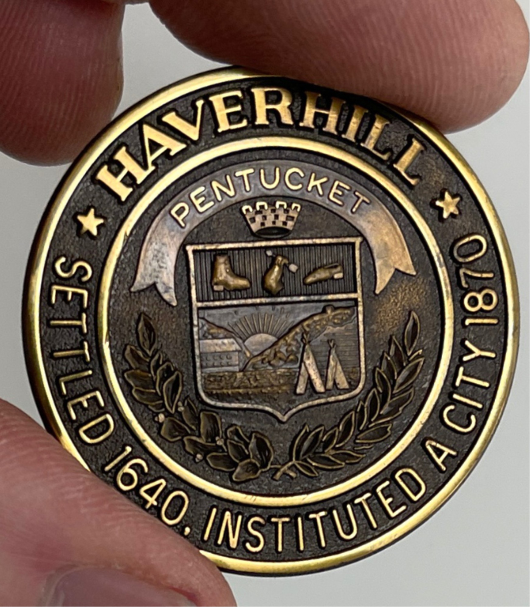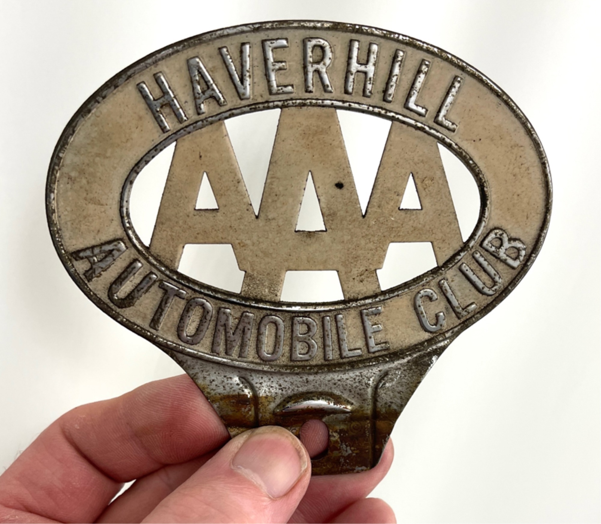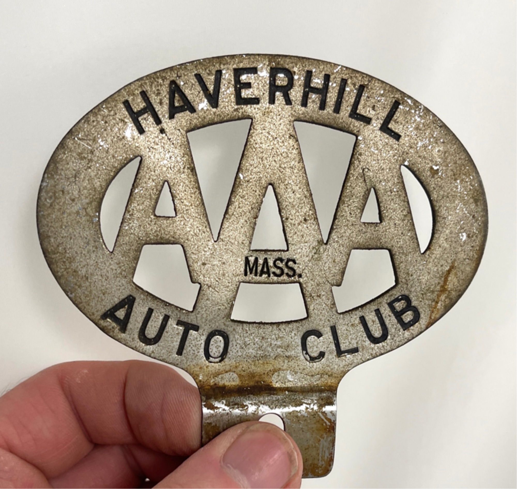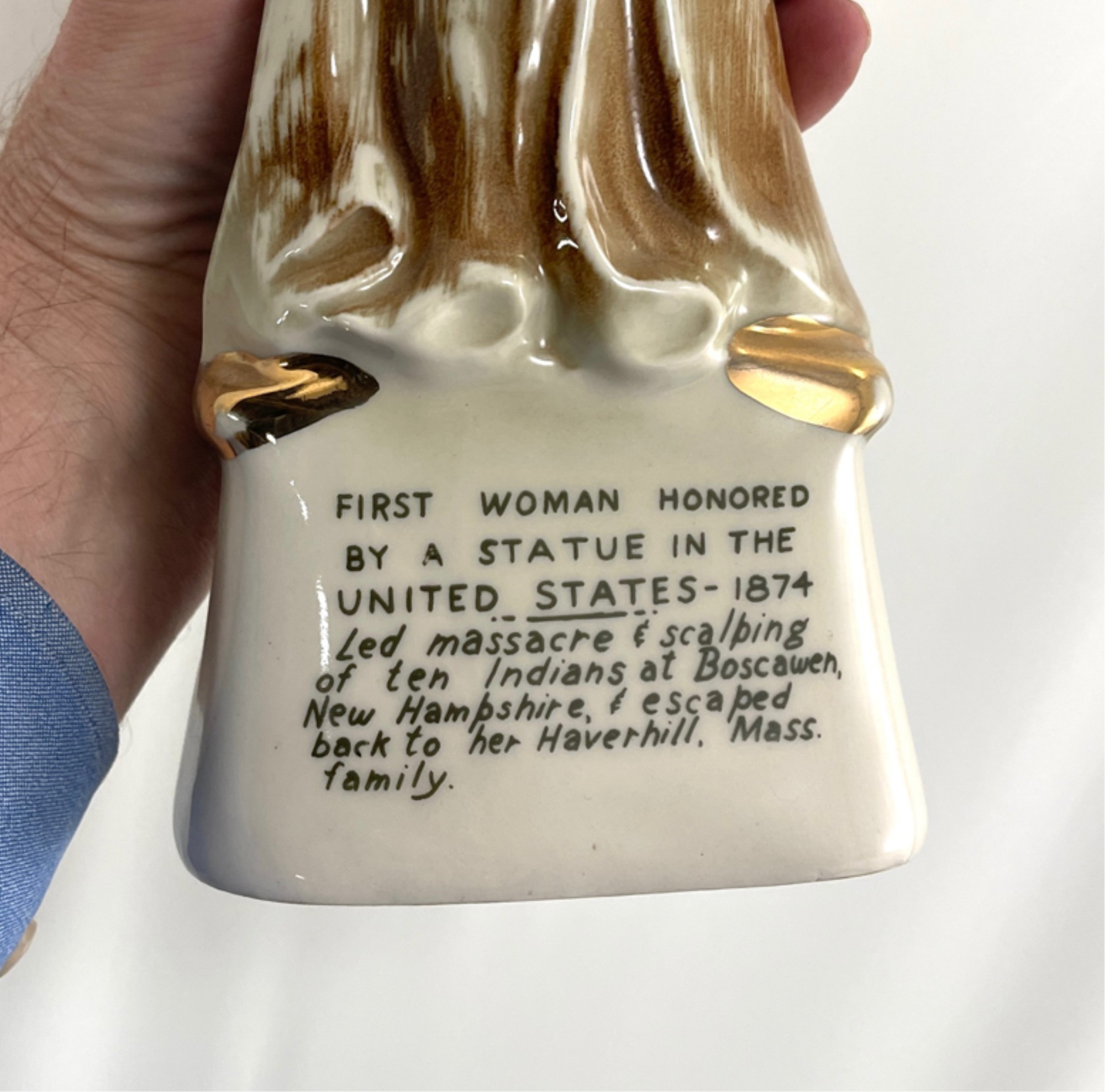 Including Hannah Duston Jim Beam bottle, (2) Auto Club car emblems, (2) medals, G.W. Haverhill Savings Bank (no key with pennies inside), etc. Bottle 14 1/2" x 4" x 3"