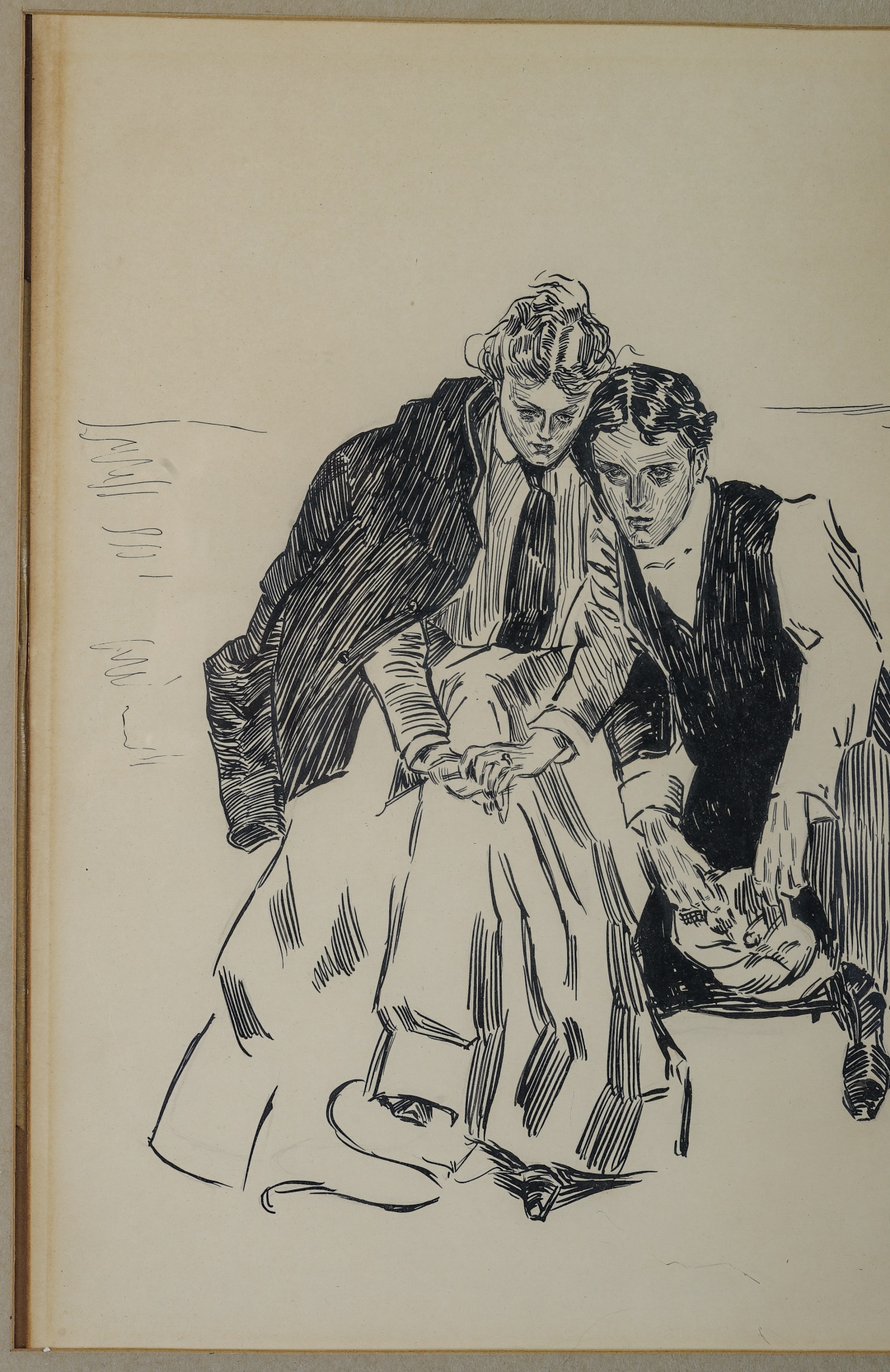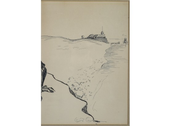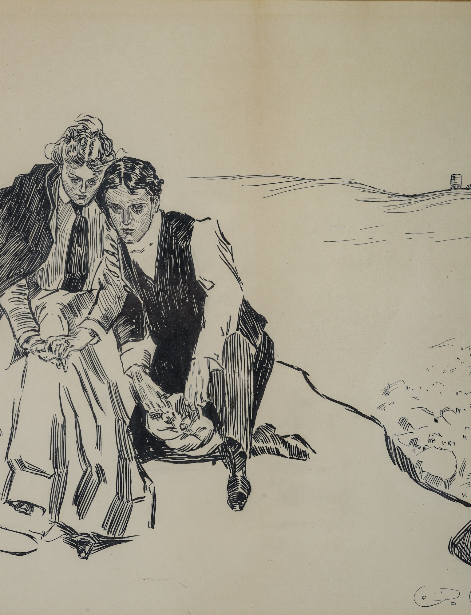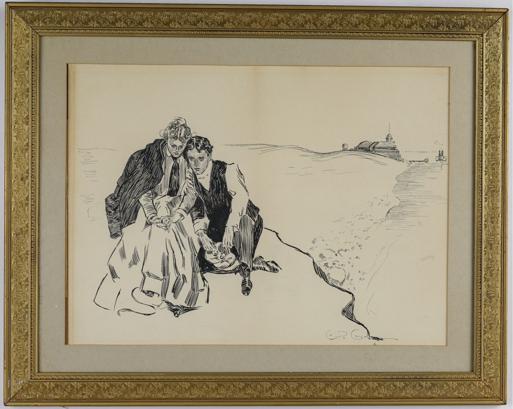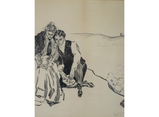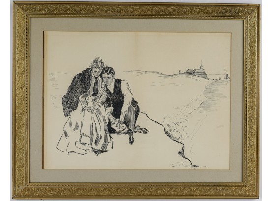 Original drawing. "The Last Day of Summer". In a gold frame 23 1/2 x 29 1/2 inches overall.