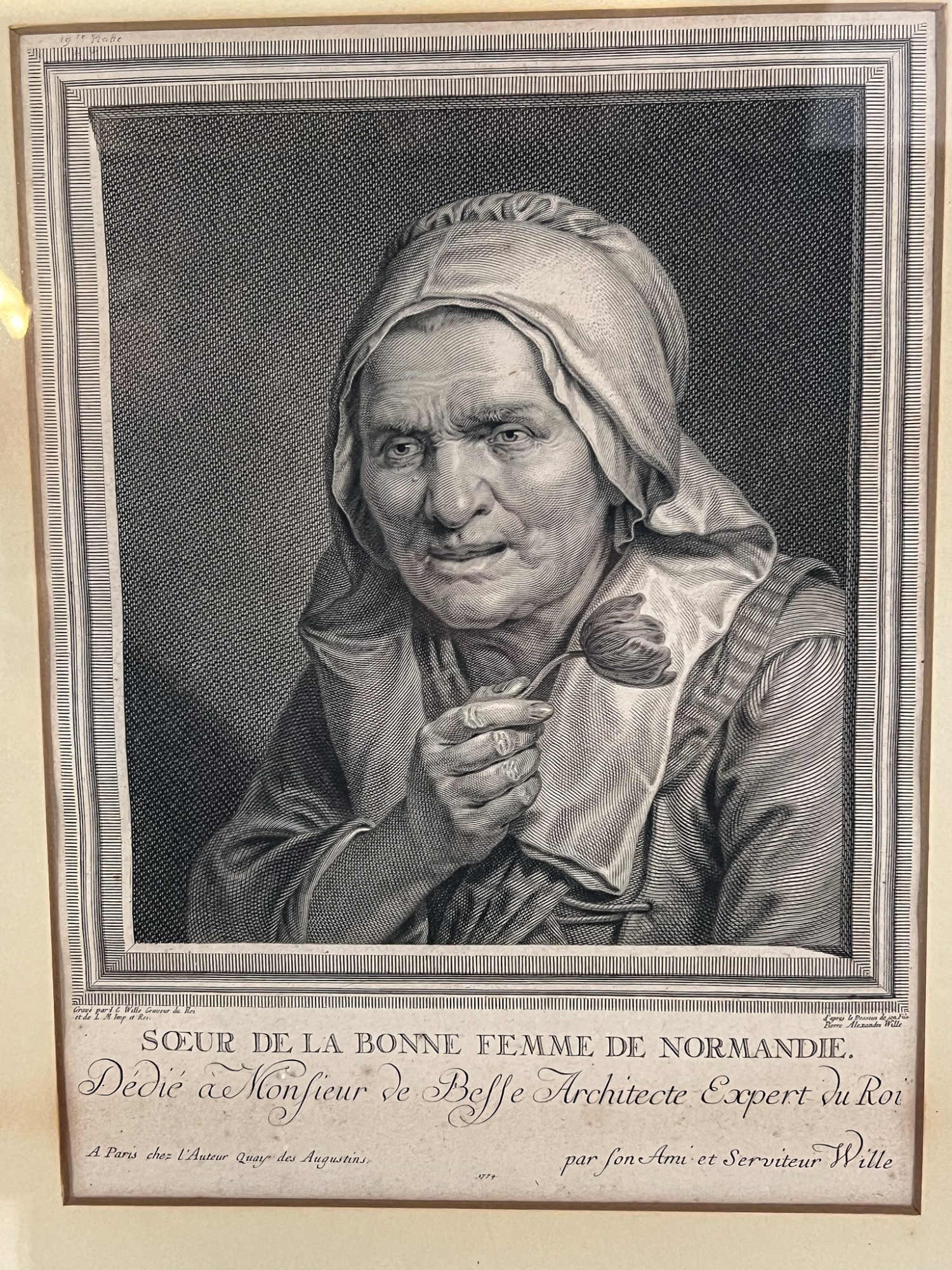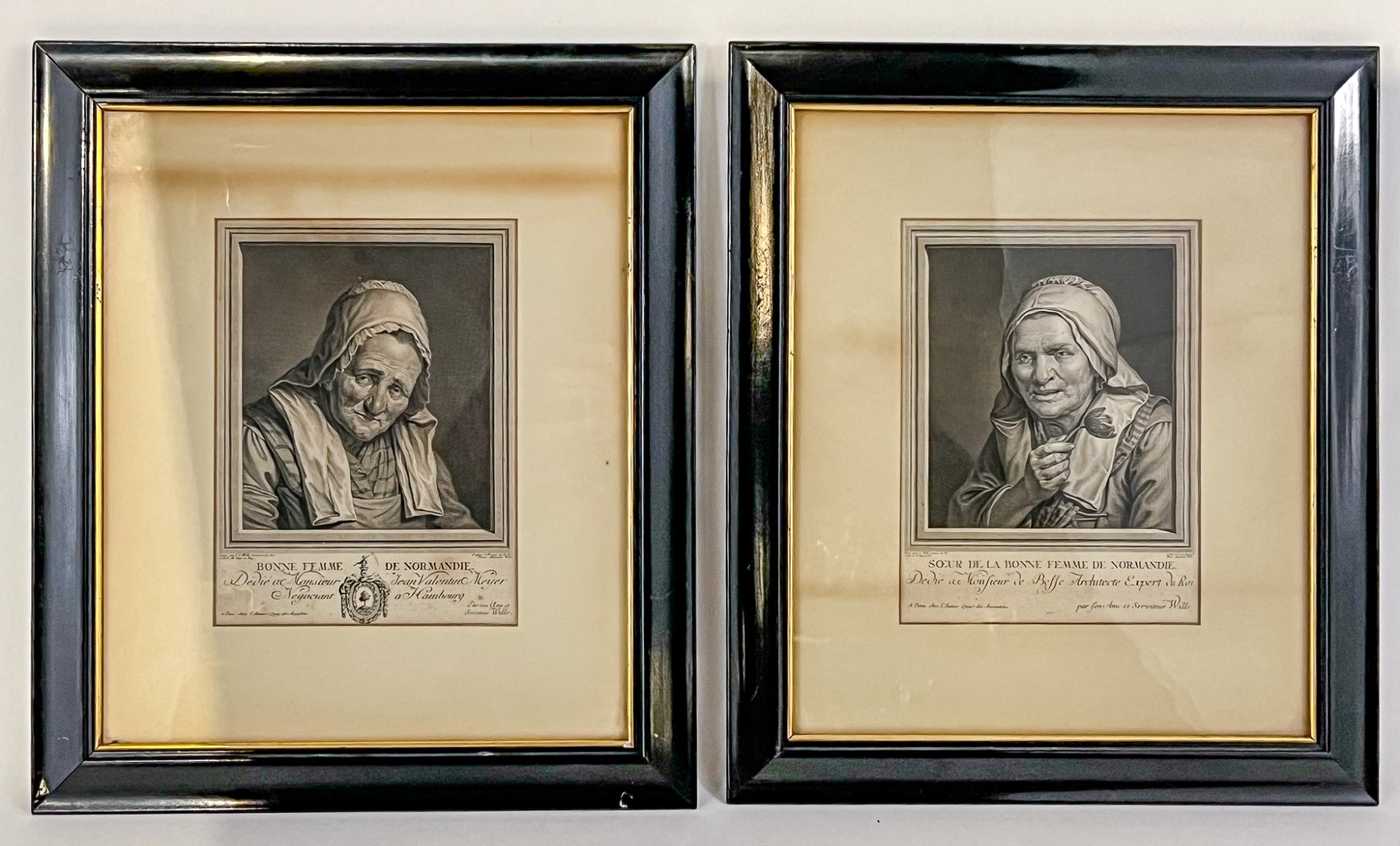 Bonne Femme De Normandie and Soeur De La Bonne Femme De Normandie c1774. In later frames. 18 1/2" x 16" framed