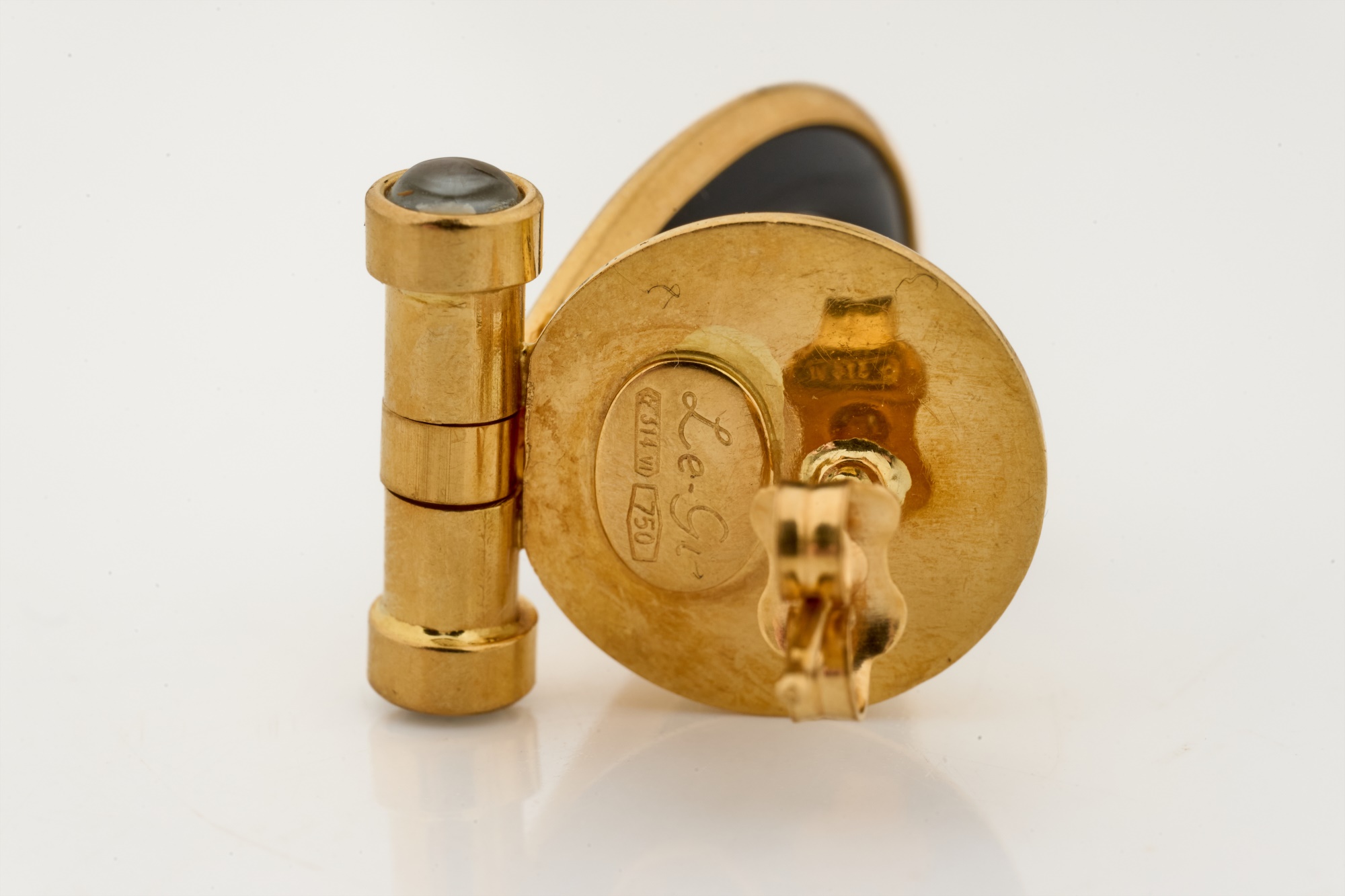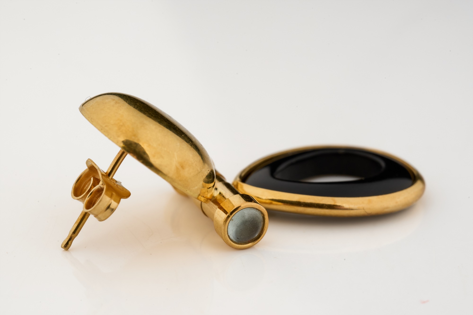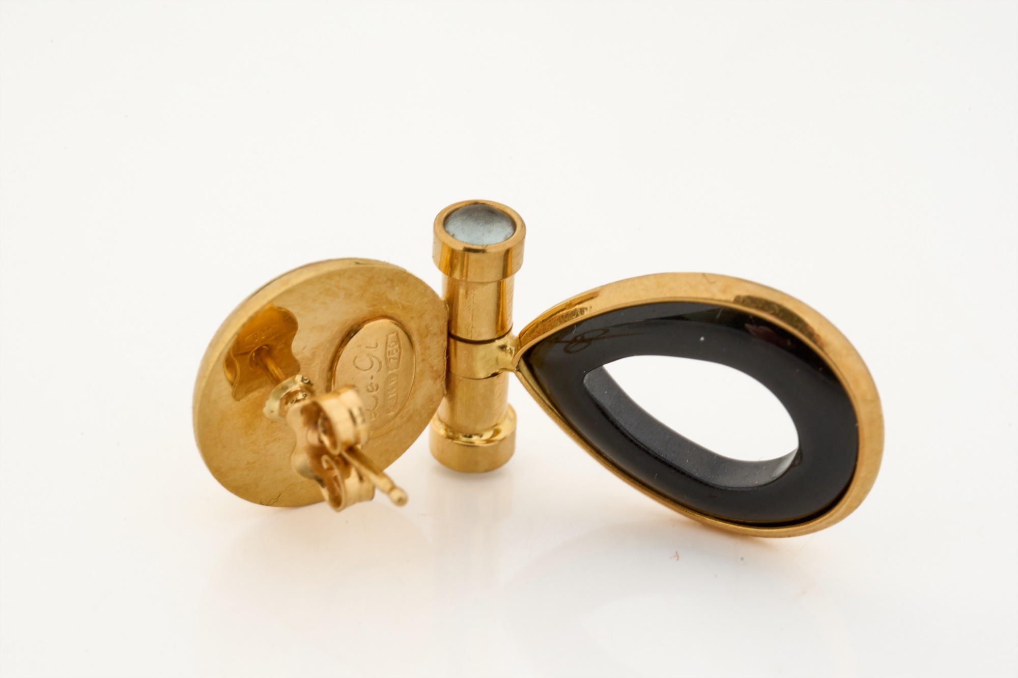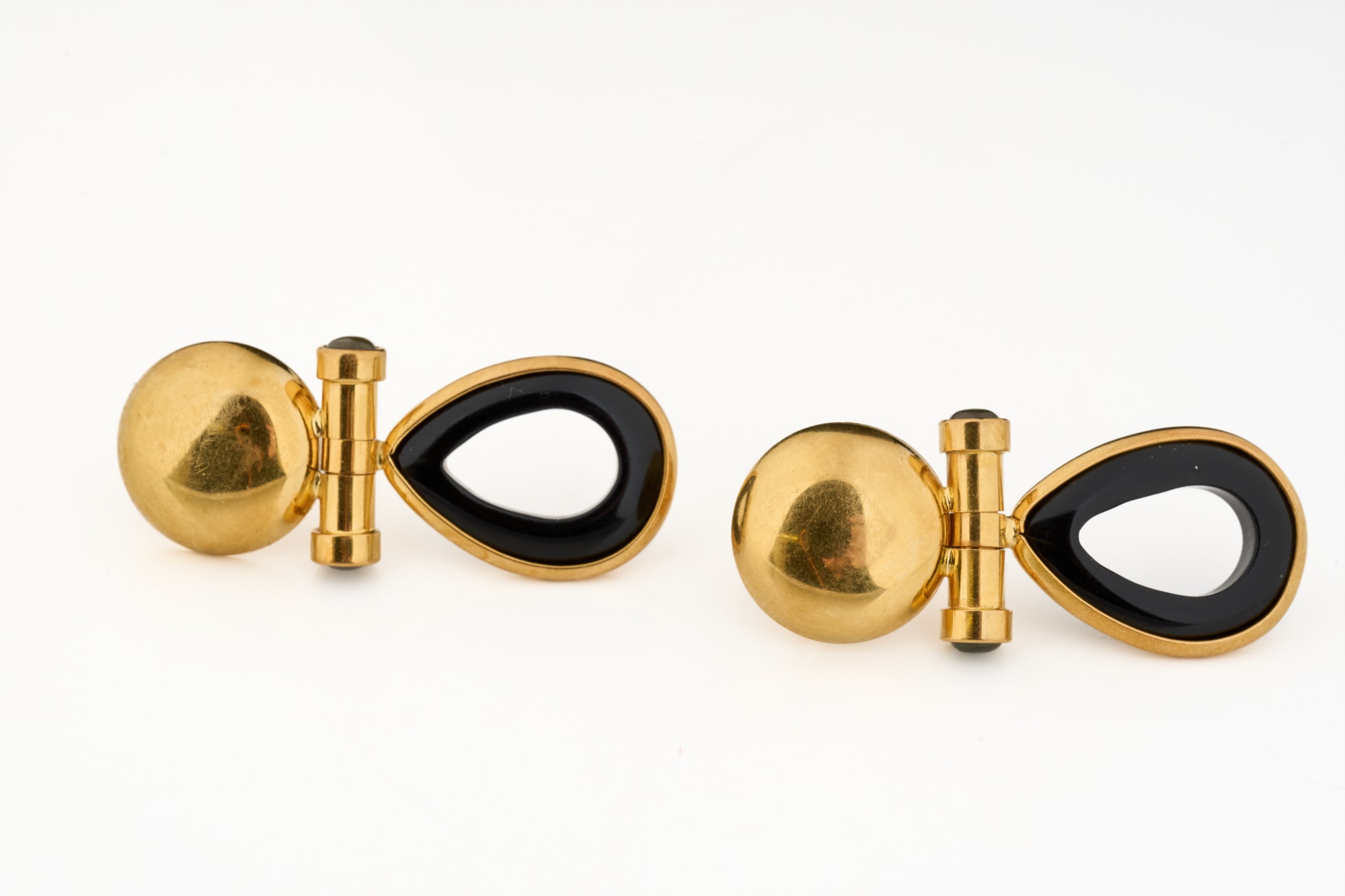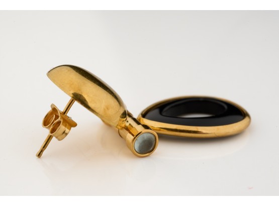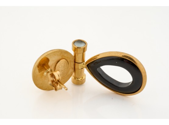 Set with hinged onyx teardrops. 1.5 inches. 6.9 dwt (gross weight) Condition: Good