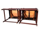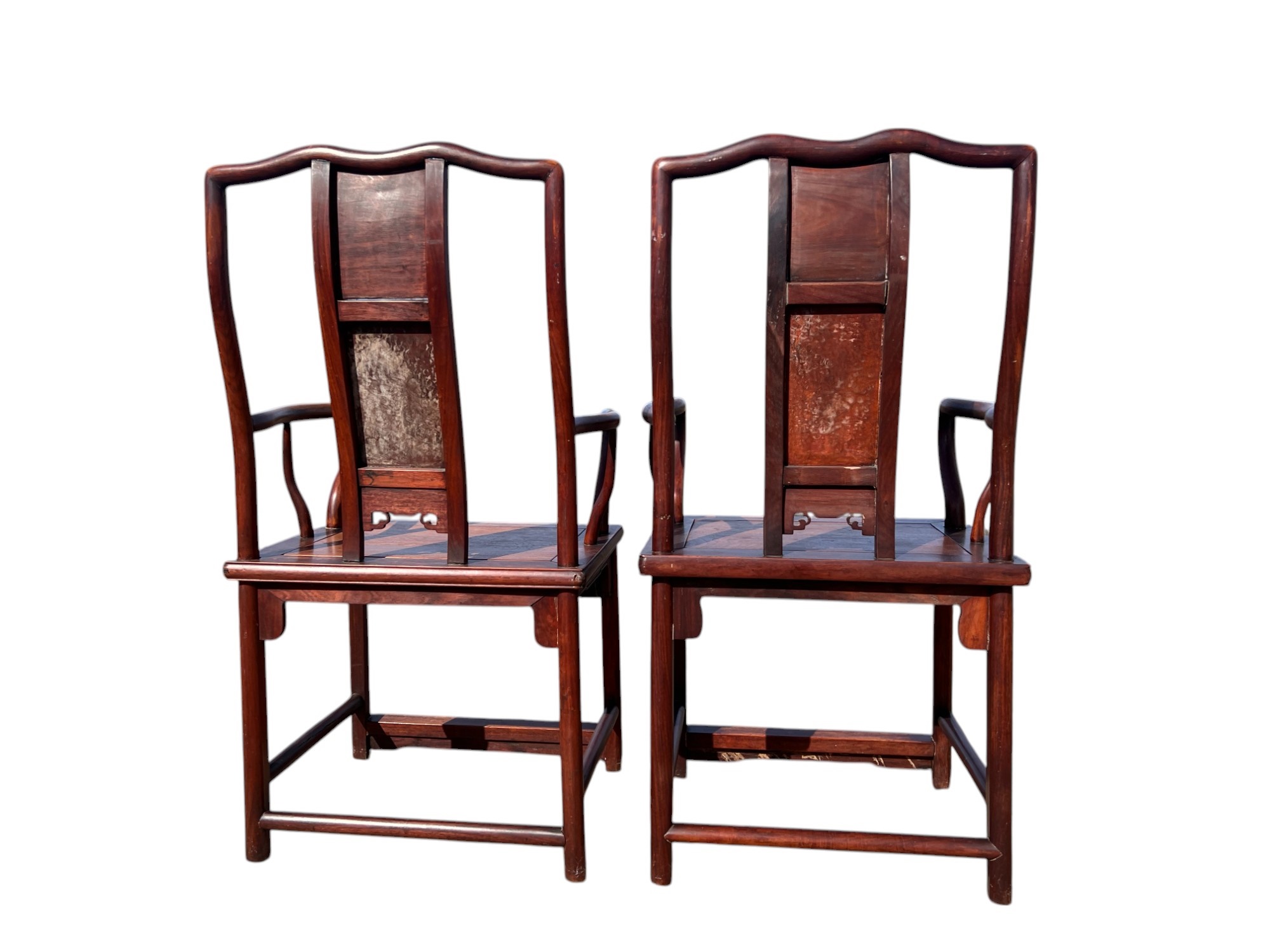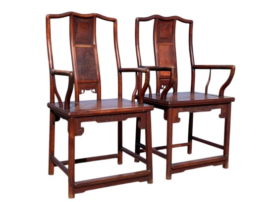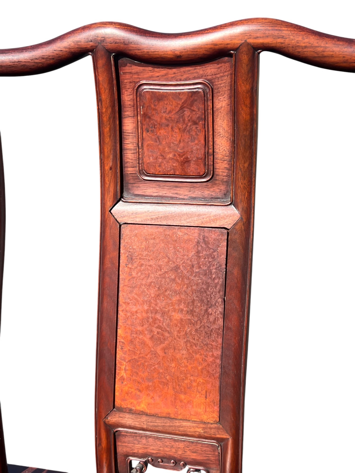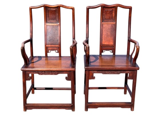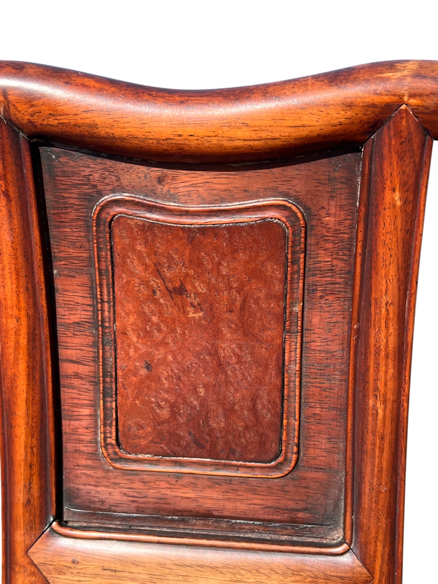 With burl wood panel backs. 42" x 21" x 17 1/2" Condition: Repairs to arm on one. Fortified seats, see photos Temp No 6514