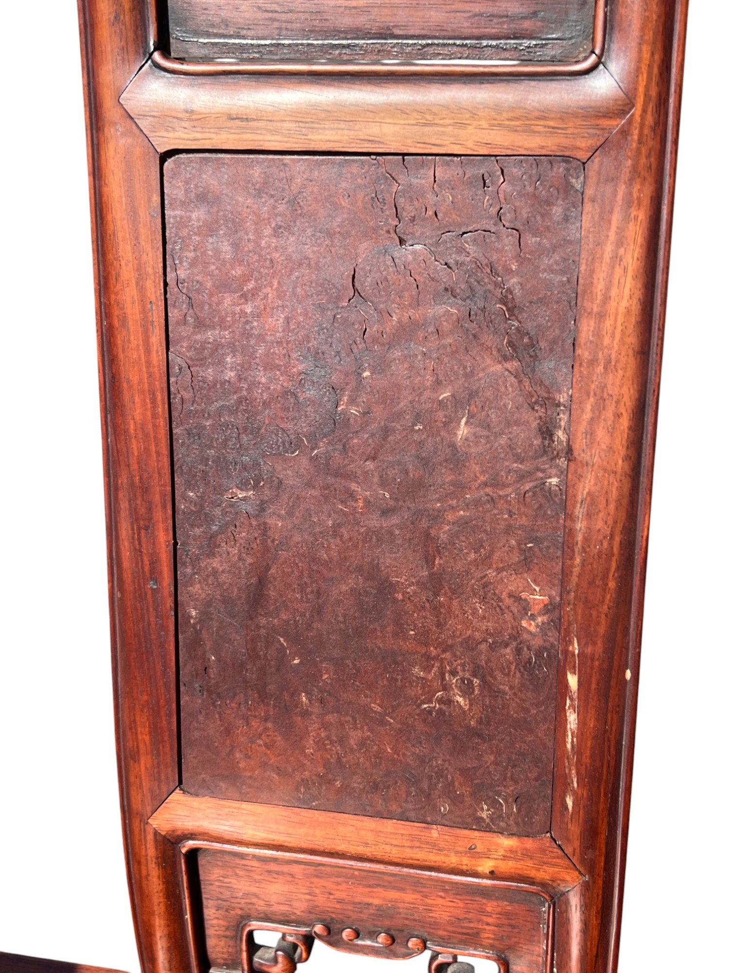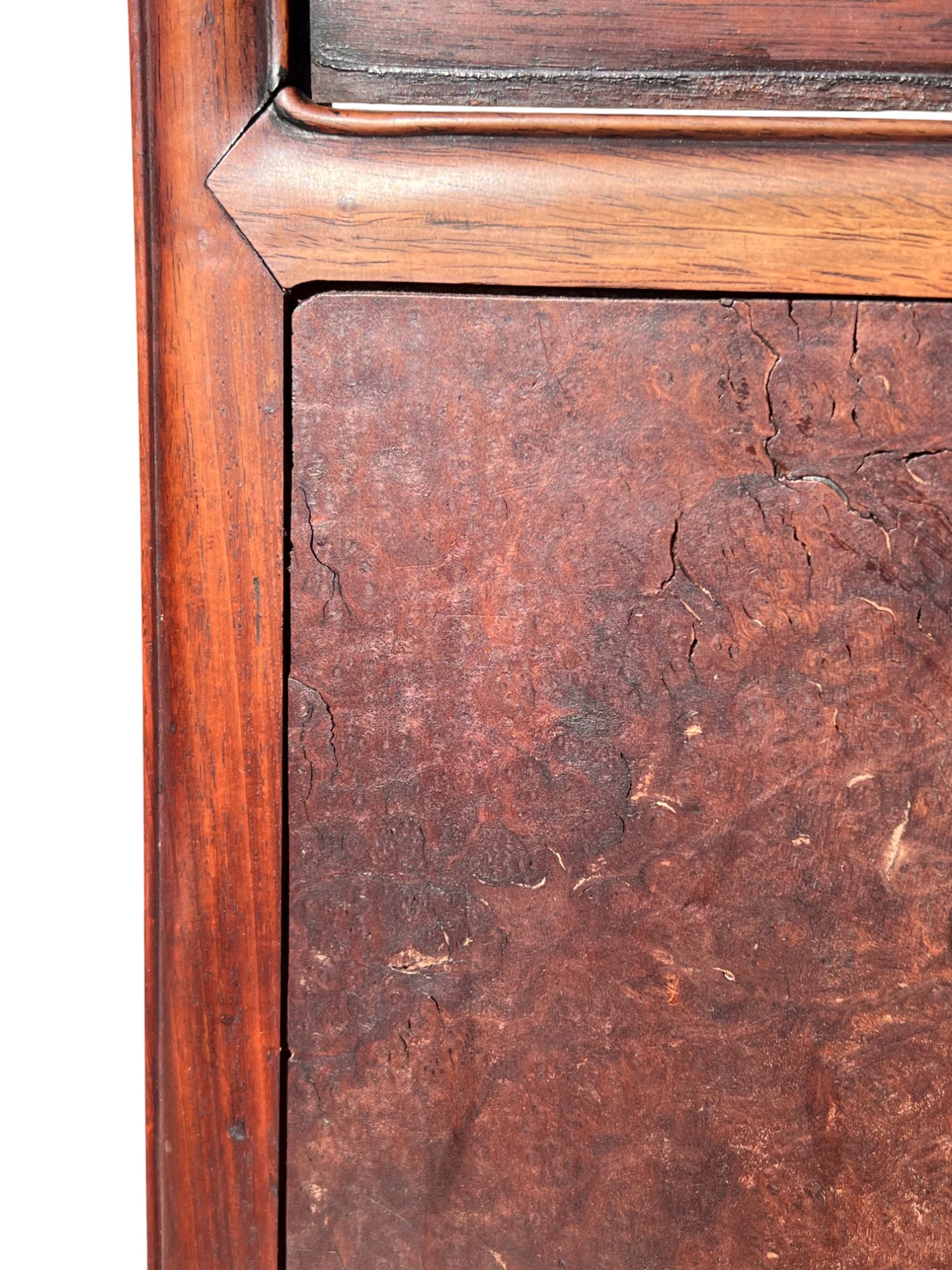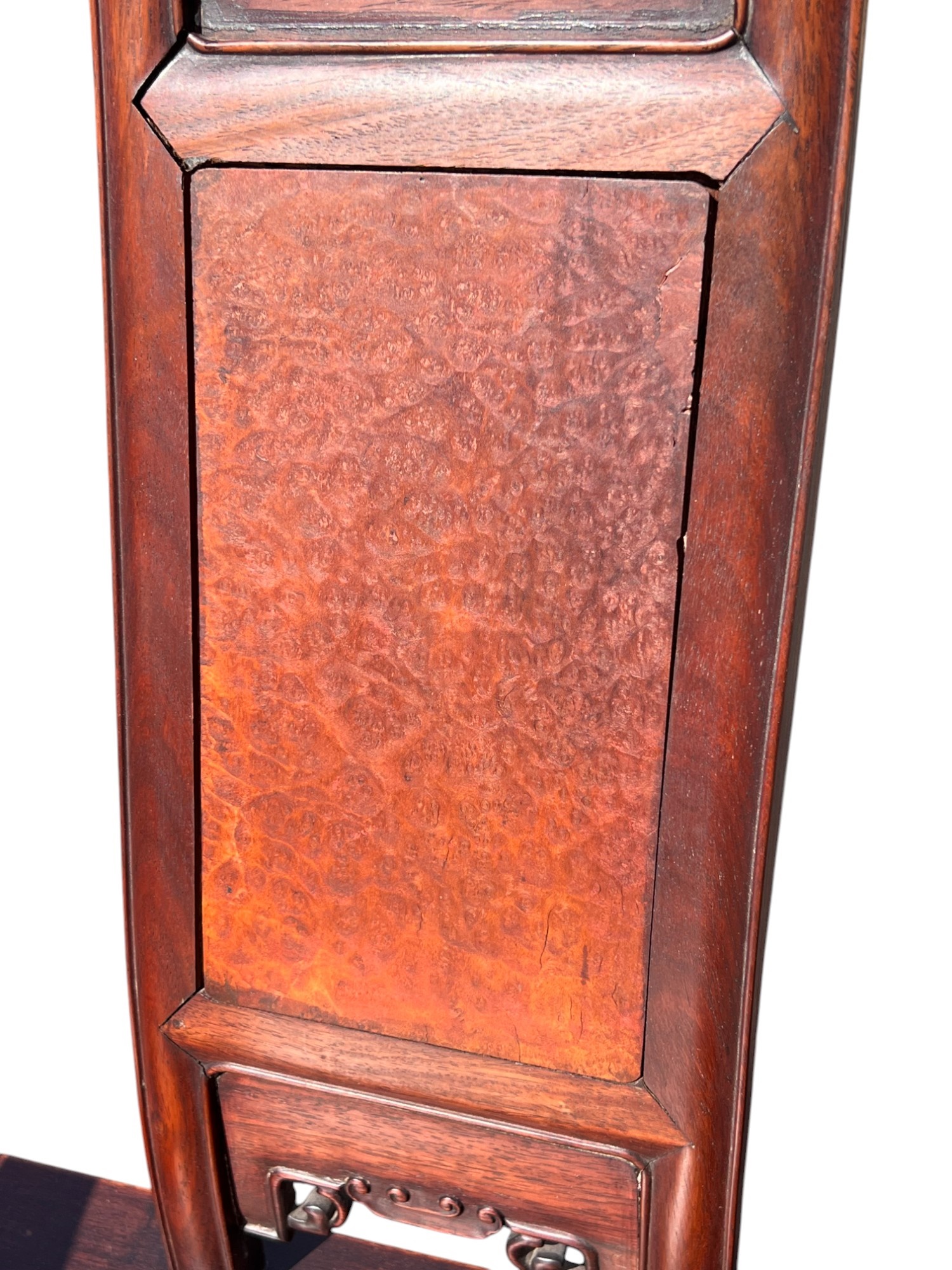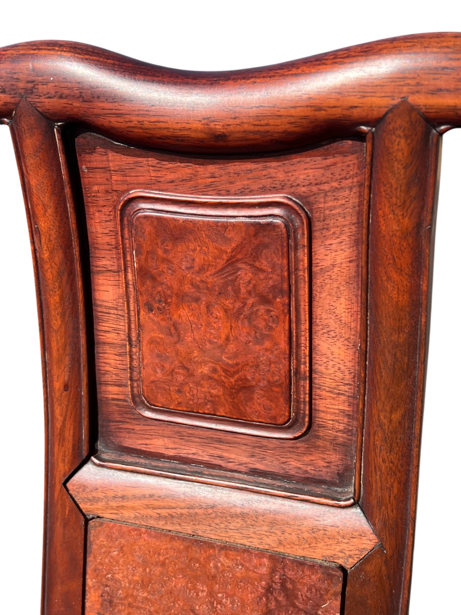 With burl wood panel backs. 42" x 21" x 17 1/2" Condition: Repairs to arm on one. Fortified seats, see photos Temp No 6514