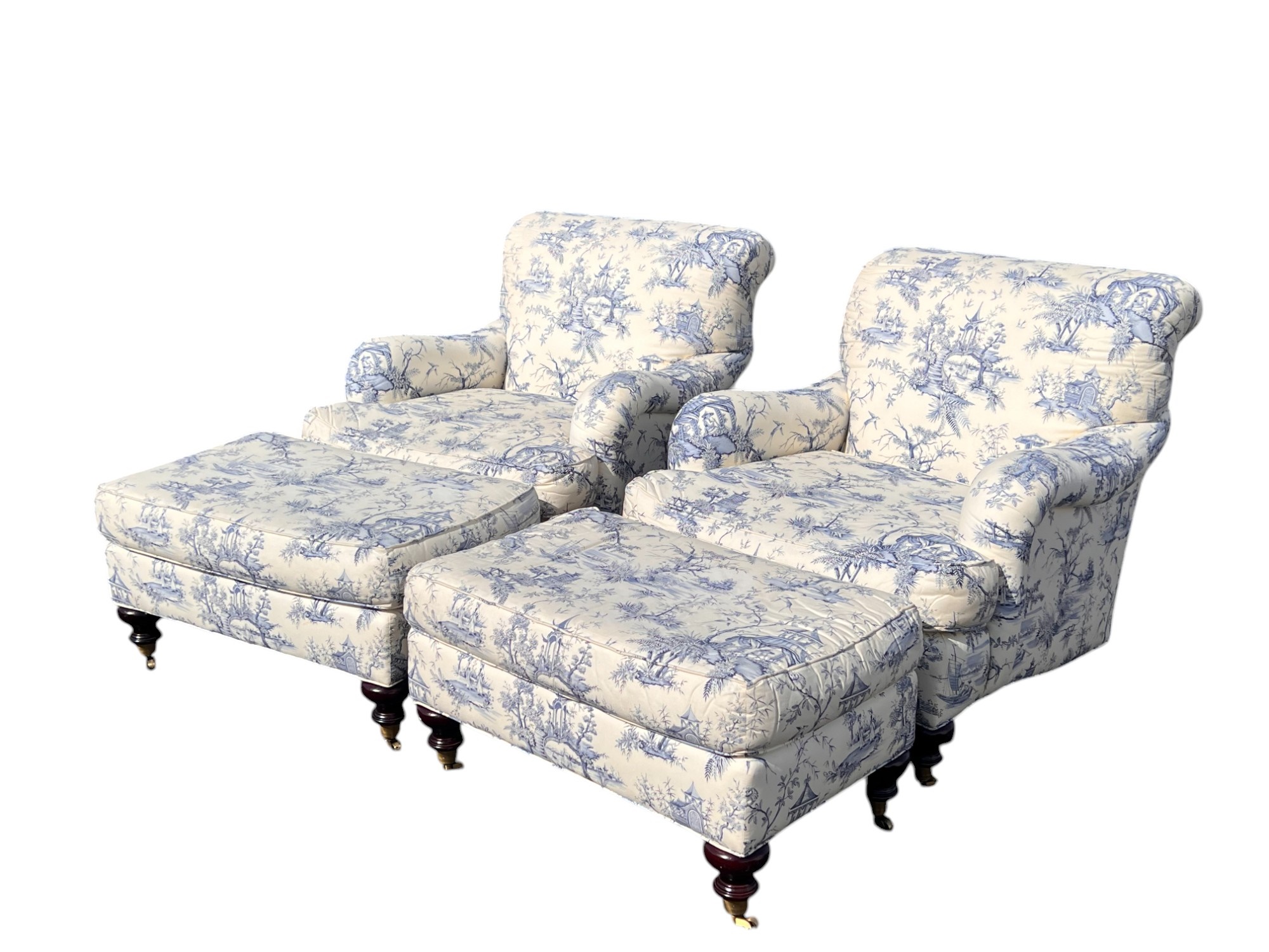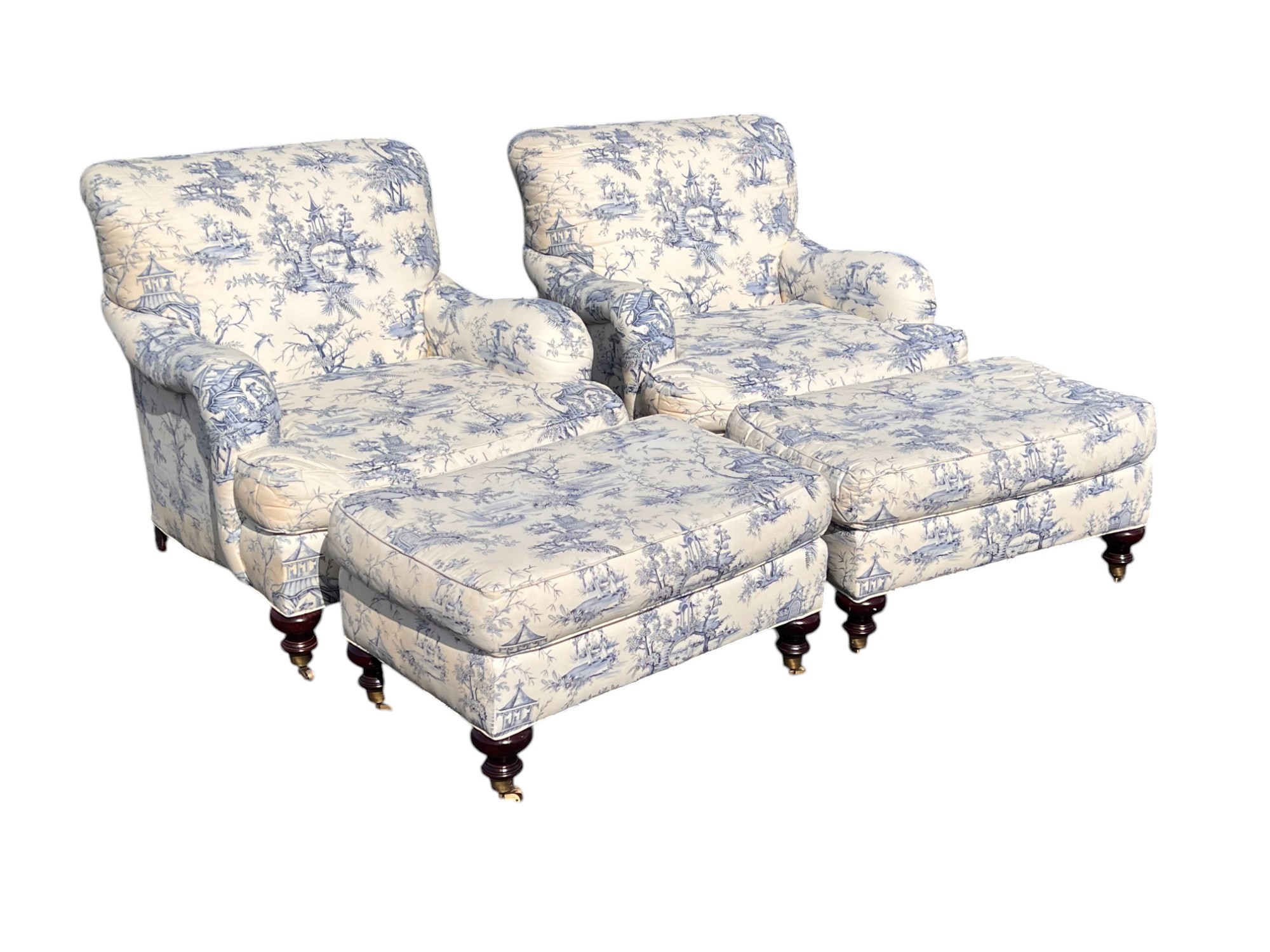 With matching ottoman. Chairs 33" x 33" x 39" Condition: Scattered staining/discoloration, see photos Temp No 6516
