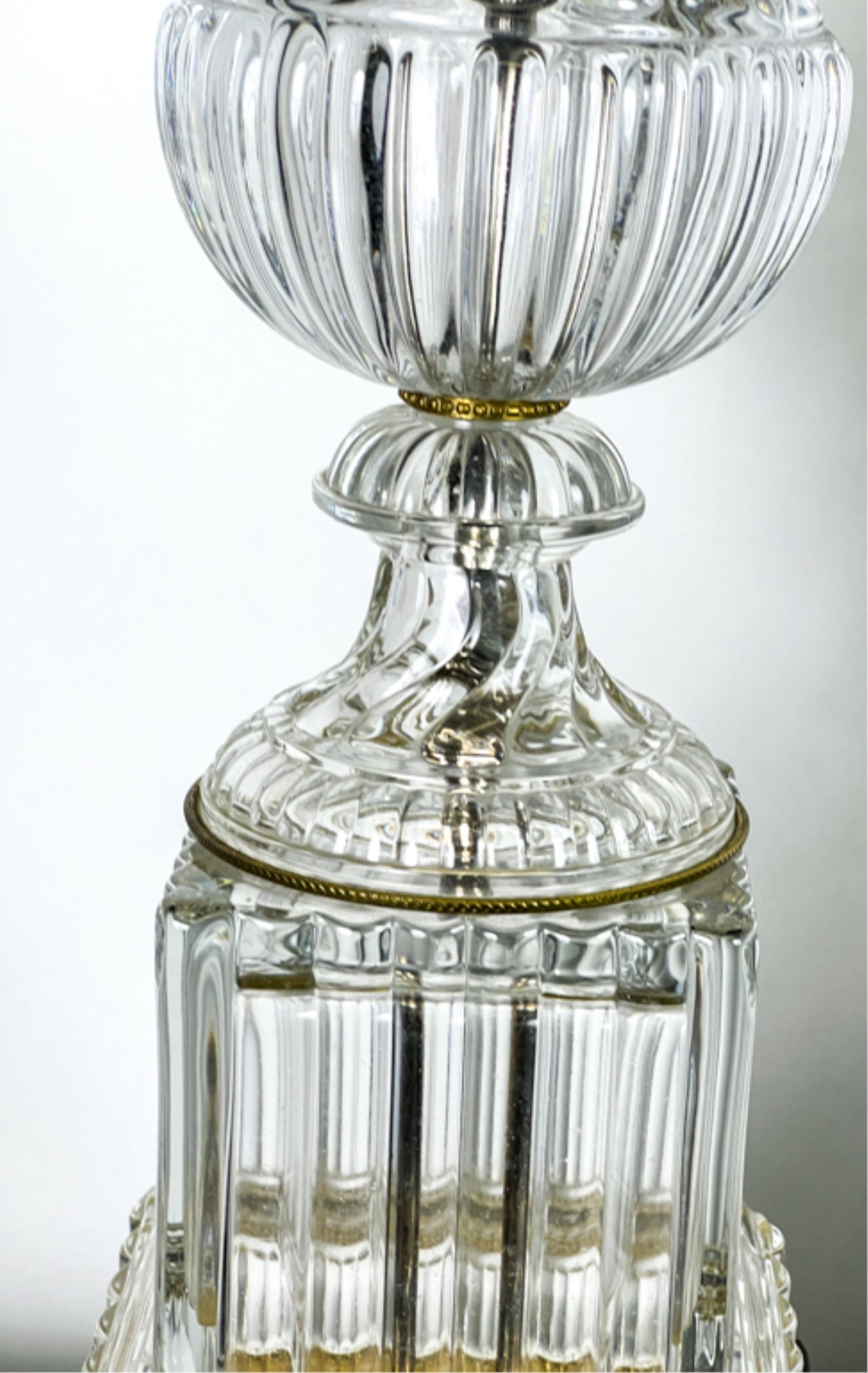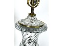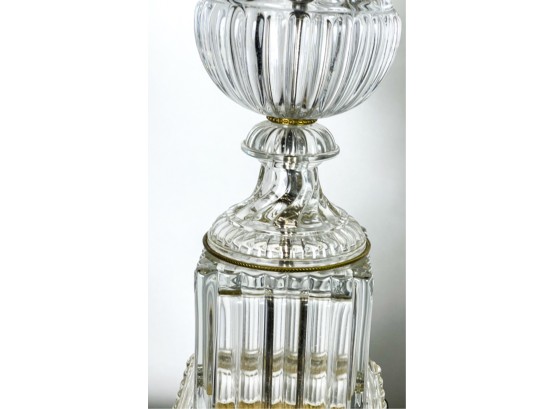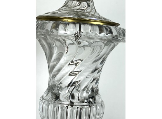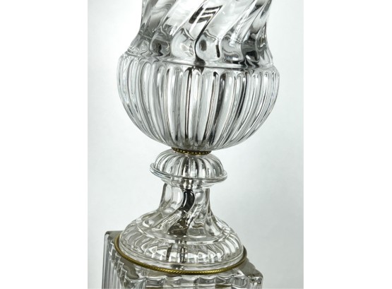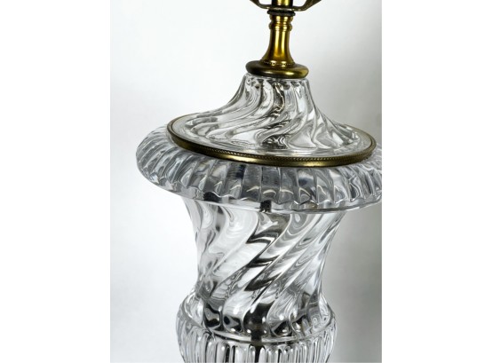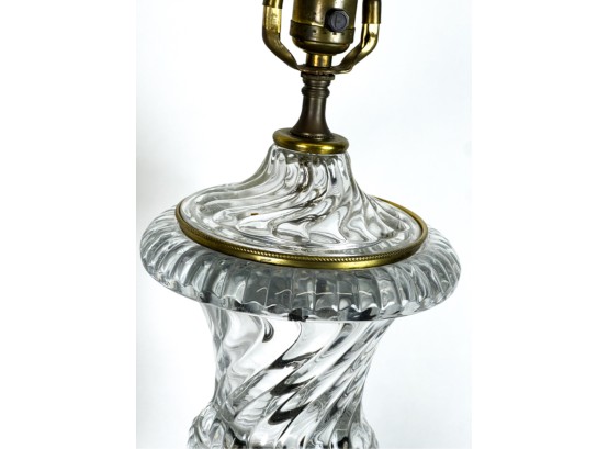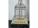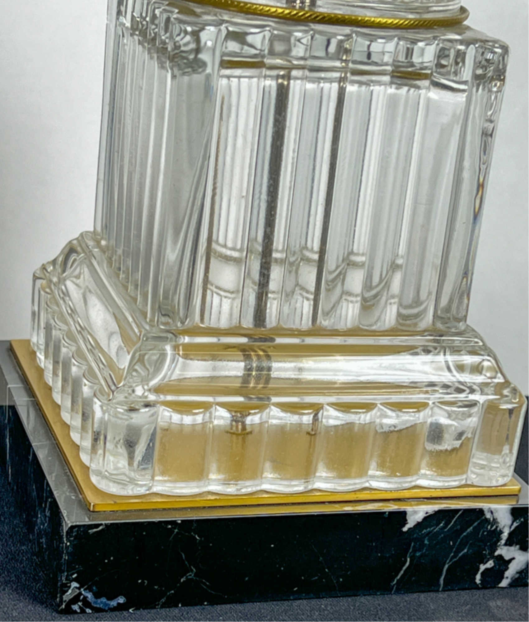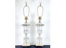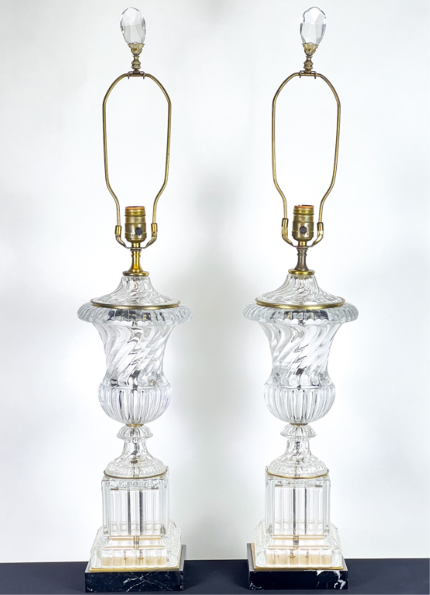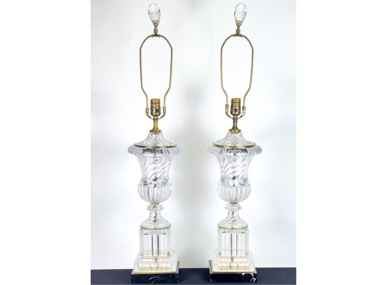 Mid century Baccarat quality crystal table lamps on marble base. 36 inch height to top of finial.