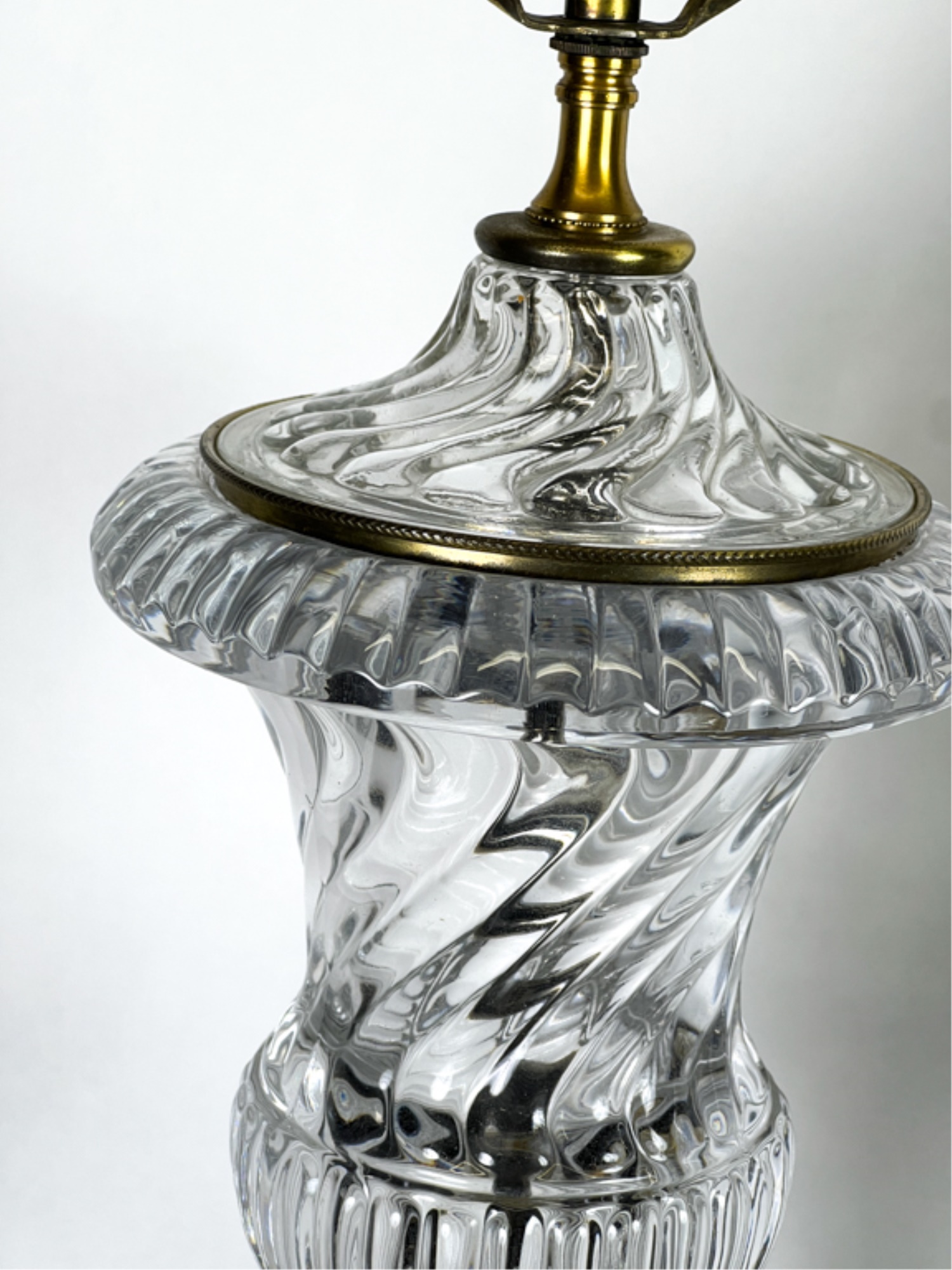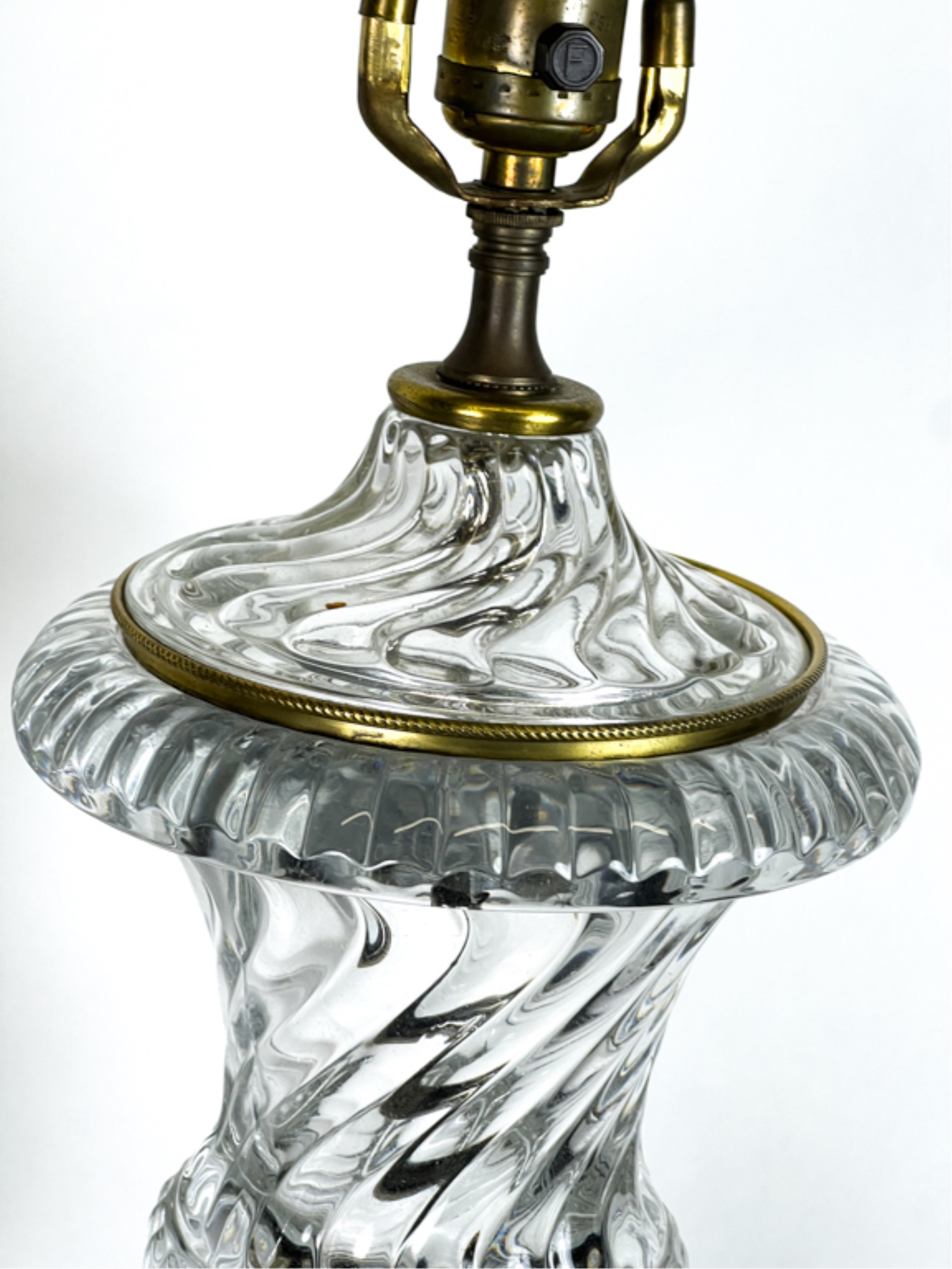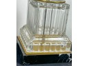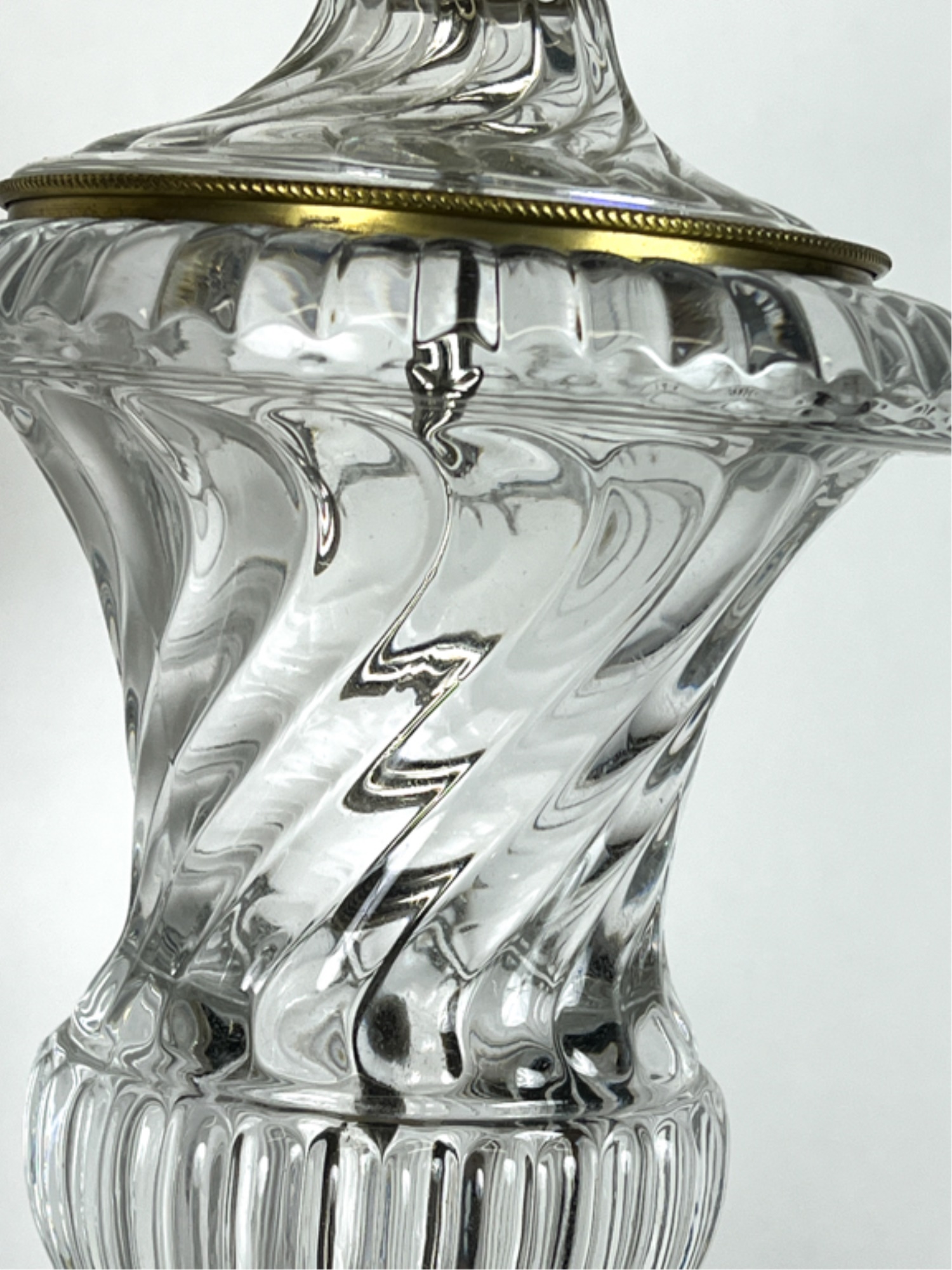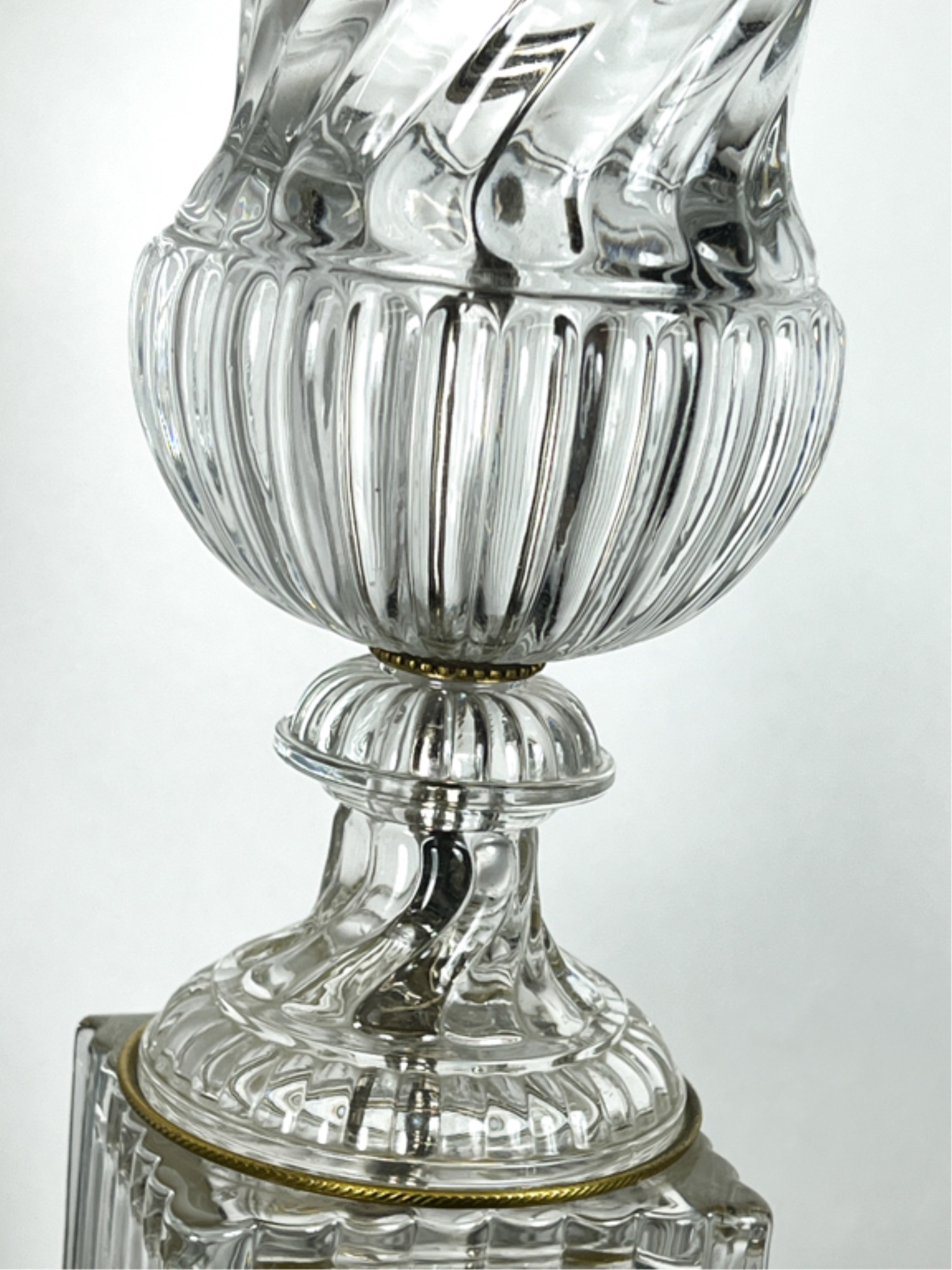 Mid century Baccarat quality crystal table lamps on marble base. 36 inch height to top of finial.