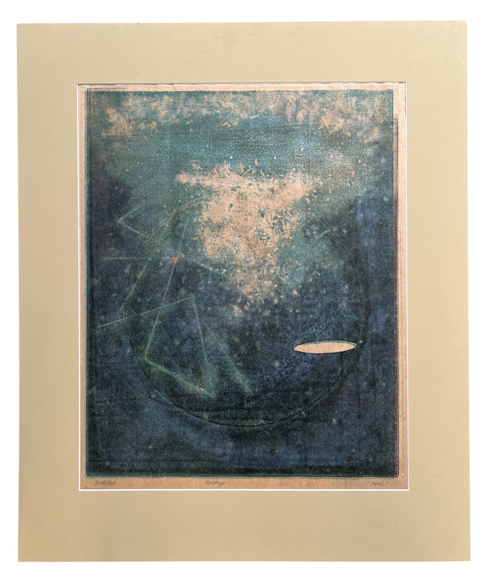 Untitled monotype 20 x 16 inches. Signed J. Neal. matted 27.5 x 23 inches (overall) Condition: Toning Temp No 6275