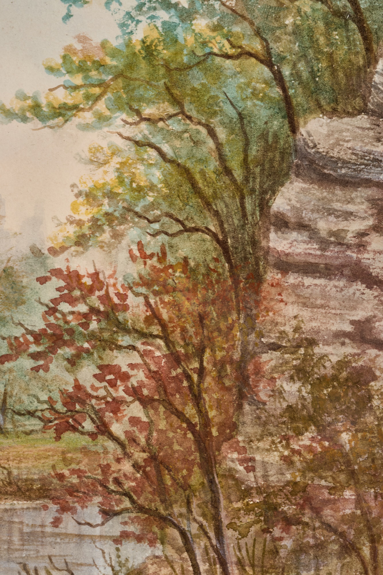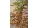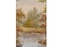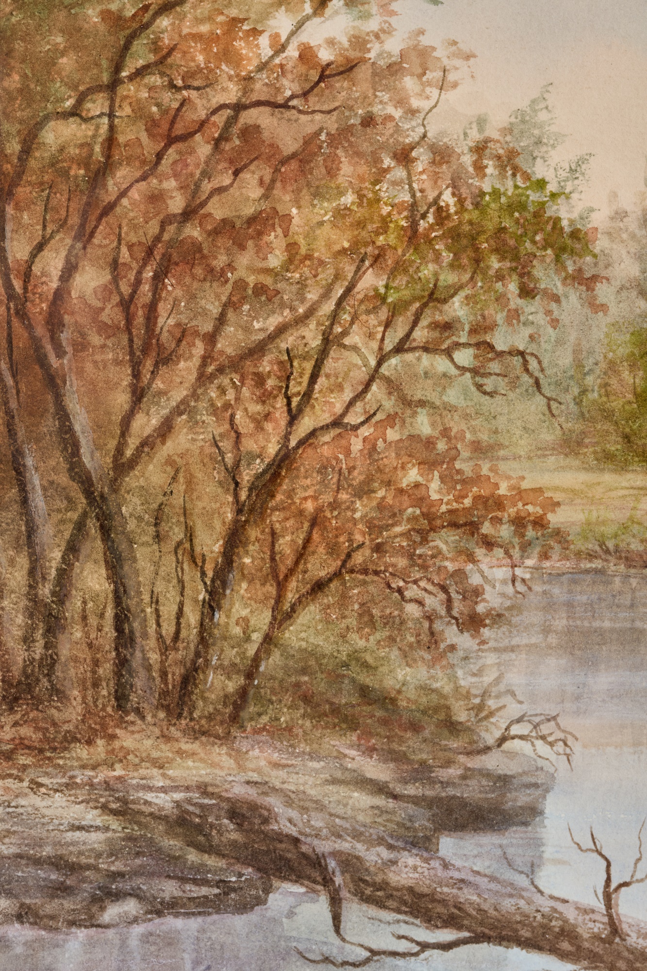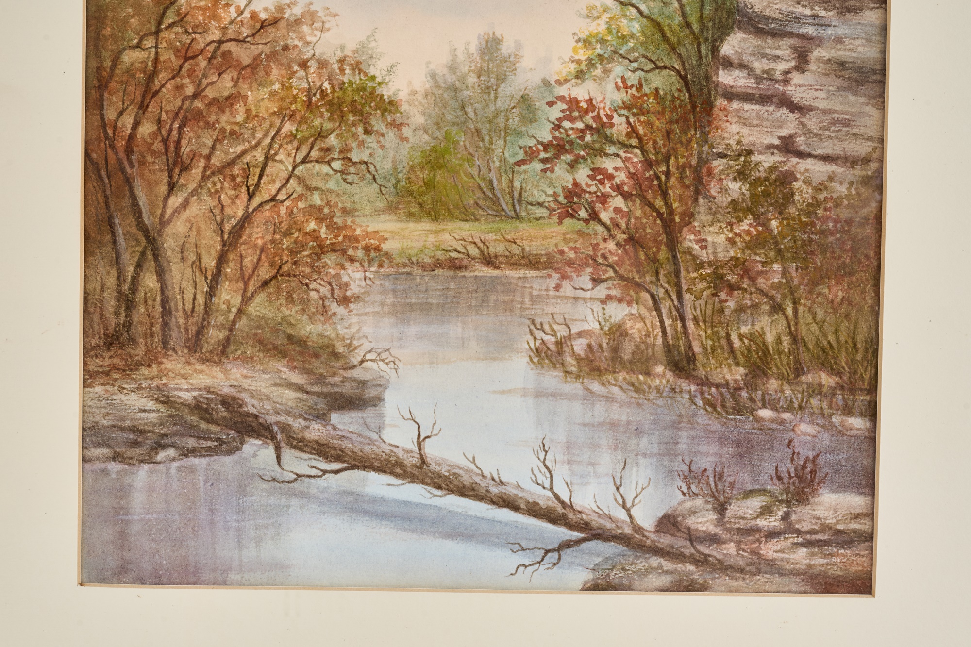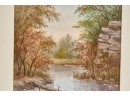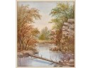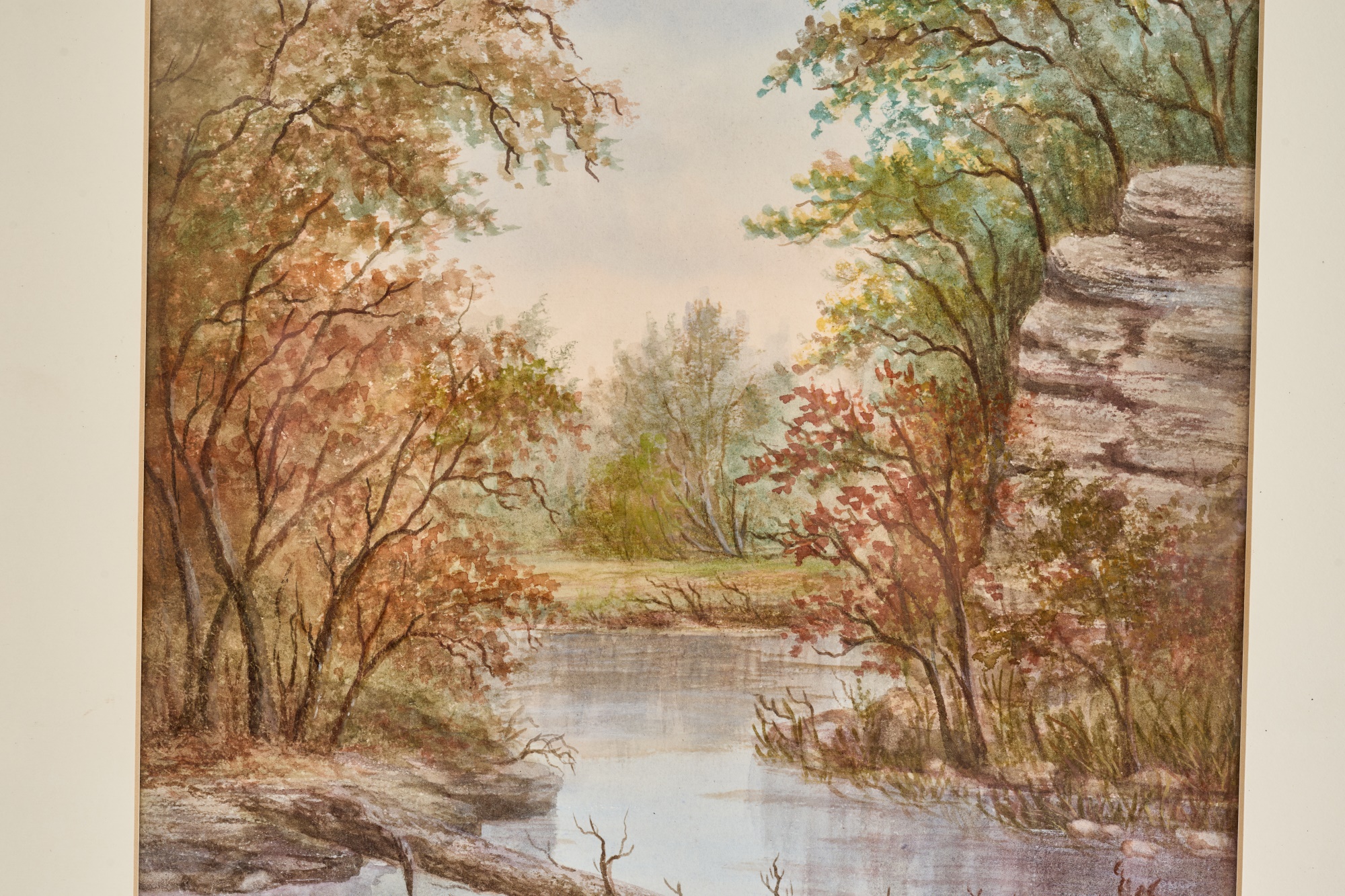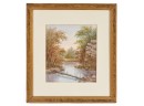 Autumnal Landscape with Boulder and Stream. 13 x 11.5 inches. unsigned. Framed 22 x 20 inches (overall) Condition: Good