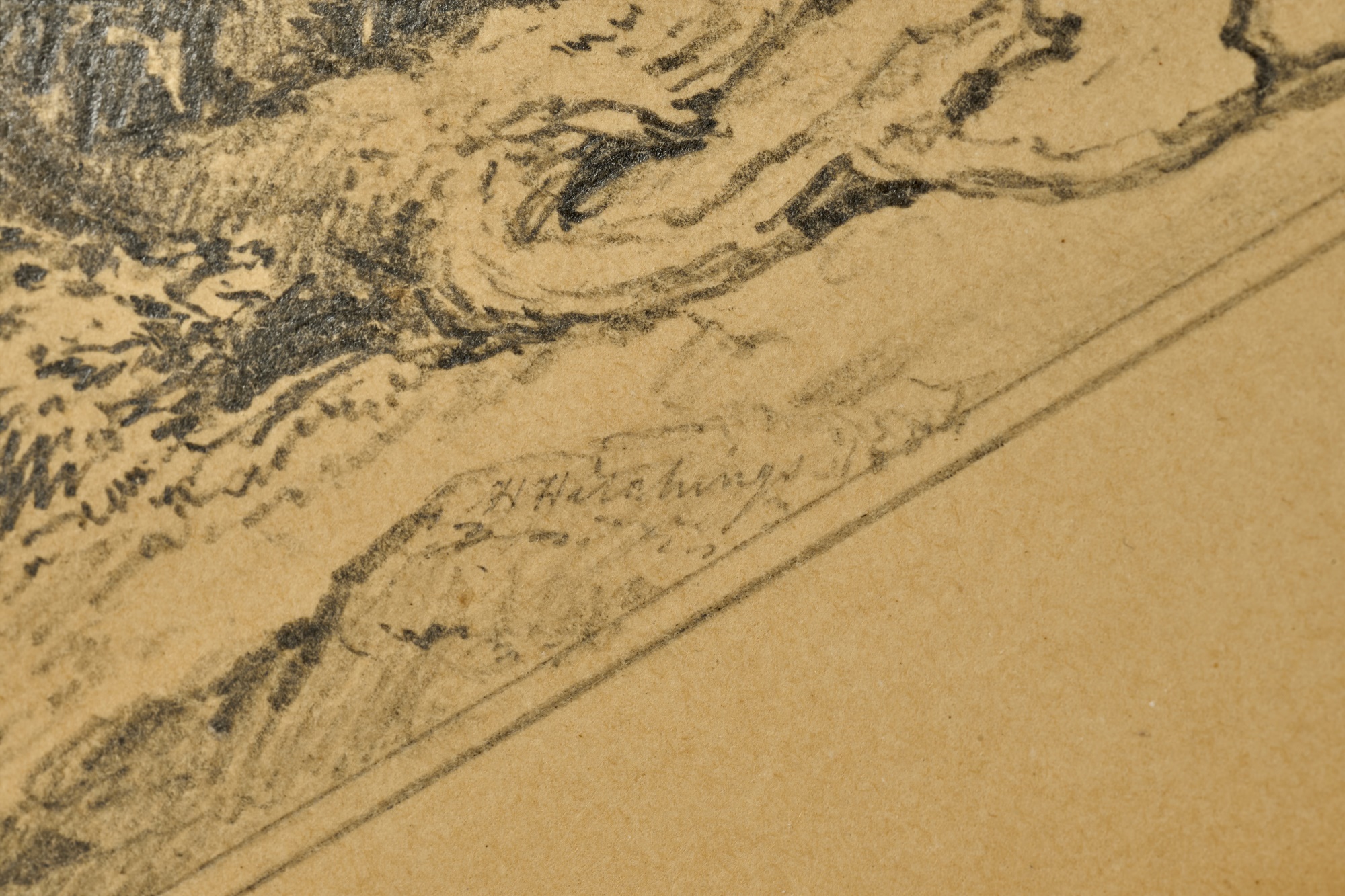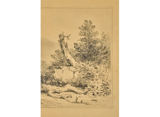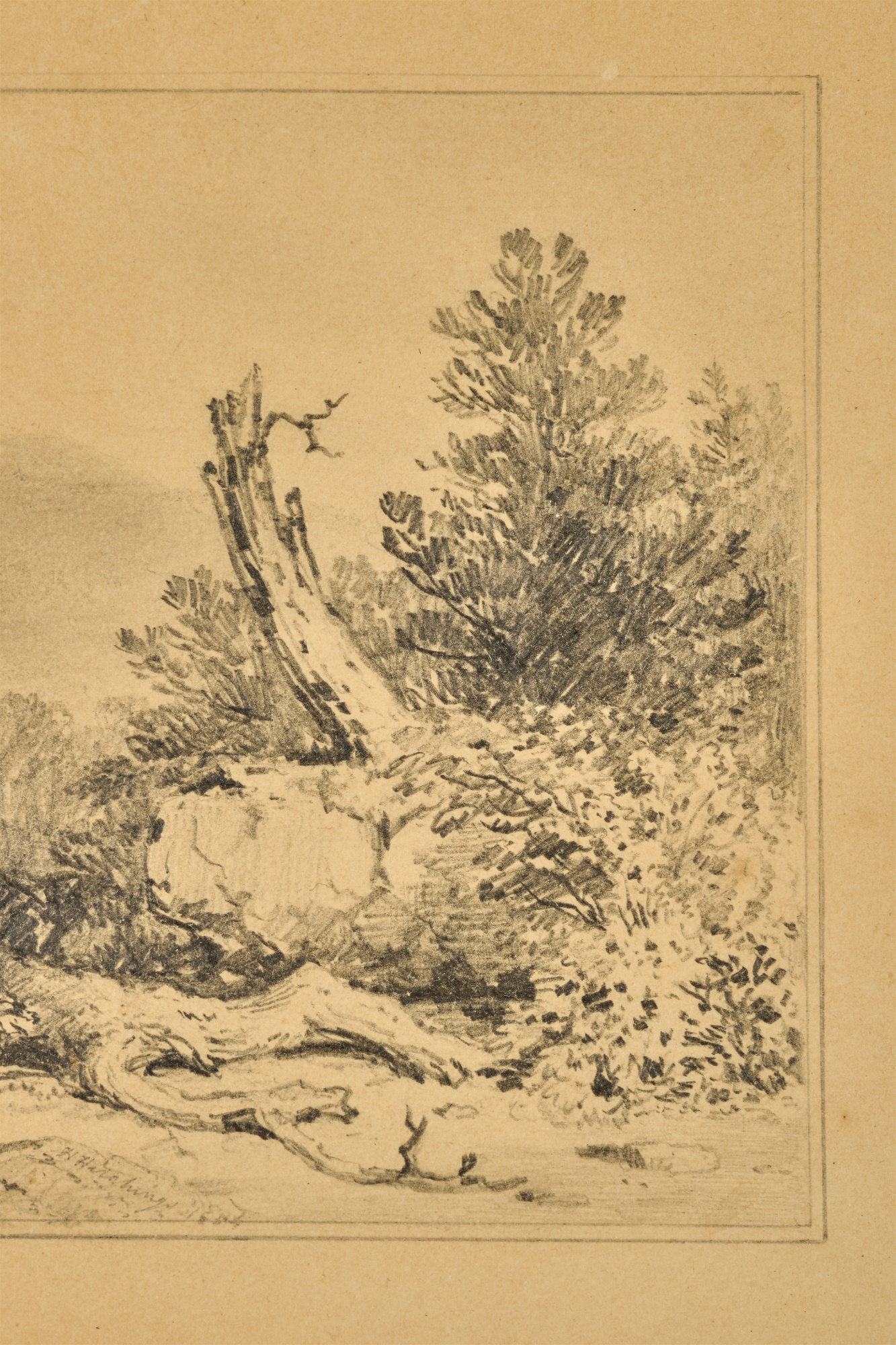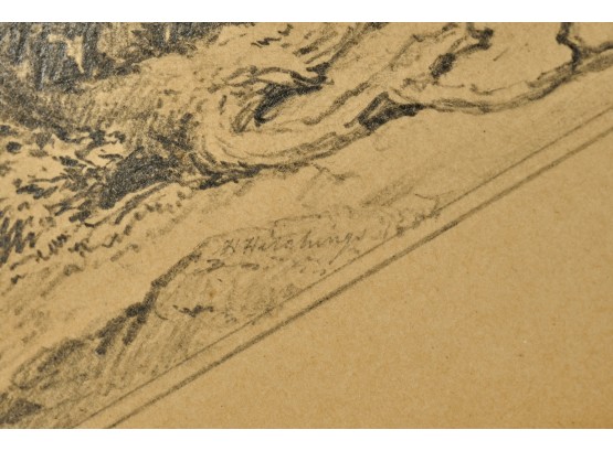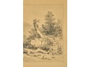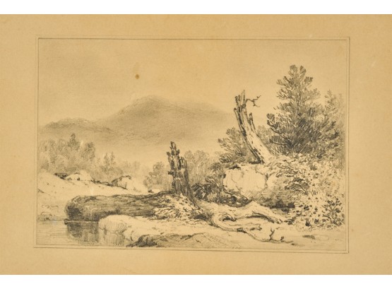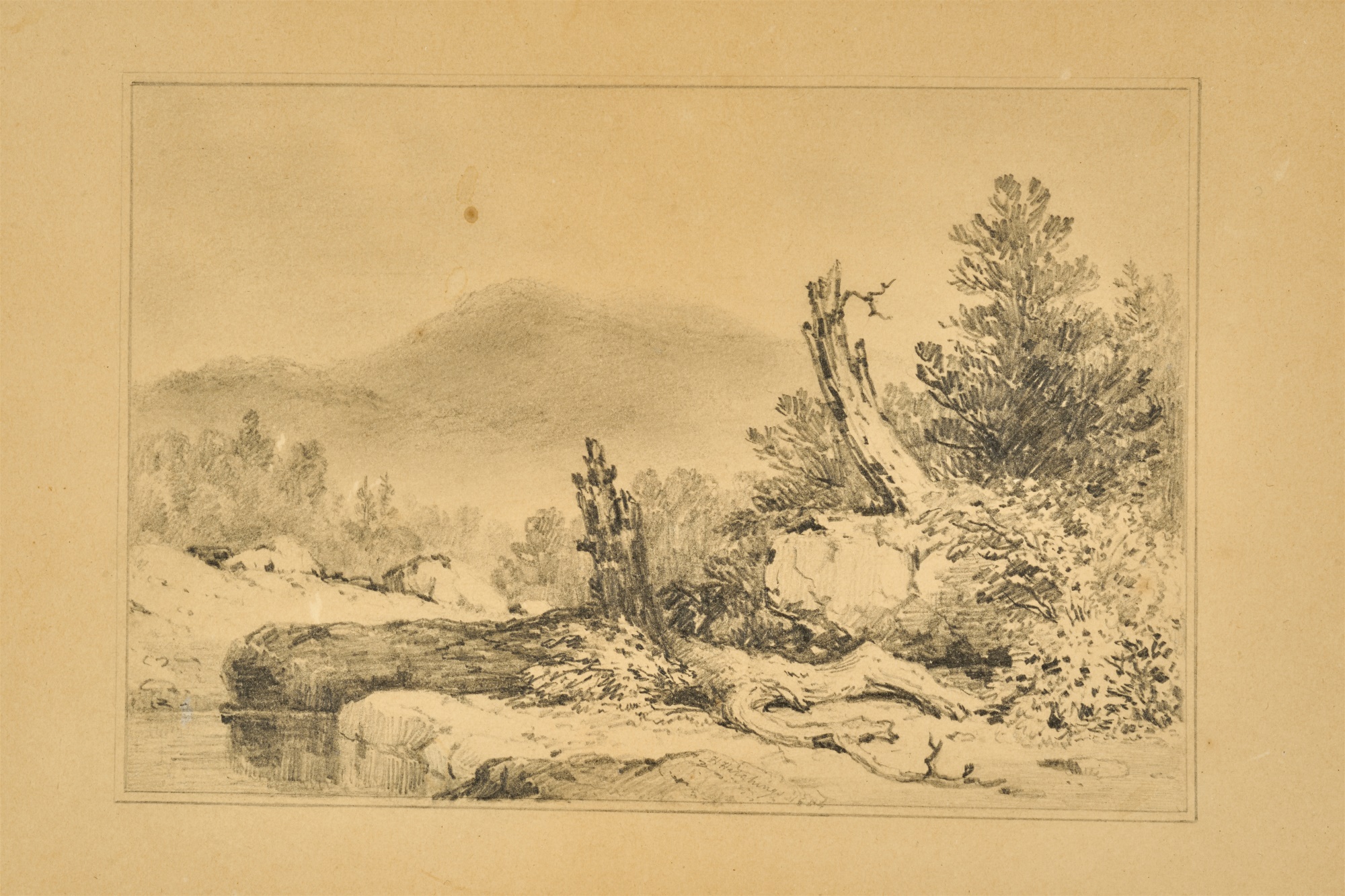 Mountain Landscape / graphite on paper. 7 x 9.5 inches (including frame) Condition: Toning, surface grime Temp No 6224