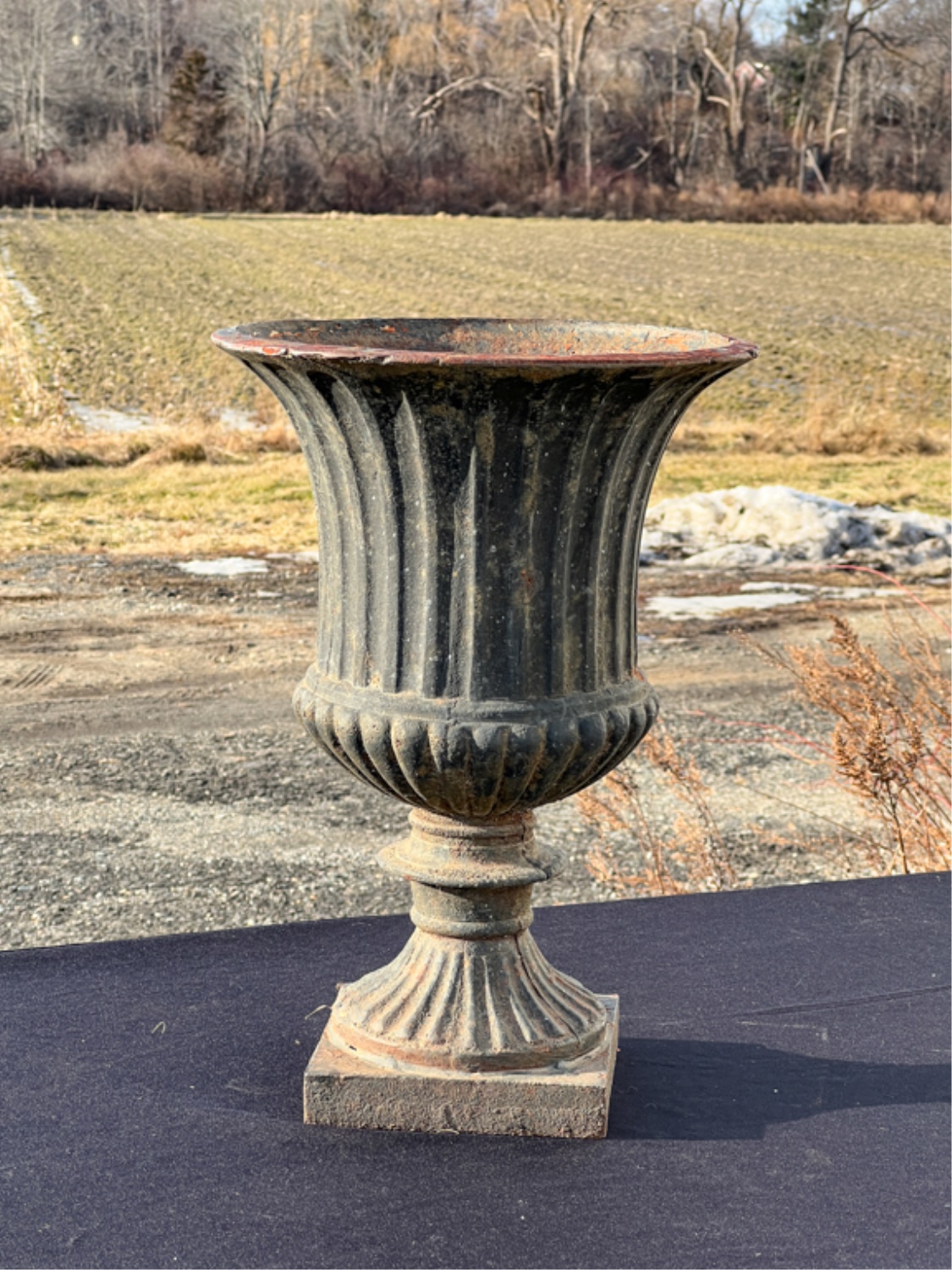 18 1/2 x 12 3/4 inches. In black paint.