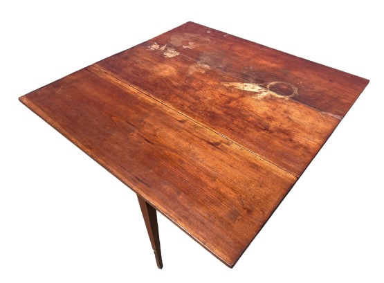 Notes: Old refinish, some staining to surface and losses. Legs professionally ended out for height.