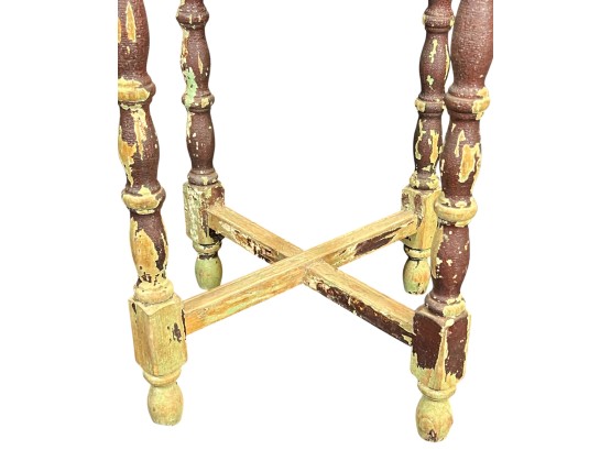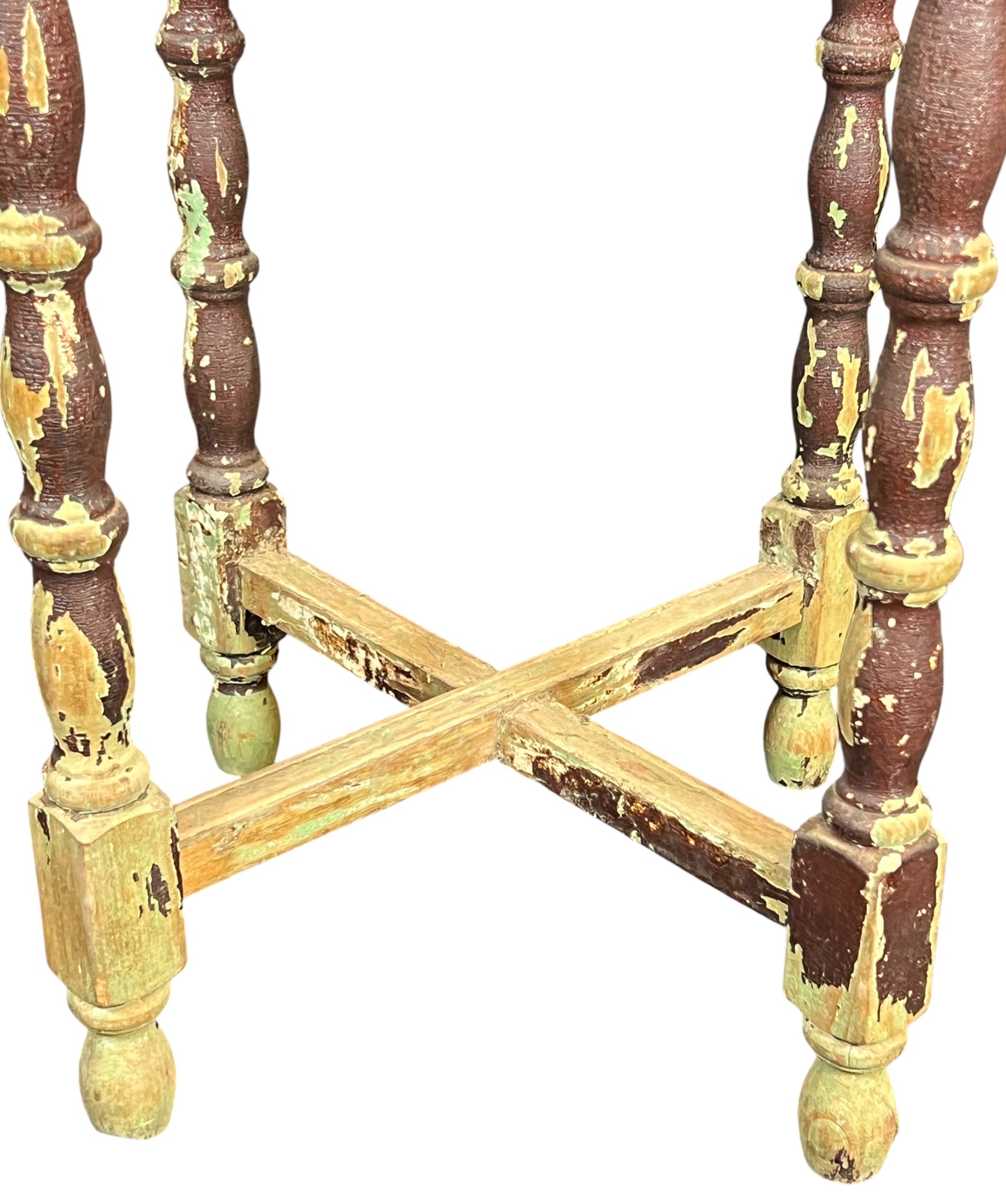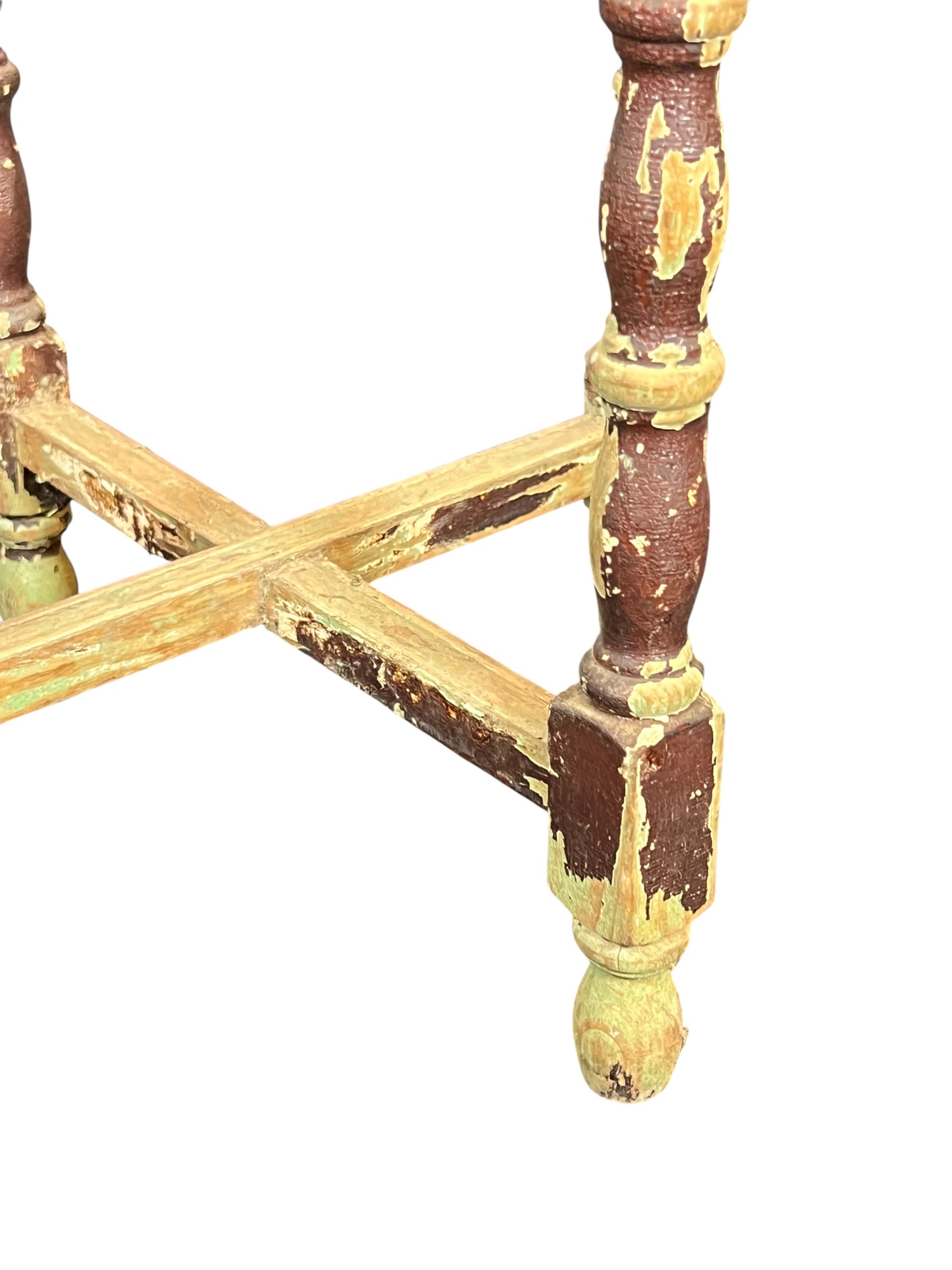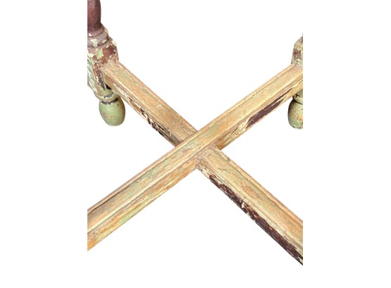 Remnants of old green and maroon paint. 24 1/4" x 15" x 15" Condition: Wear to surface and paint