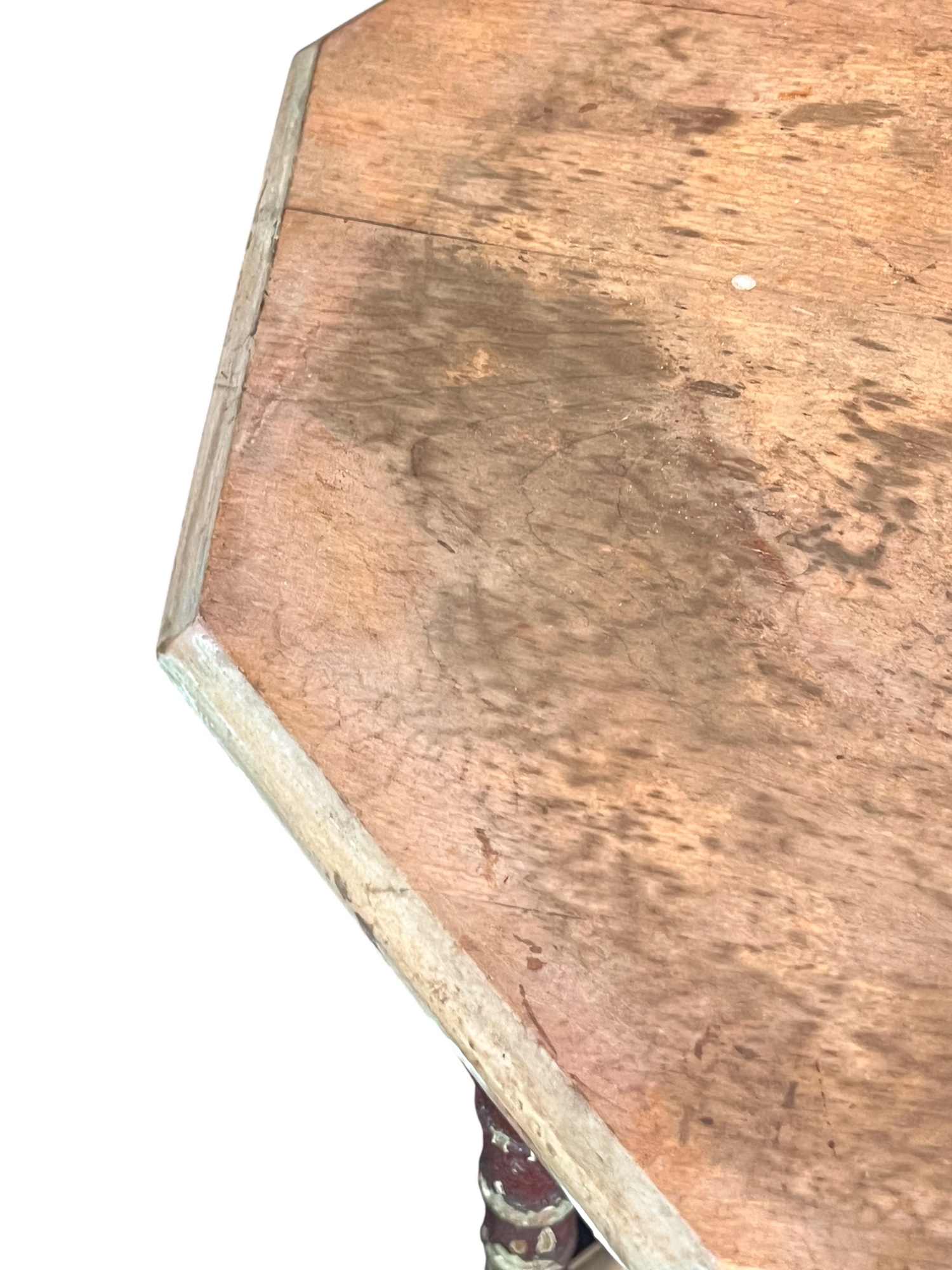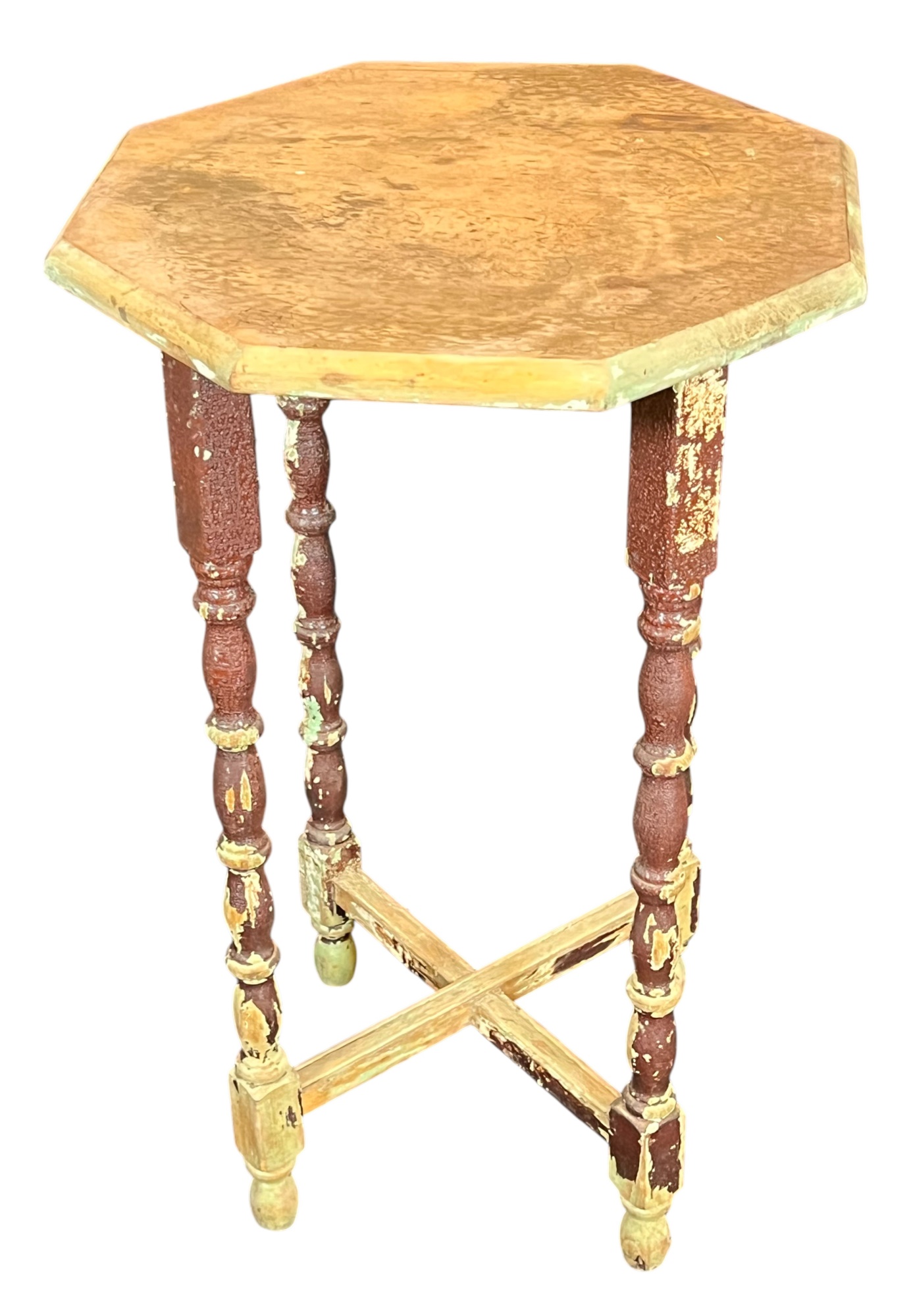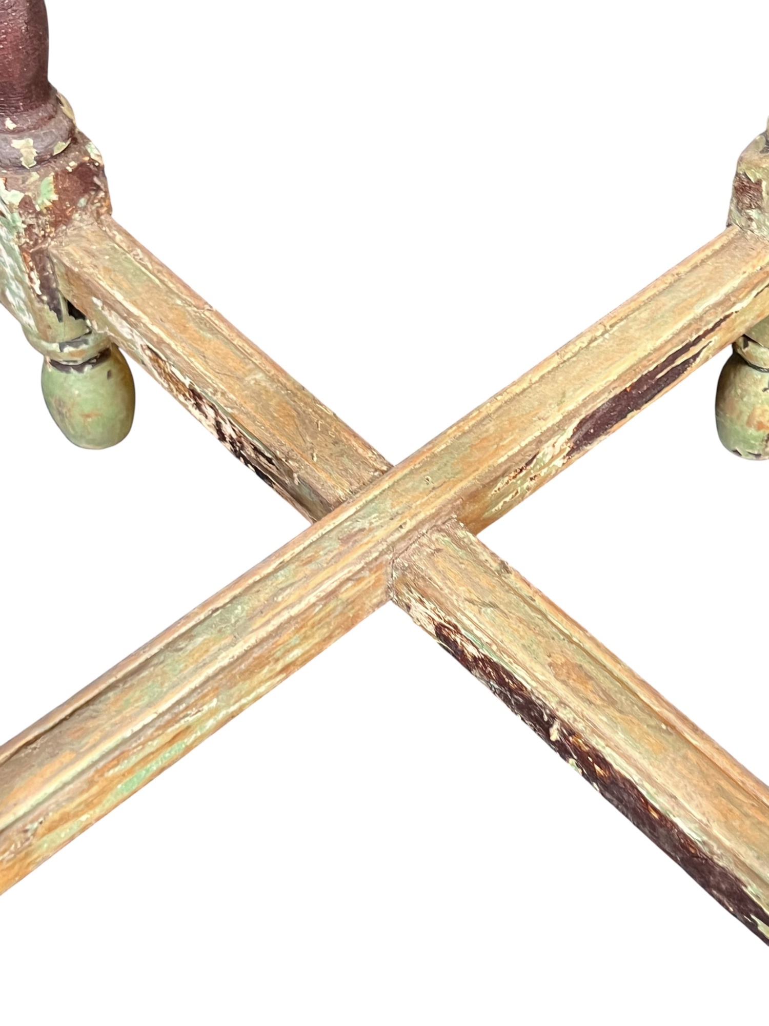 Remnants of old green and maroon paint. 24 1/4" x 15" x 15" Condition: Wear to surface and paint