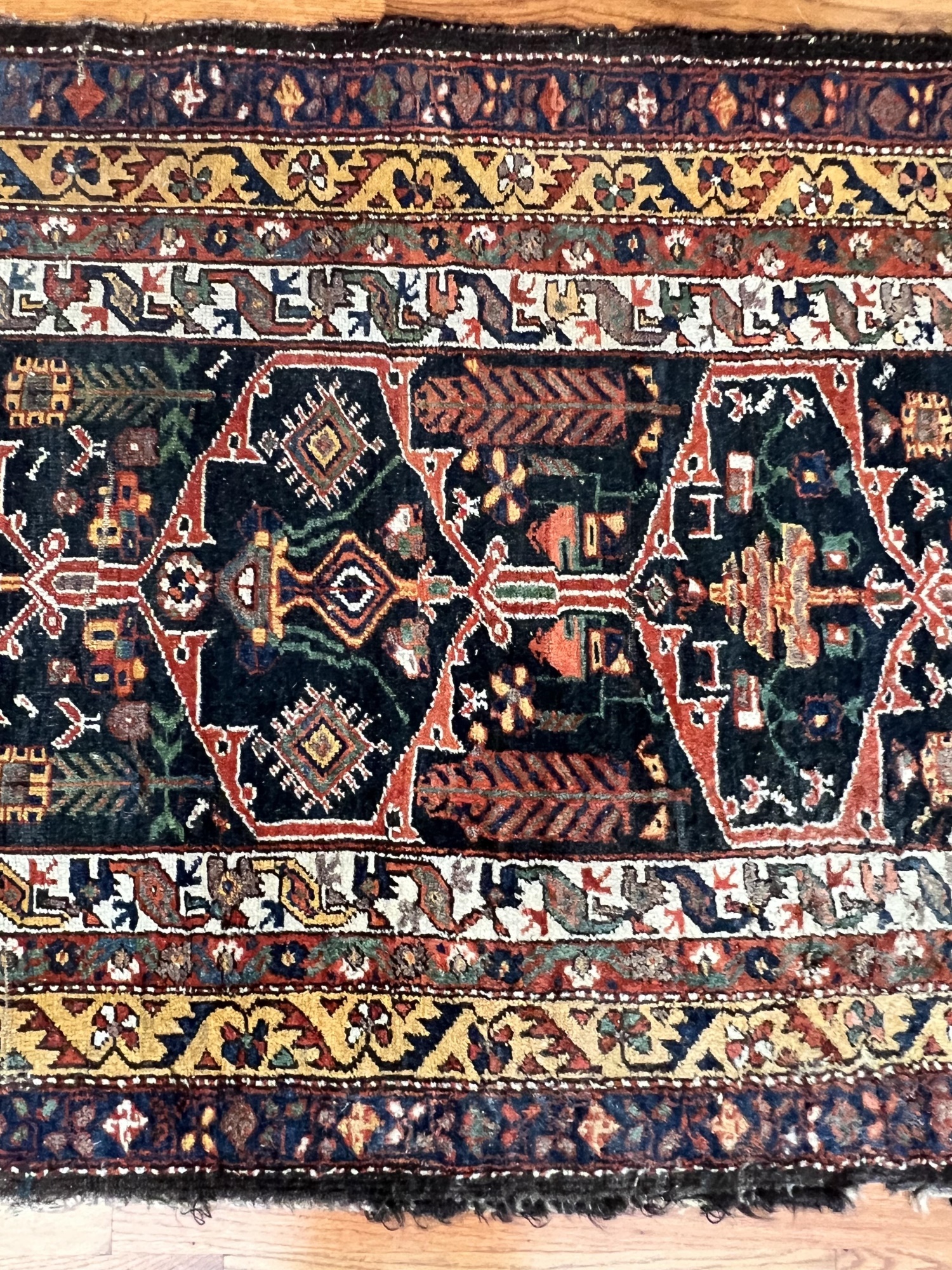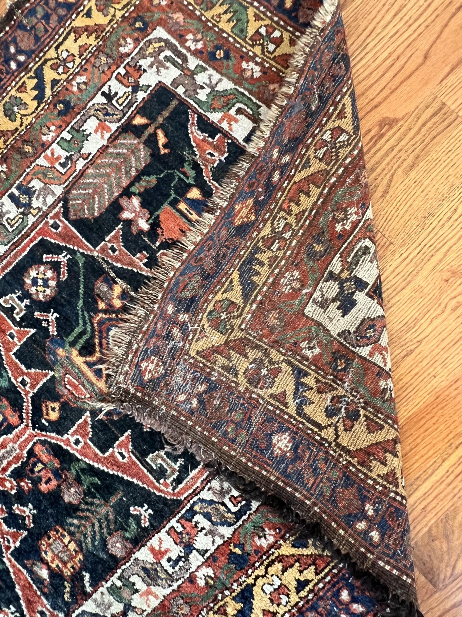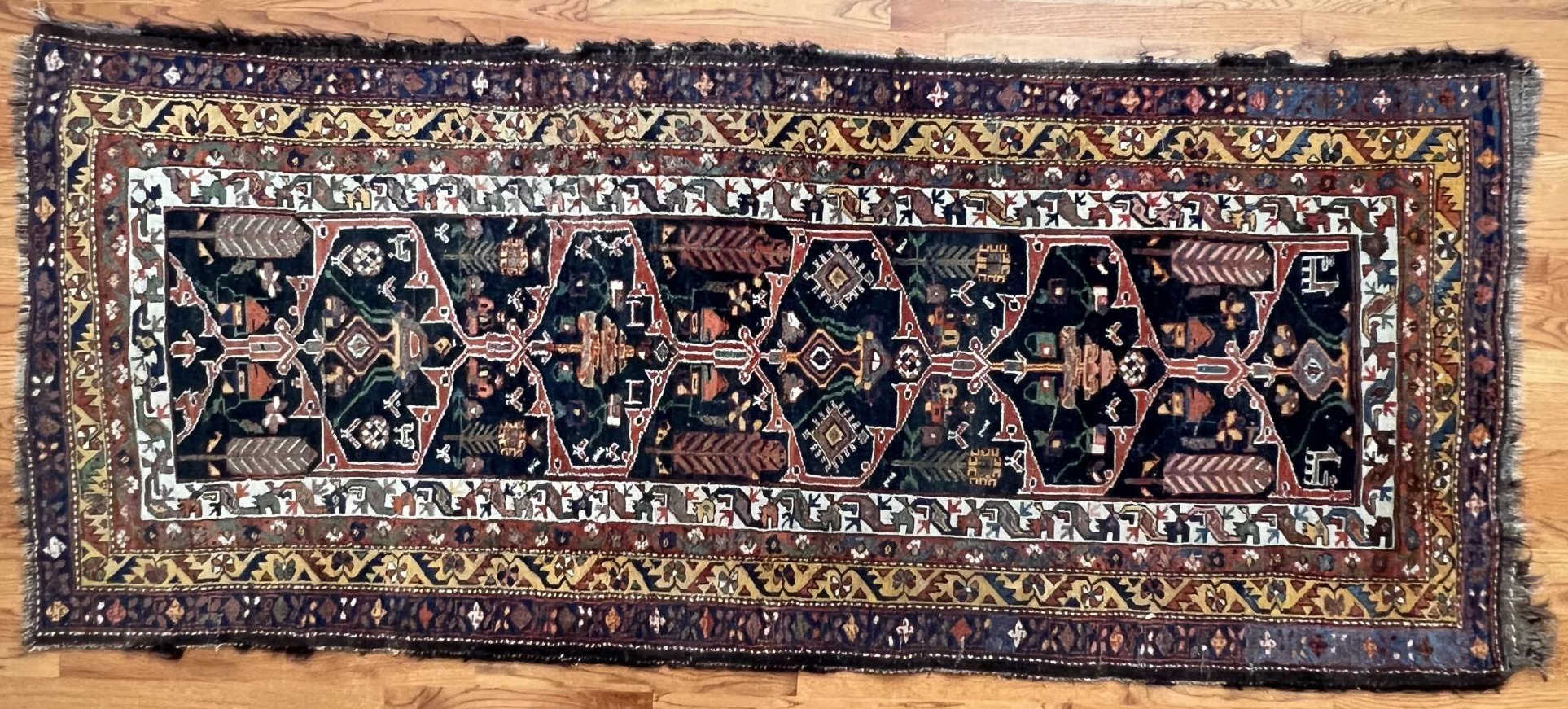 8ft 5 inches x 3ft 7 inches Condition: Wear to side edges, will benefit from a good cleaning