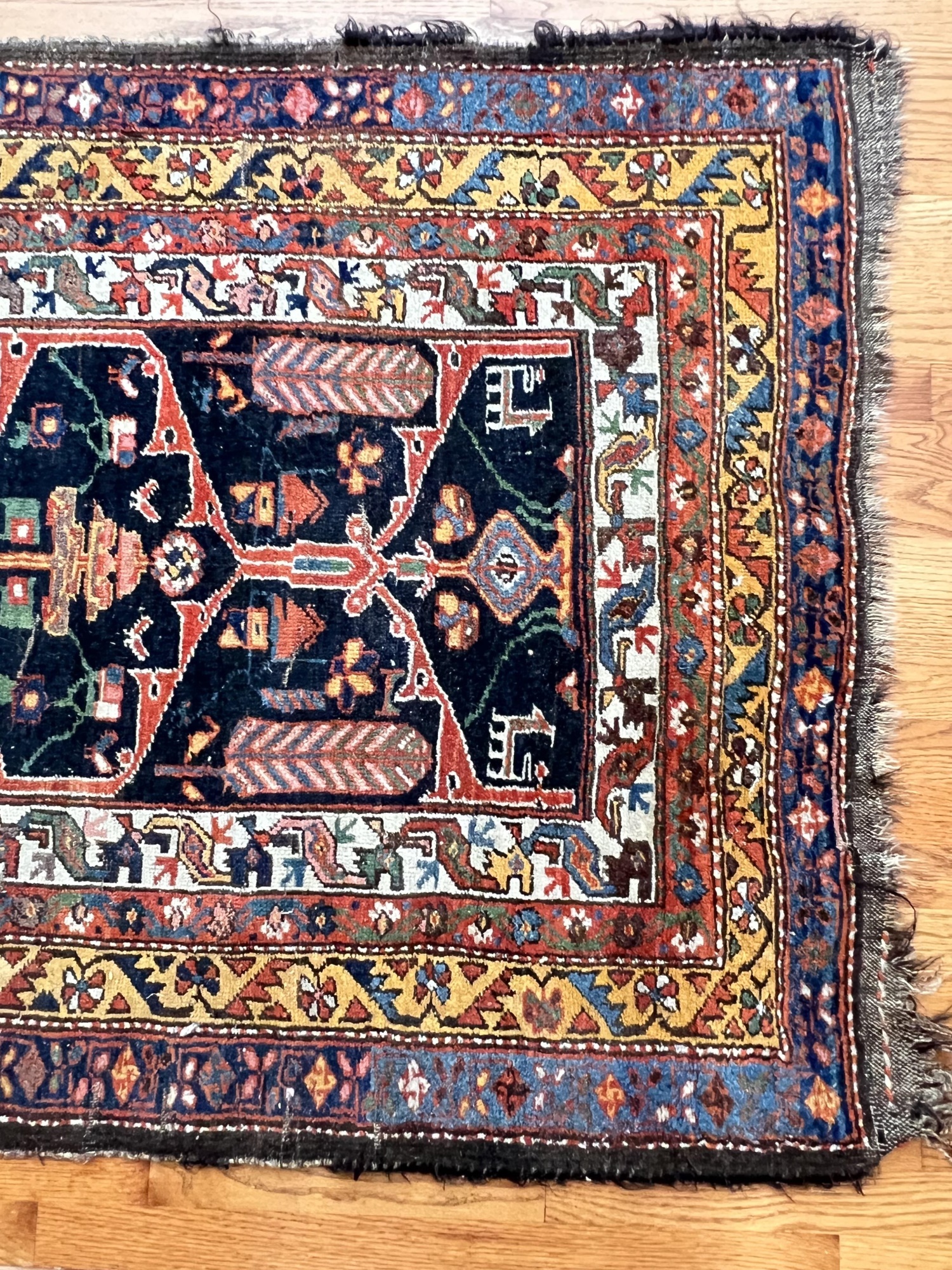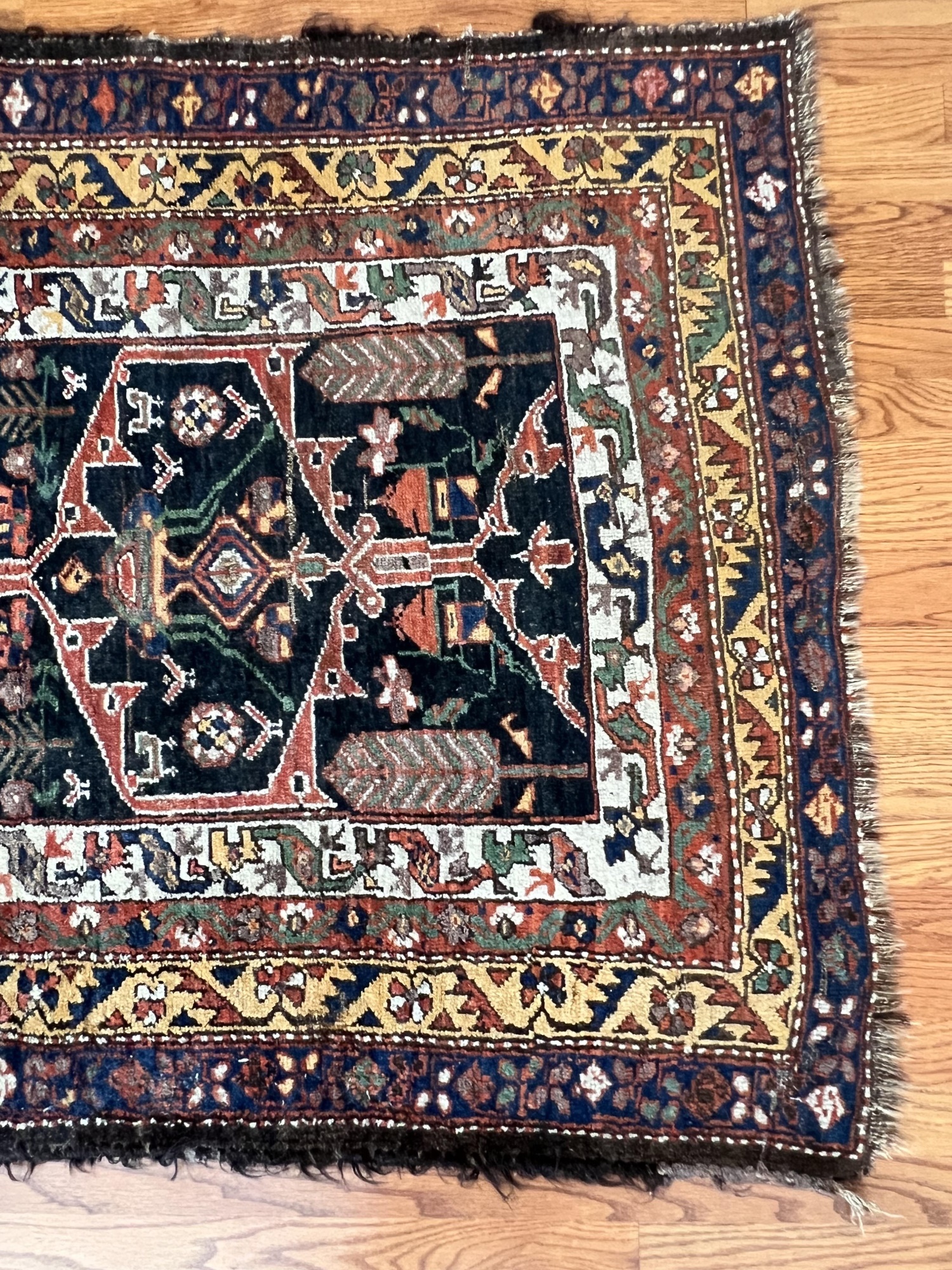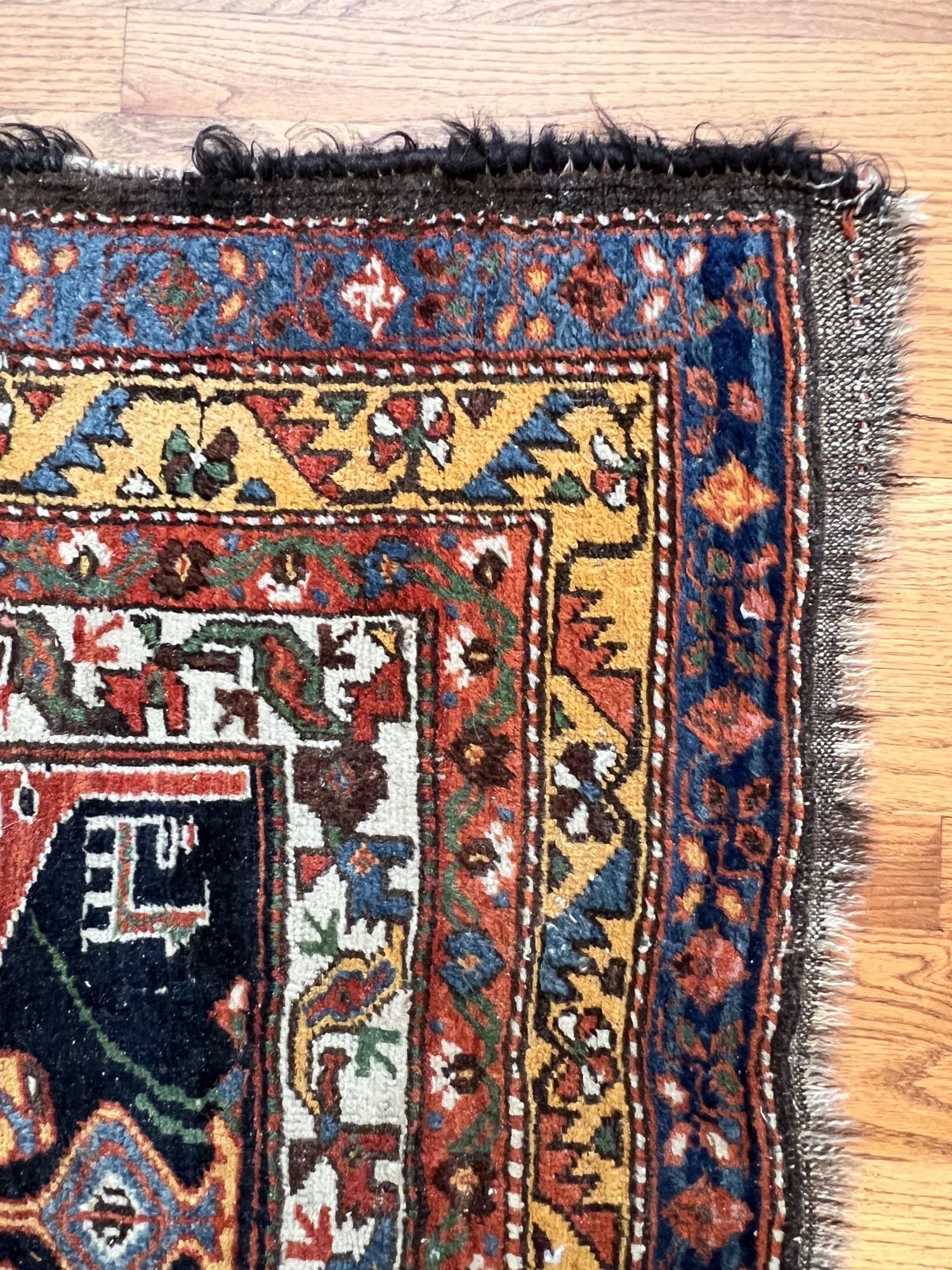 8ft 5 inches x 3ft 7 inches Condition: Wear to side edges, will benefit from a good cleaning
