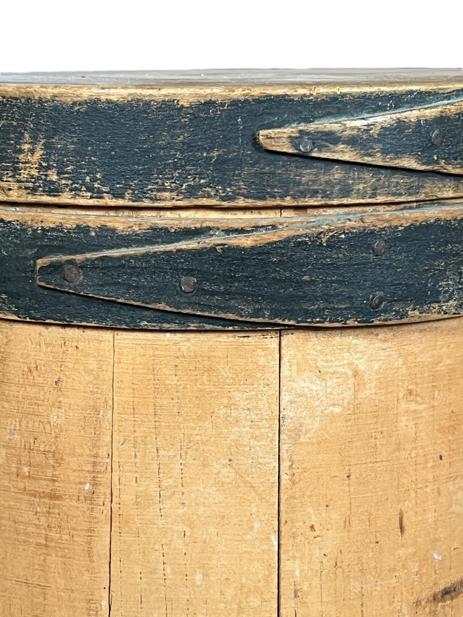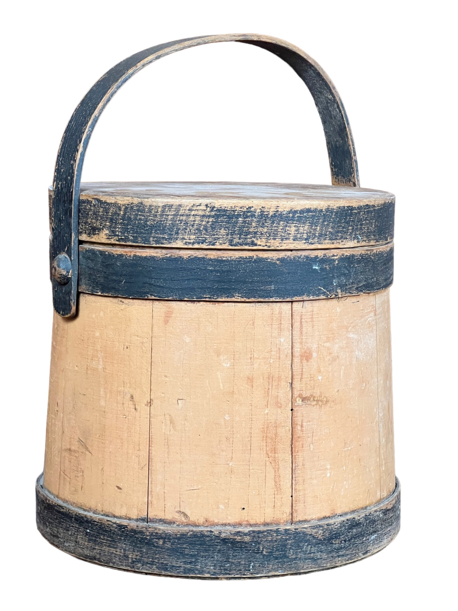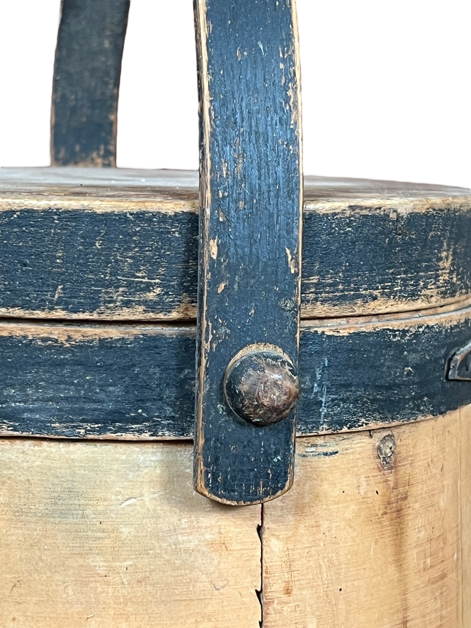 Old worn surface with original lid and handle. 9" x 9 3/4"