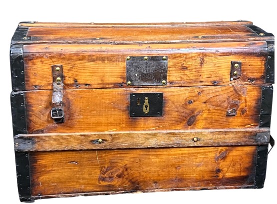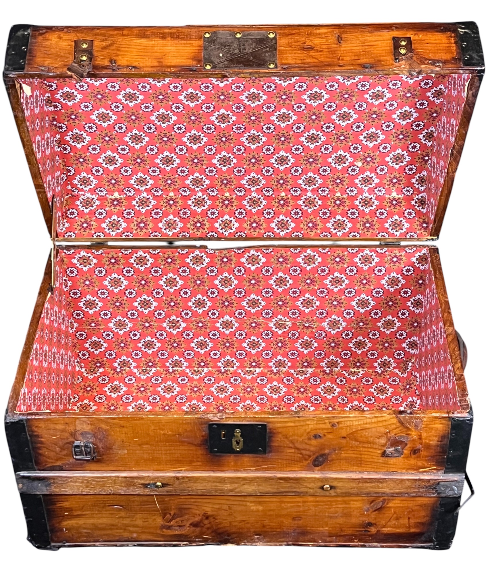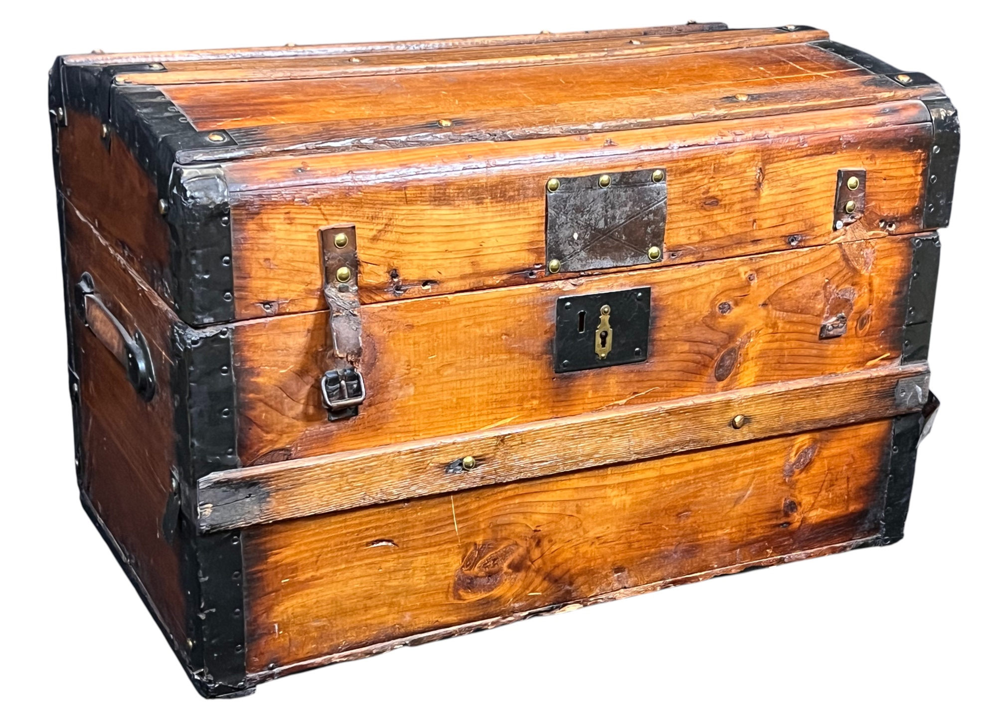 19" x 28" x 17 1/2" Condition: Losses to leather straps, see photos