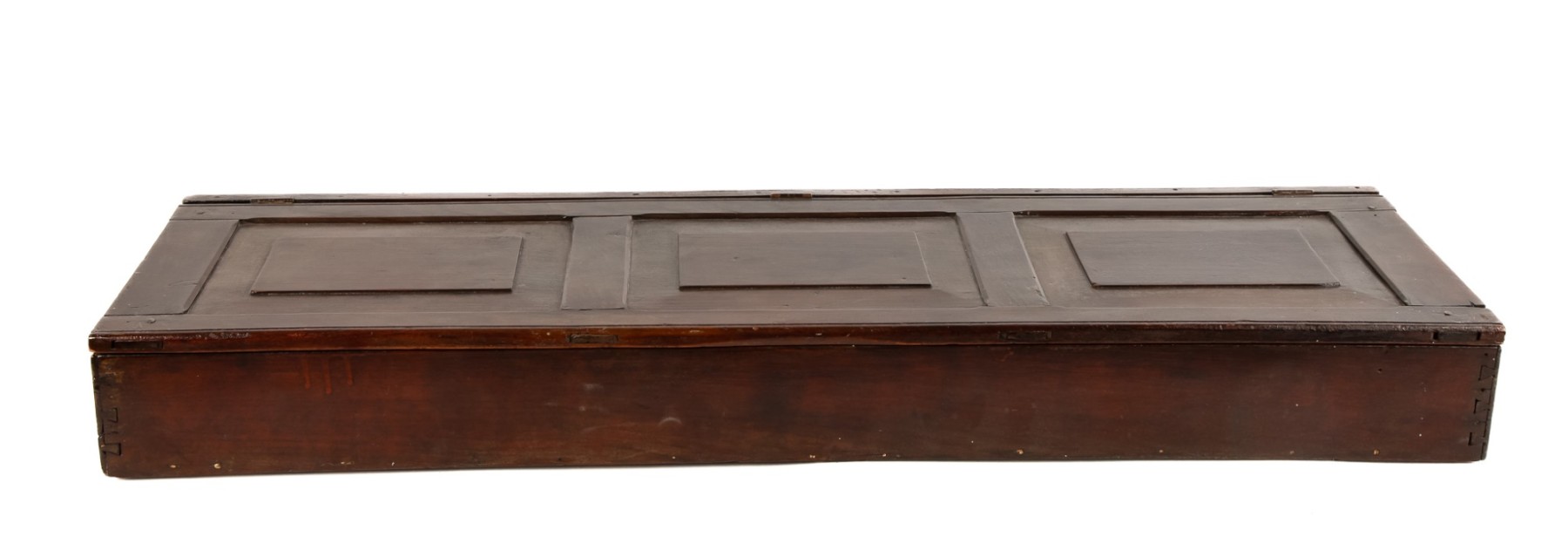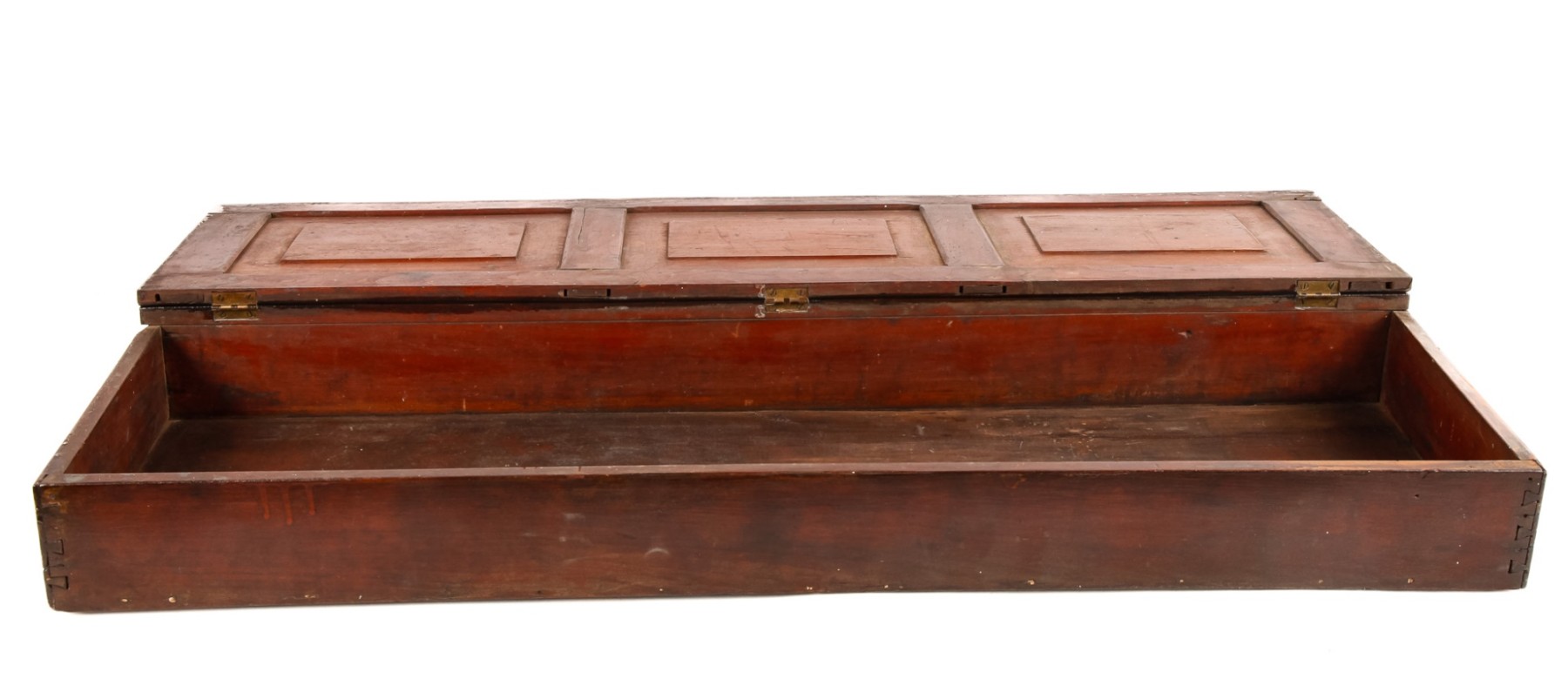 Hinged top with dovetailed construction. 3 3/4 x 34 x 9 1/4