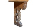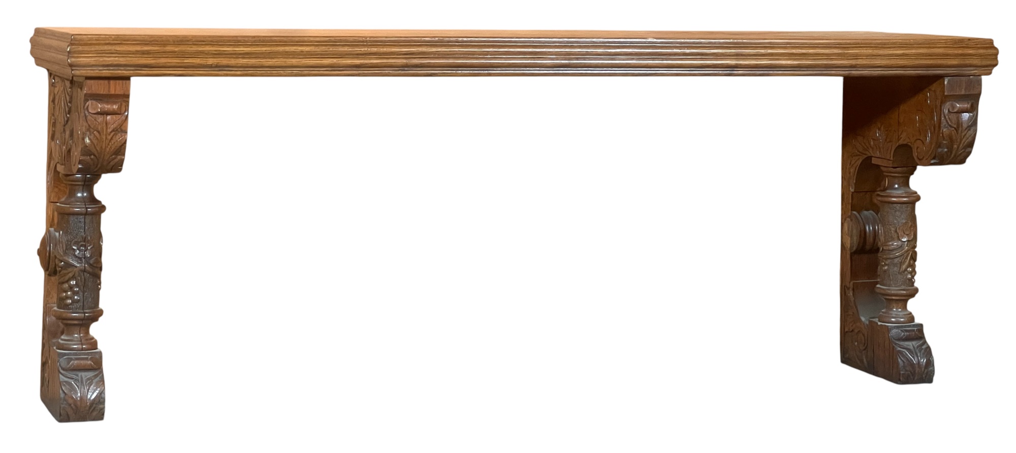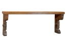 Architectural shelf/portico cover. Strongly carved corbels with full figured prunus columns and acanthus carving throughout. Would make a great bench. 22 x 55 1/2 x 14 1/4 inches. Condition: (1) applied carving in need of gluing.
