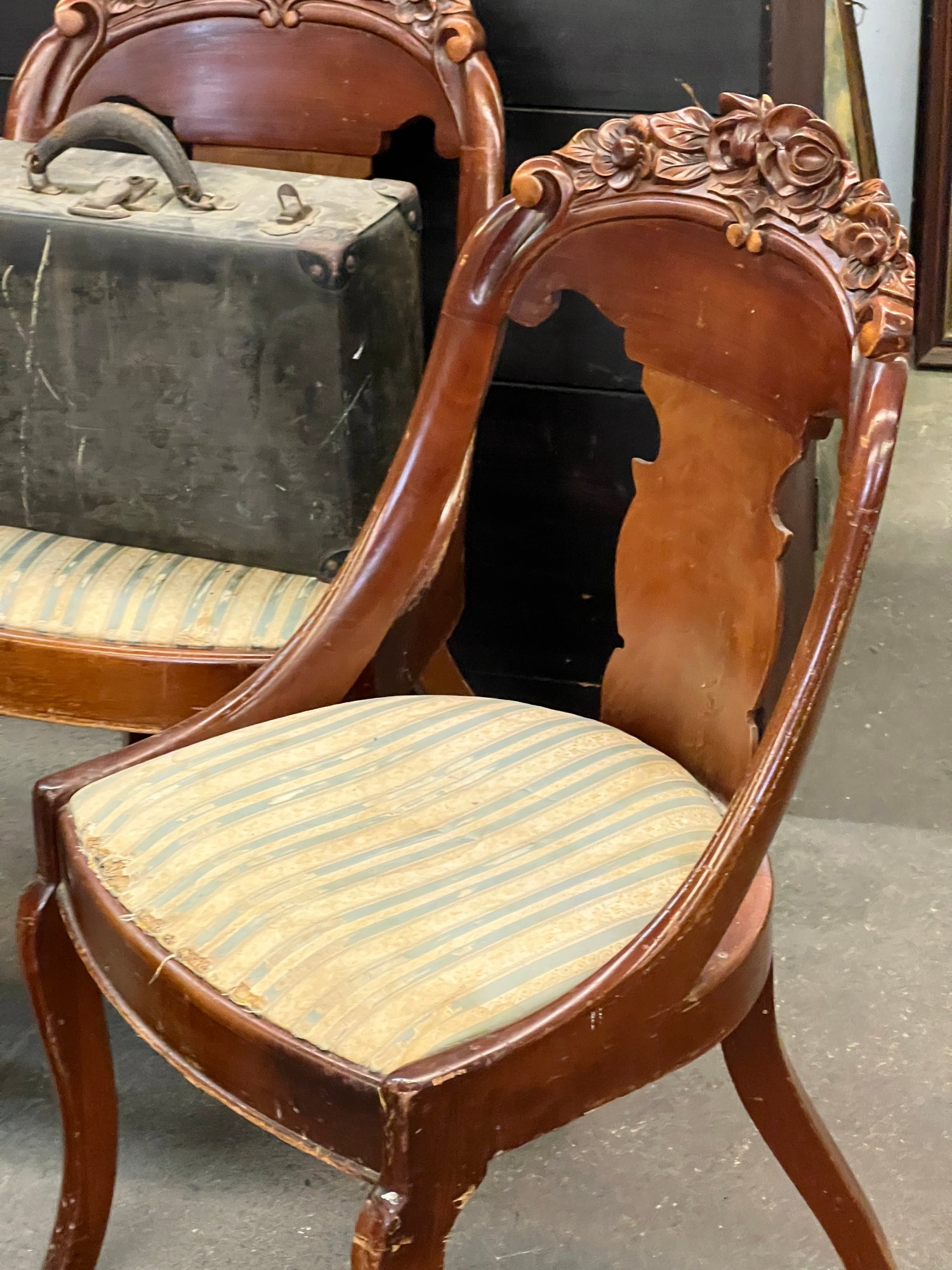 Armchairs measure 34 1/2 x 18 1/2 inches.