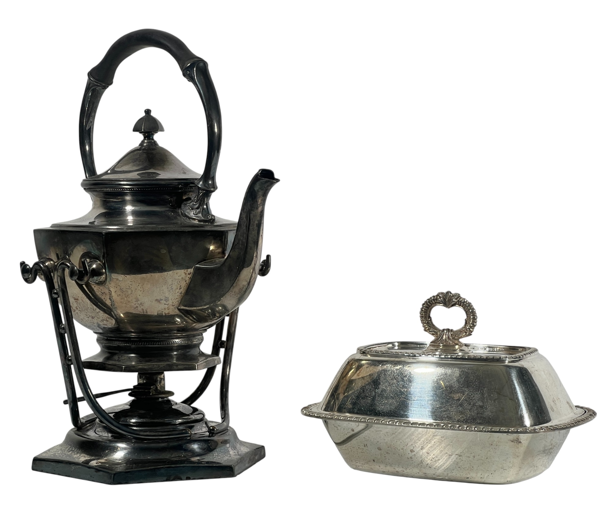 Along with a silverplate covered serving dish. 11 x 6 x 7 1/2 inches. Condition: Good. Temp No 8858